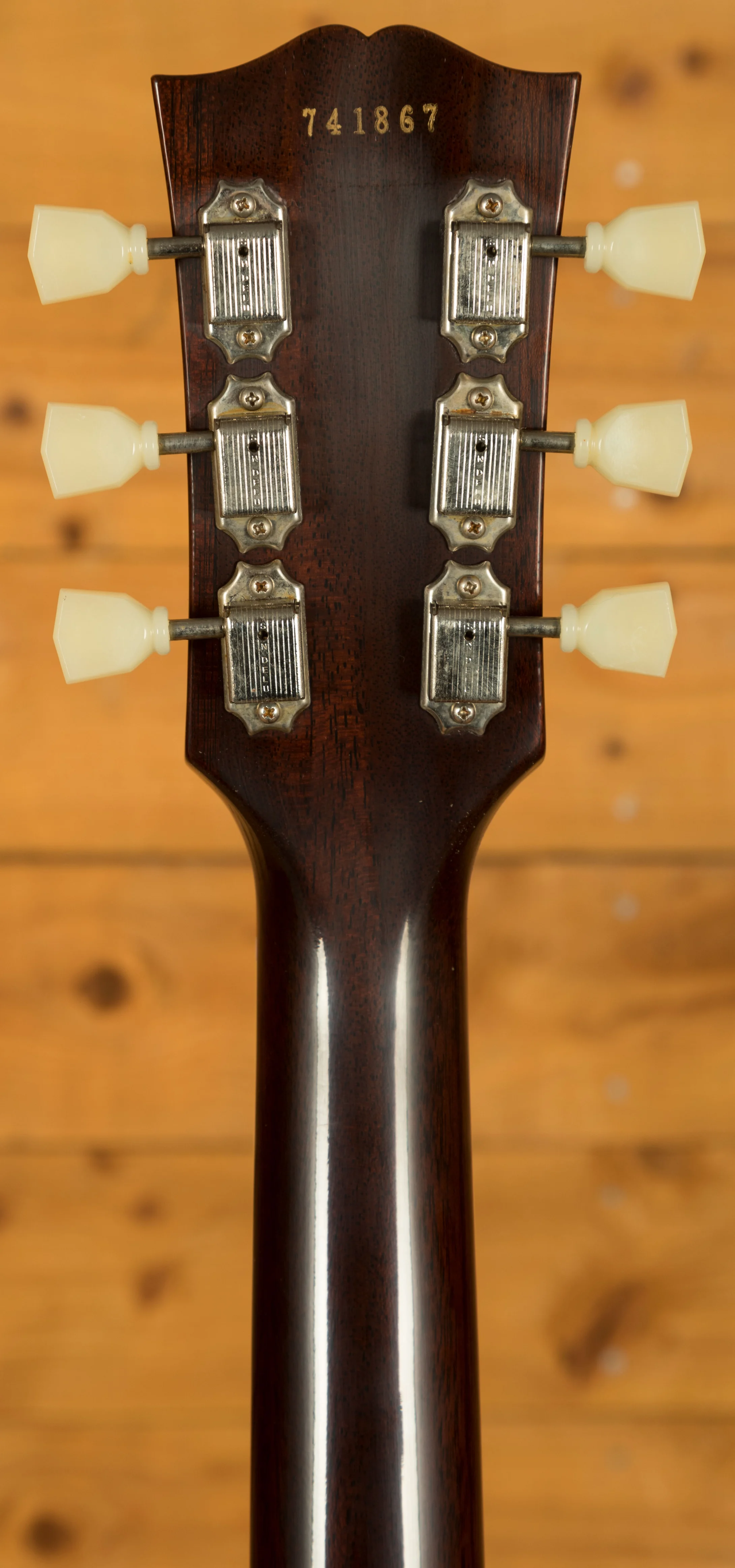 The Mahogany neck is topped with a crisp Rosewood fingerboard with classic Gibson Trapezoid inlays, this guitar looks every bit the real deal. With a 24.75" scale length, hide glue fit and narrow tall frets, it retains that classic Les Paul feel. The no wire ABR-1 bridge offers an authentic vintage vibe.