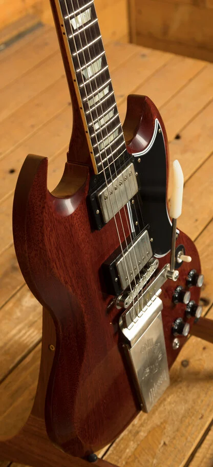 With the classic Mahogany body, finished in a Cherry Red VOS, this SG is the same mega tone machine we all know and love.