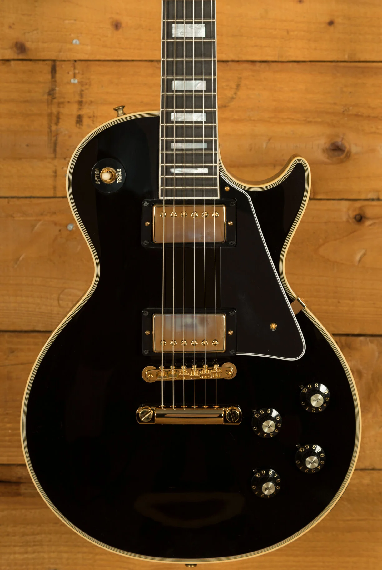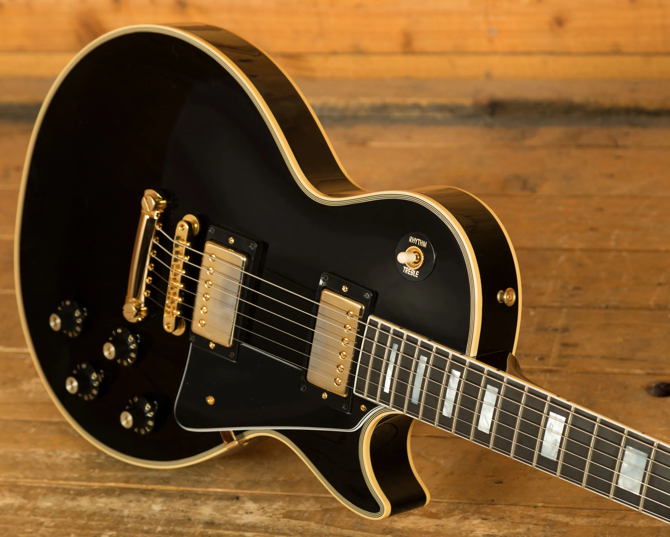 This Gibson '68 Les Paul Custom is the ultimate way to experience what makes the Les Paul so special. With a solid Mahogany body and a Plain Maple Top, the Custom is finished in stunning Ebony with Gold hardware. I think it's fair to say it's a real eye catcher.