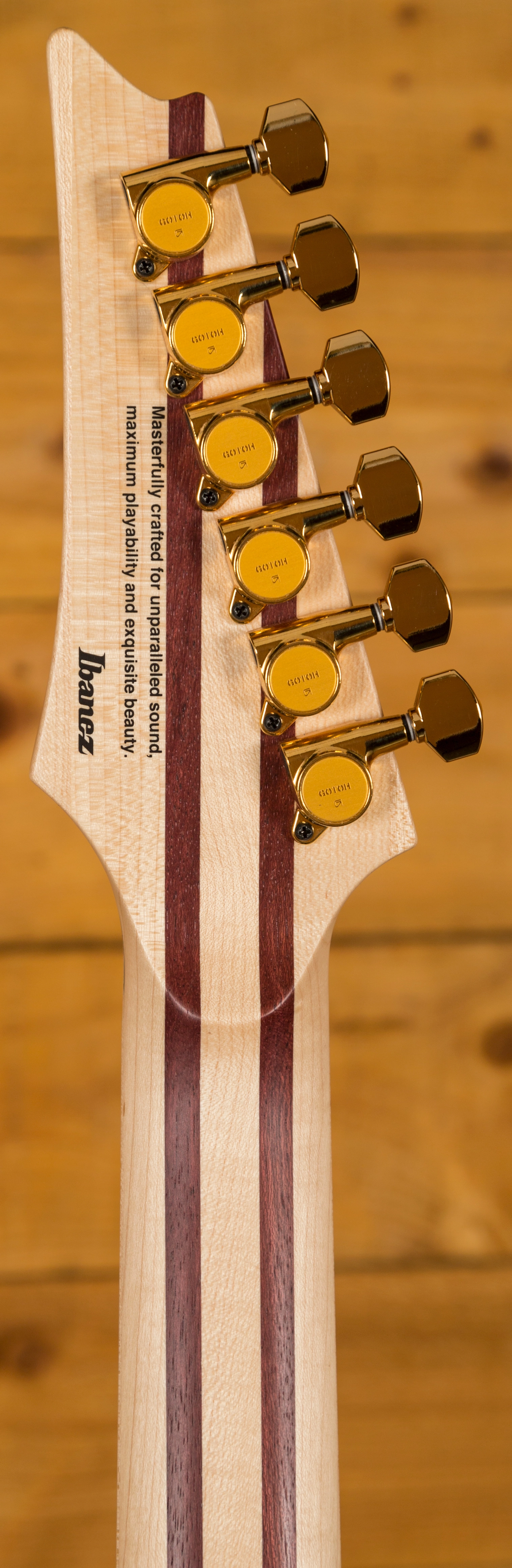 For years the R Series has been one of the most recognisable lines in the Ibanez arsenal, delivering hard rockin' metal machines with precision, speed and power. This Ibanez J Custom is the highlight from this line, crafted in the Ibanez Custom Shop in Japan, it really is the height of construction. We are the UK's only Custom Shop J Custom dealer and through Peach Guitars you can spec out the J Custom of your dreams!