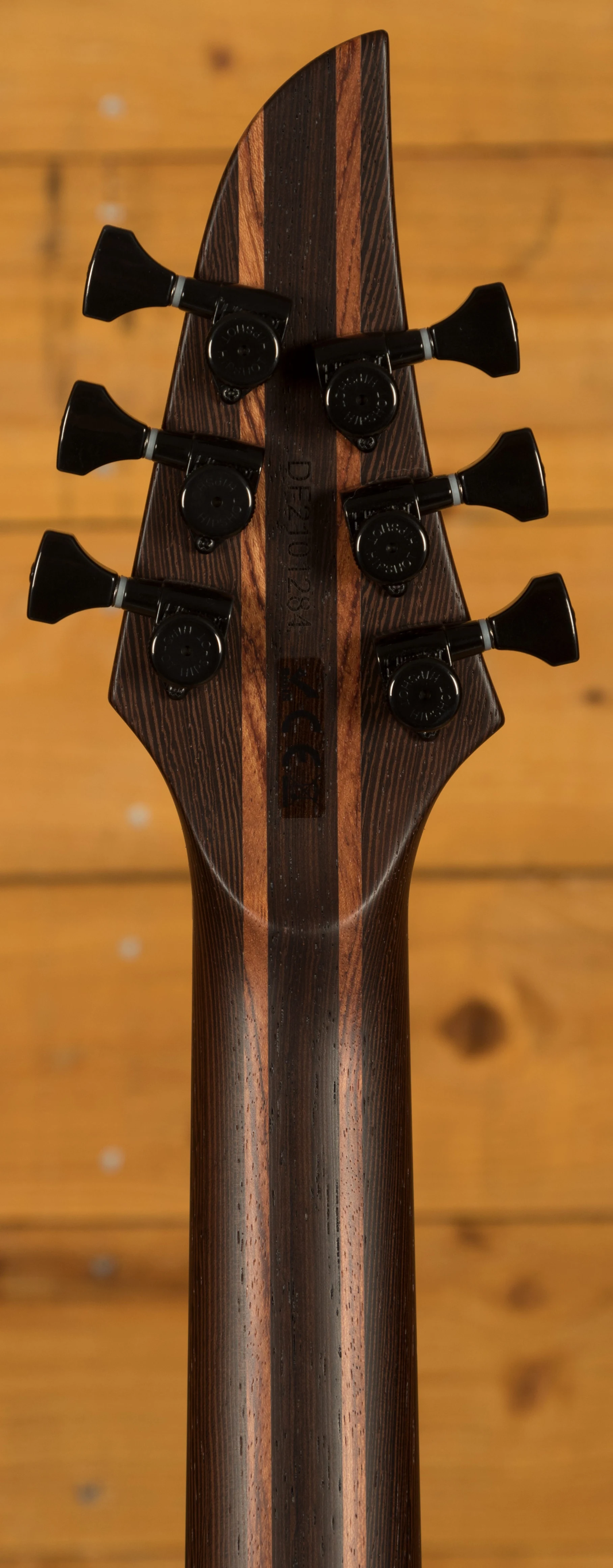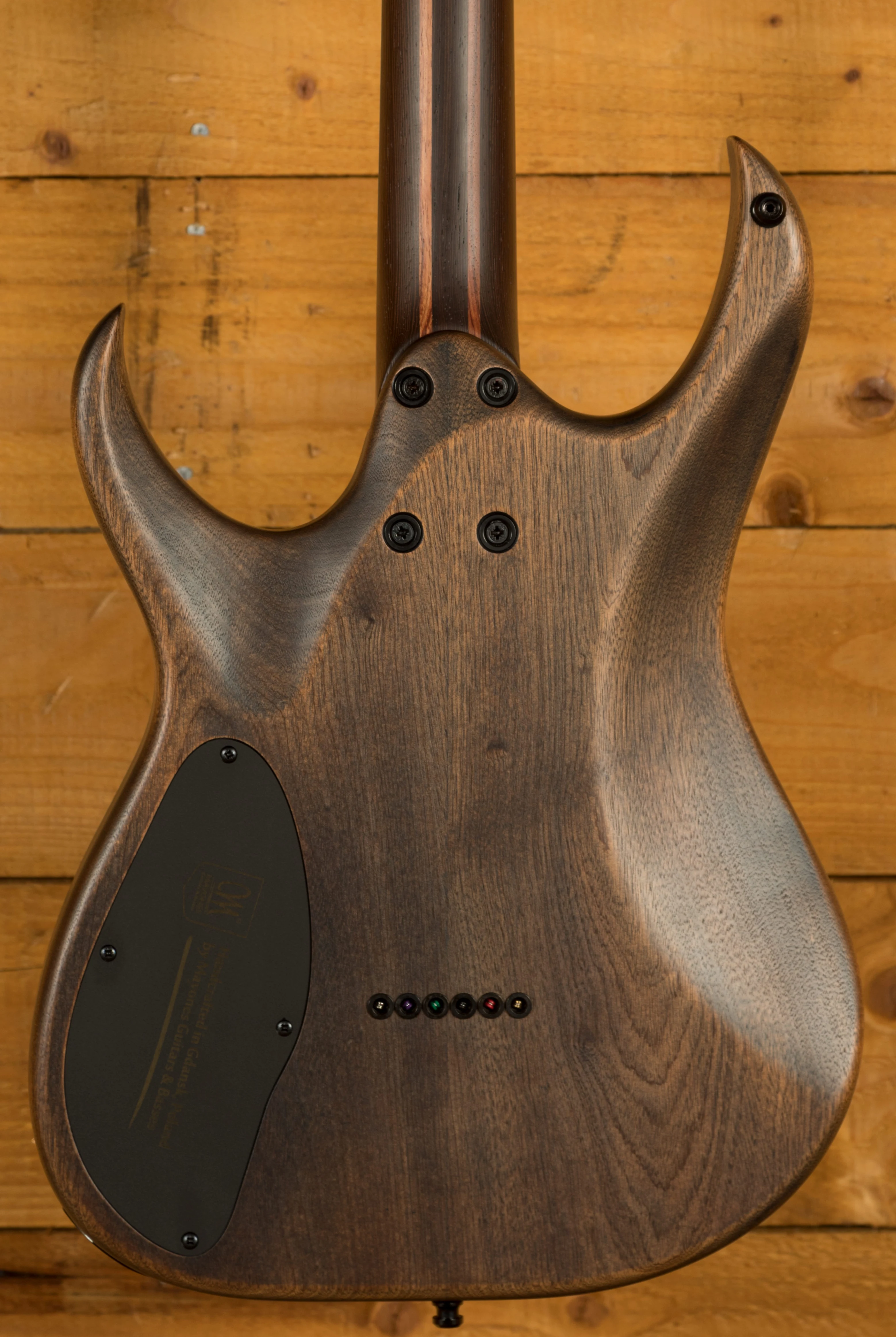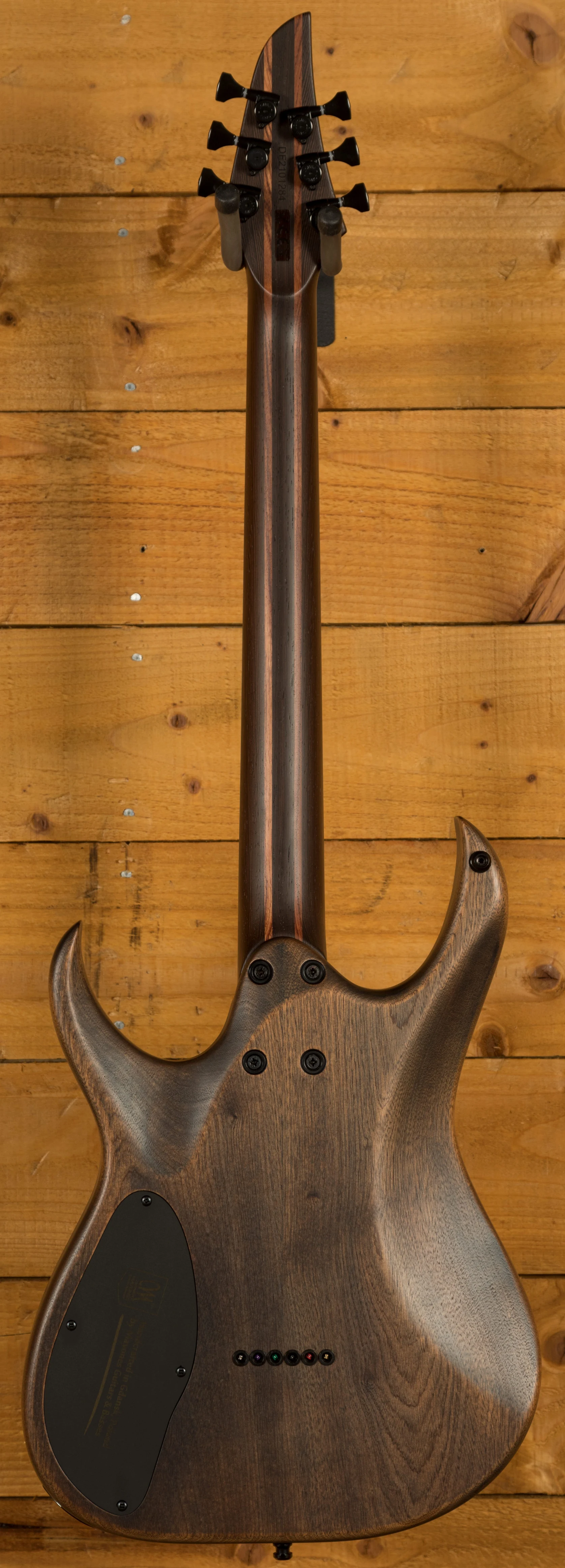 The Wenge dominant 5-ply neck boasts a slick Ebony fingerboard, with 24 stainless steel frets and a 25.4" scale length, its comfortable and fast. The 16" radius feels great under hand and offers a platform perfect for both low end riffing and treble side lead work. This Duvell feels great and really comfortable.