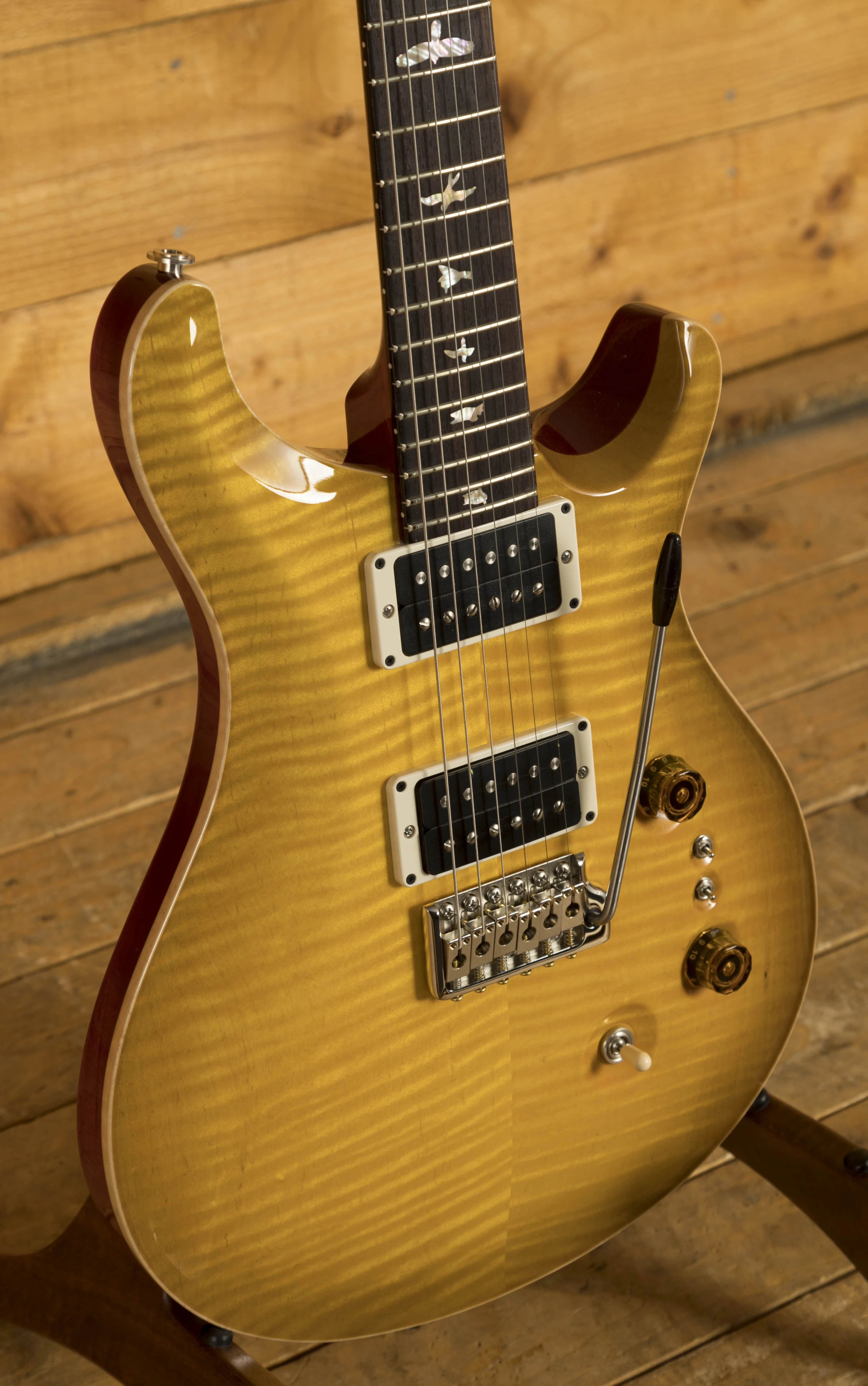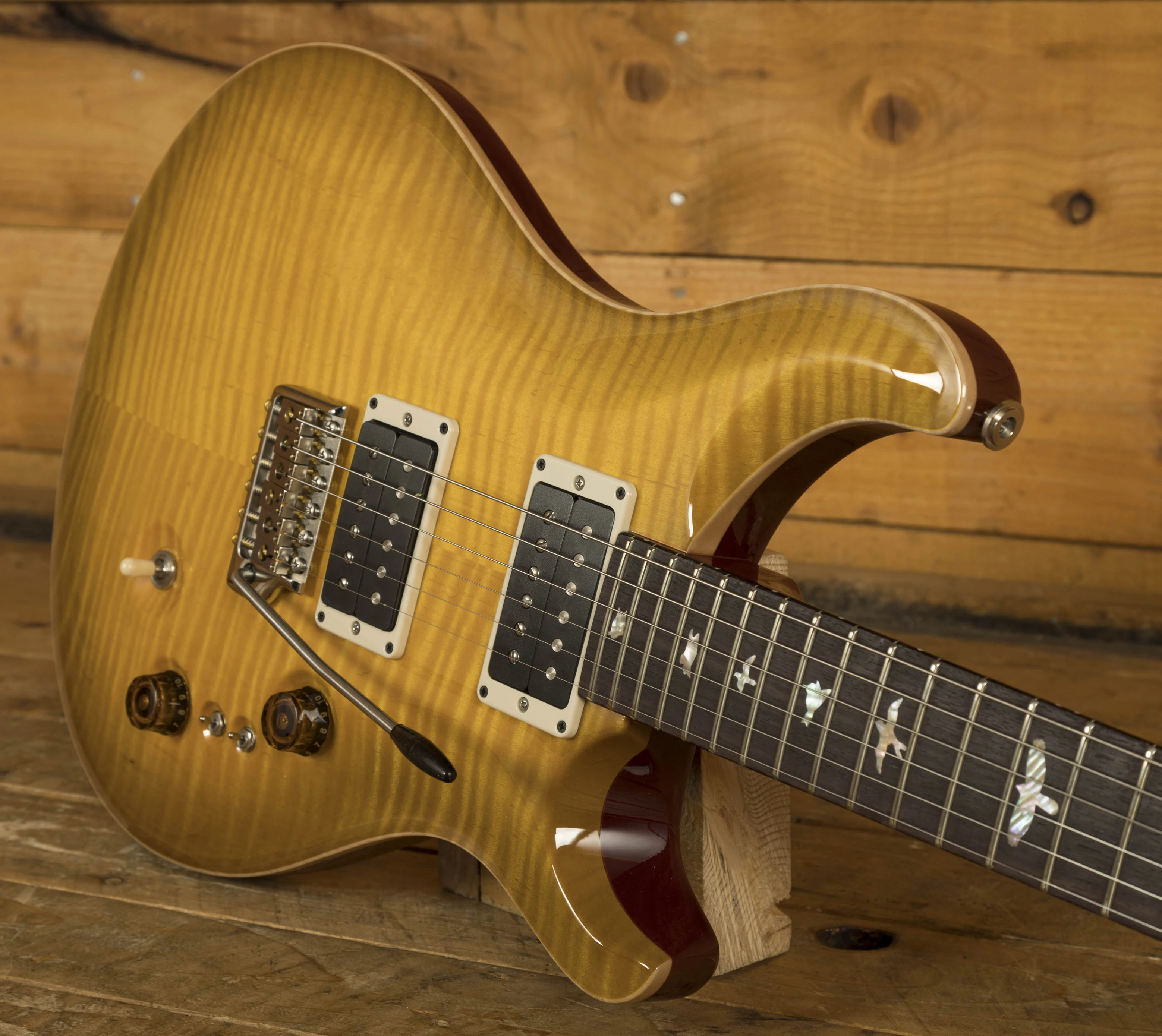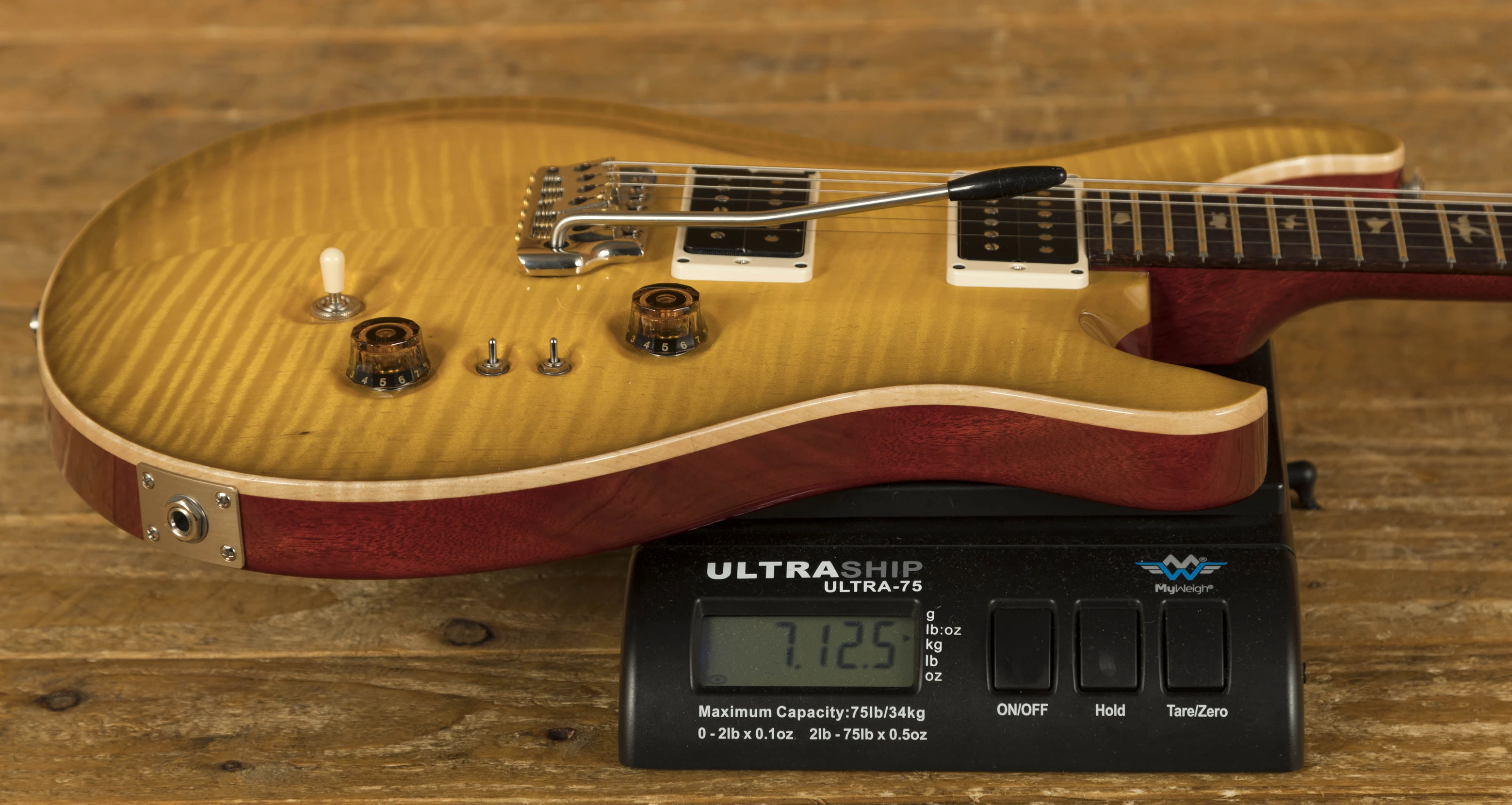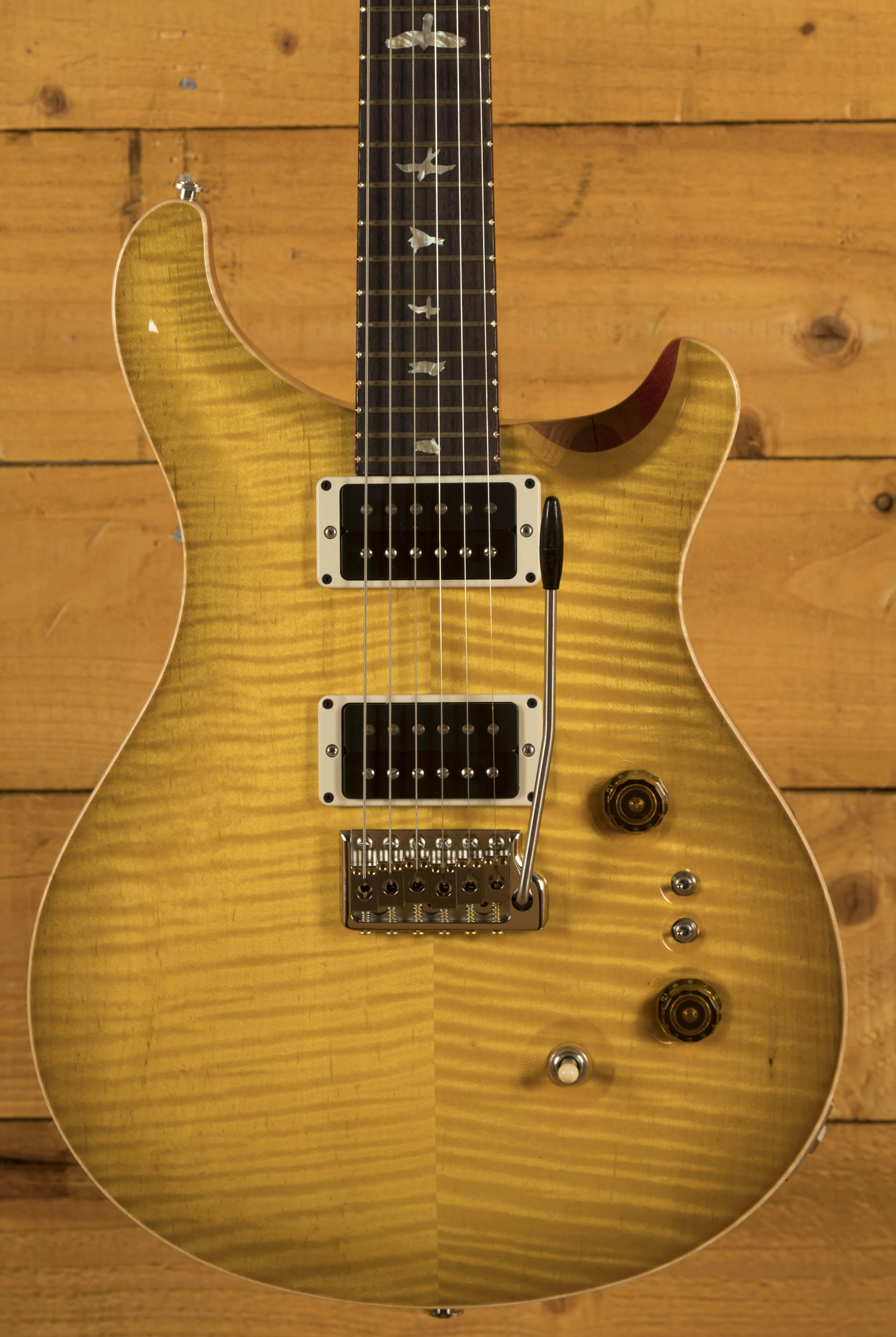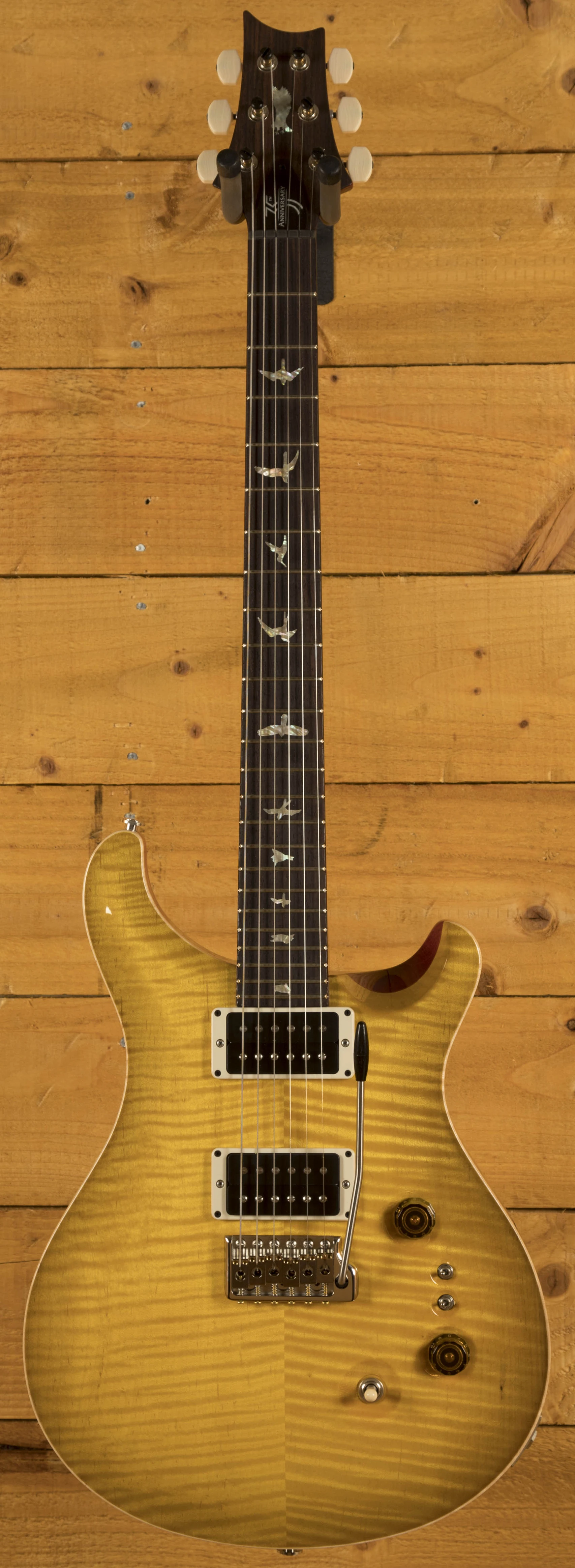 The Mahogany body with carved figured Maple top a offers a rich warmth and depth that complements the beautiful Sunburst finish. With a 25" scale length, Pattern Thin profile and of course, 24 frets, the Mahogany neck feels really comfortable and familiar. The iconic PRS birds sit proudly atop the Rosewood fingerboard for the definitive PRS experience.