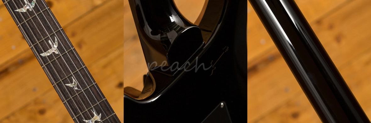 A comfortable 24 fret Rosewood fingerboard proudly bears the signature PRS birds and its 25" scale length Mahogany neck and pattern thin profile offers a comfortable and stable performance. With the PRS patented Gen III tremolo and Phase III locking tuners, you get flawless tuning stability and great intonation, the trem is super responsive and allows you to add some lush texture to your sound.