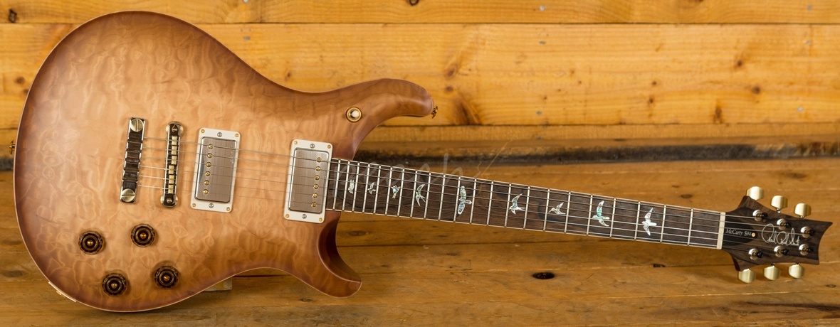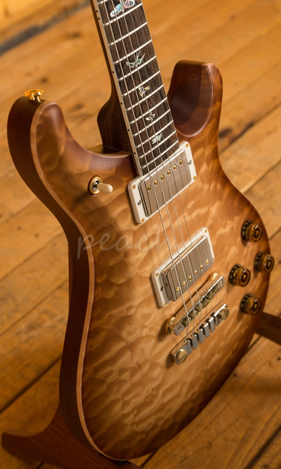 With a stunning highly figured Quilt Maple Wood Library top and Mahogany back, it looks every bit as good as it sounds. The Old Antique Vintage Natural satin finish is stunning and perfectly complements the guitars premium aesthetic. The PRS Wood Library is a select collection of woods kept back for special run models such as this, allowing customers to benefit from wood combinations and specs not normally found on other PRS production models.