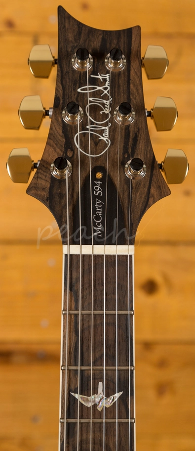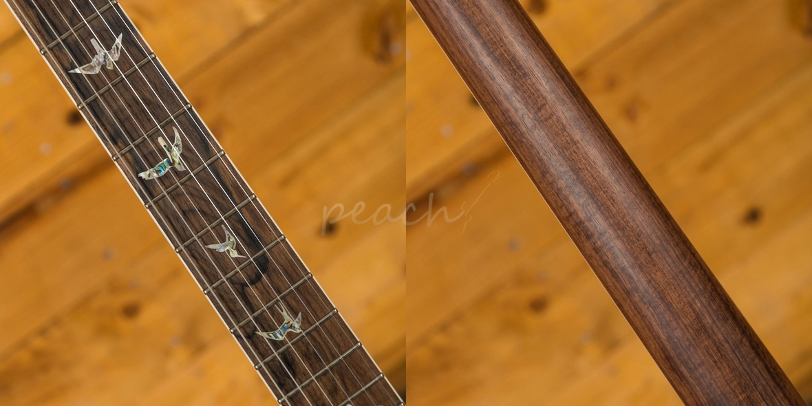 A comfortable 22 fret Ziricote neck and fingerboard proudly bears the signature PRS birds and its 24.594" scale length Mahogany neck, slightly longer than usual, is where the McCarty 594 gets its name.