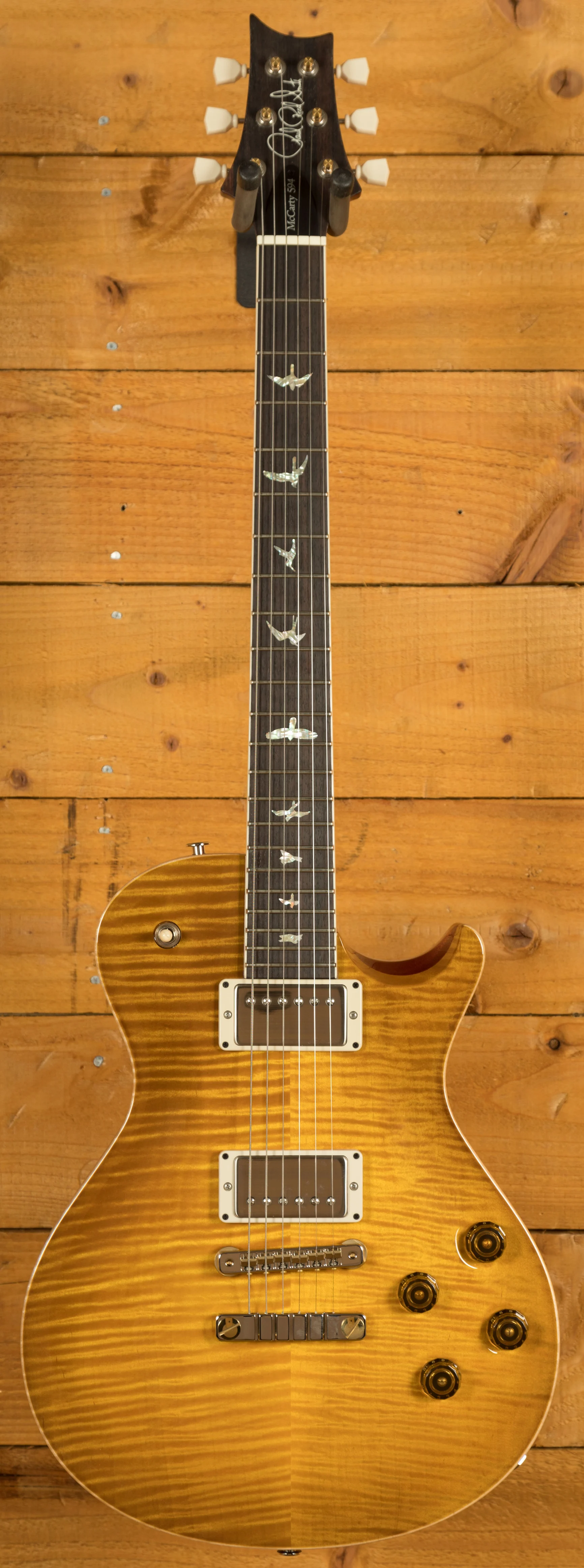 A comfortable 22 fret Rosewood fingerboard proudly bears the signature PRS birds and its 24.594" scale length Mahogany neck, slightly longer than usual, is where the McCarty SC594 gets its name.