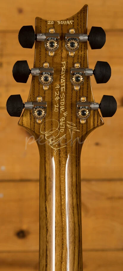 The Ash Neck neck features the PRS Pattern neck-carve, this profile is smooth and super comfortable. Both the fingerboard and headstock of this Private Stock guitar are immaculate and really draw you in. Constructed from both Ebony and Curly Maple with the incredible "Birds of a Feather" inlay design. The contrast on the fingerboard is truly stunning and is one of the defining features of this guitar.