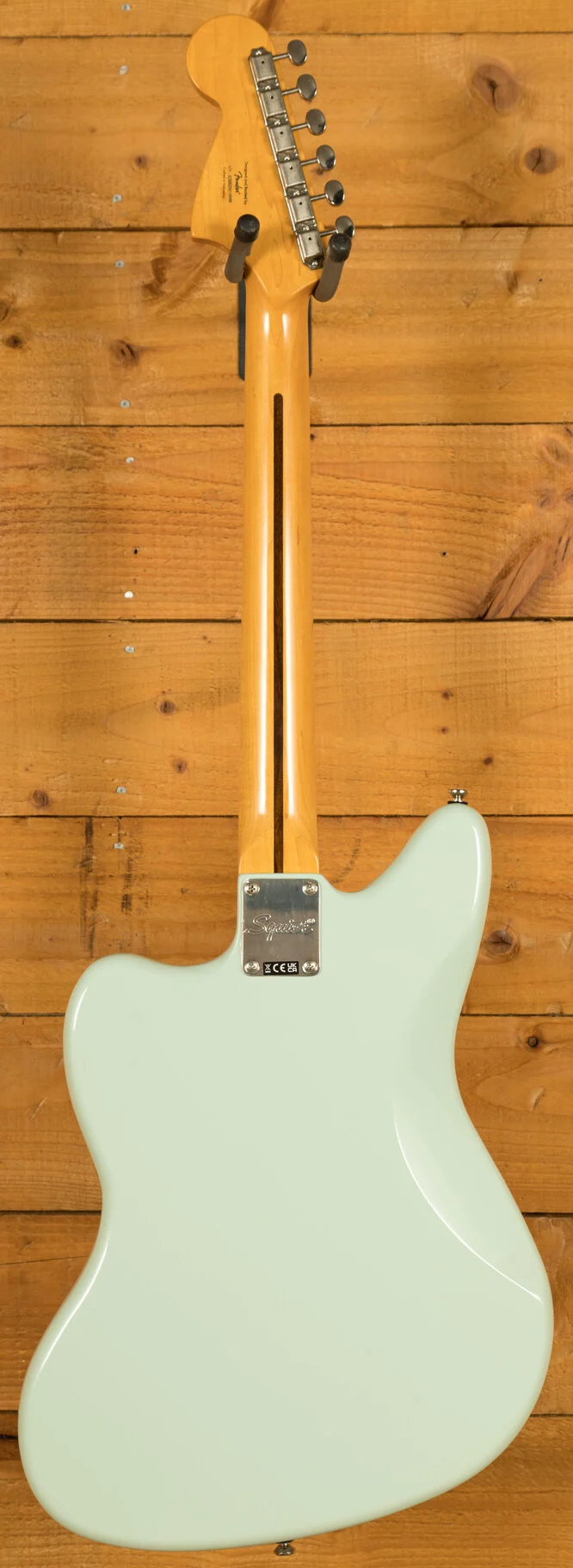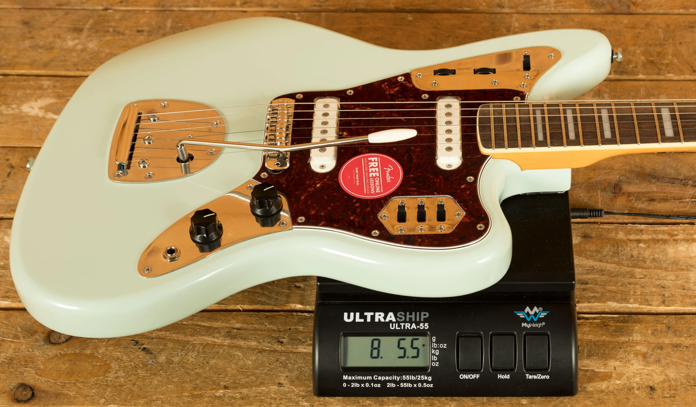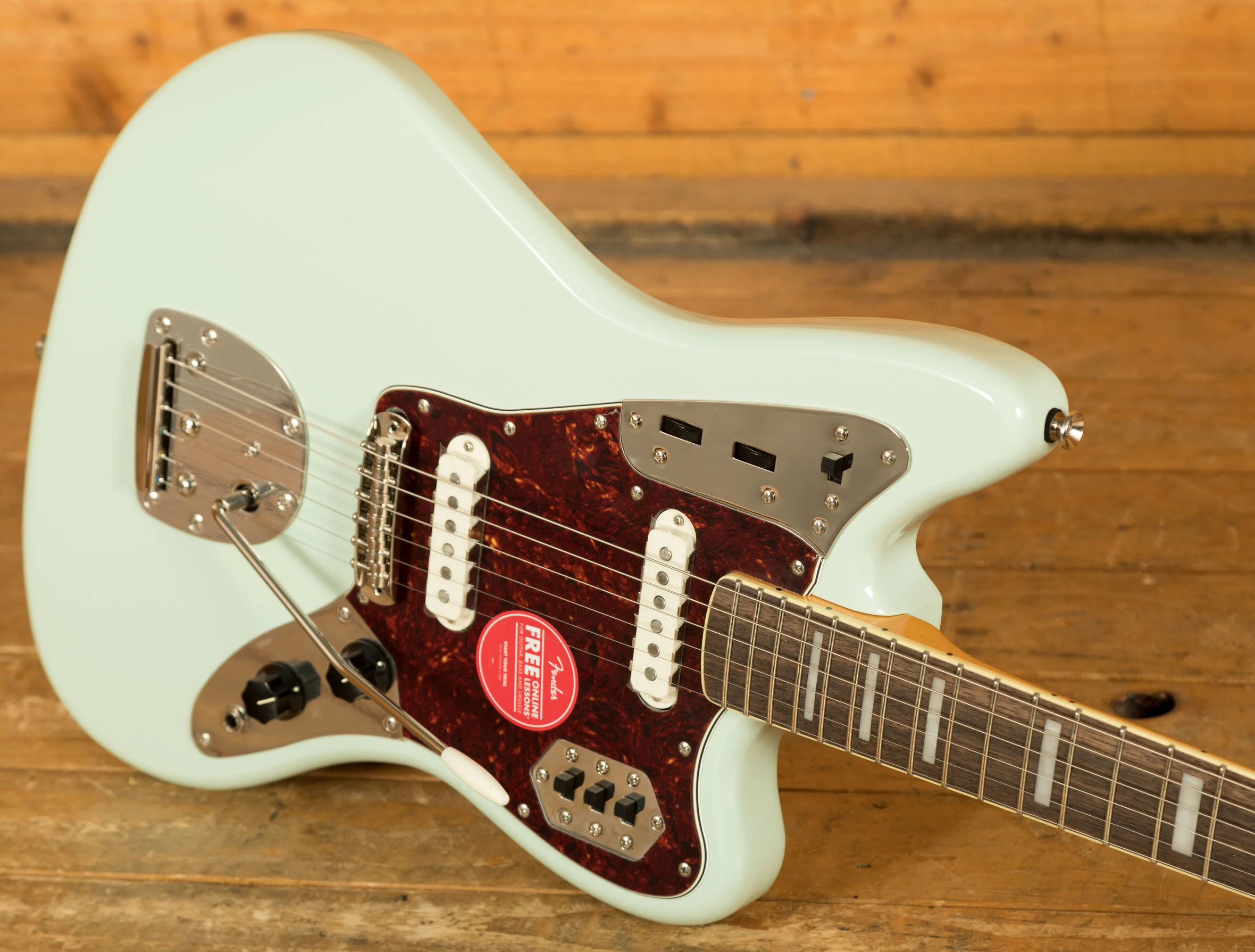 With the same sweeping curves, the Poplar body is finished in a lush Sea Foam Green, it's vibrant, rich and will appeal to both the surfers and the grungers! Loaded with a pair of Fender designed Alnico single coil Jaguar pickups, you can get that classic clean twang or really push it for the ultimate rock machine.