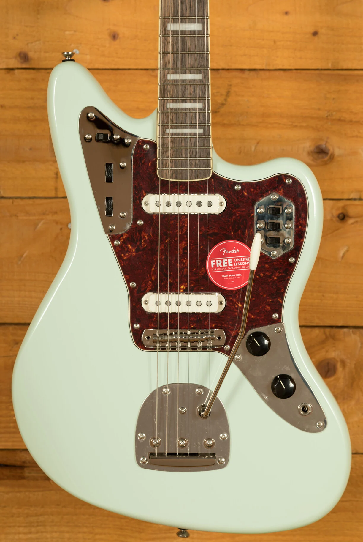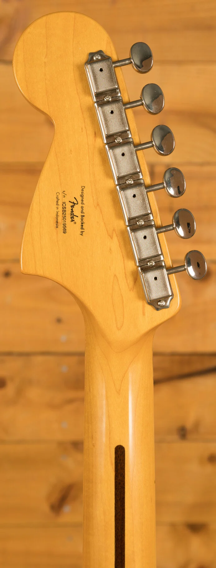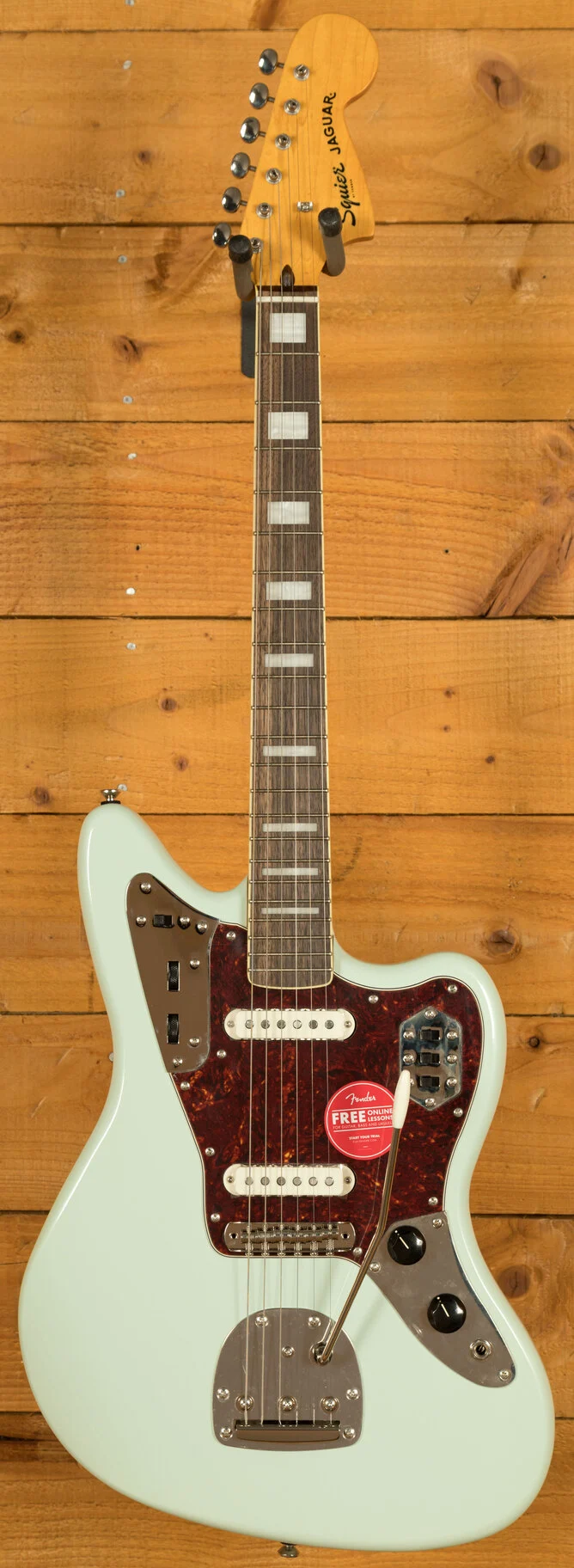 With the same sweeping curves, the Poplar body is finished in a lush Sea Foam Green, it's vibrant, rich and will appeal to both the surfers and the grungers! Loaded with a pair of Fender designed Alnico single coil Jaguar pickups, you can get that classic clean twang or really push it for the ultimate rock machine.