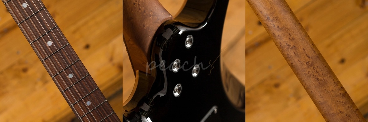 With a AAA grade Roasted Maple, the Modern benefits from a 10- 14" fingerboard radius and a Pau Ferro fingerboard for an extremely comfortable playing experience. The 24 Jumbo stainless steel frets offer great string bending potential and long lasting playability.