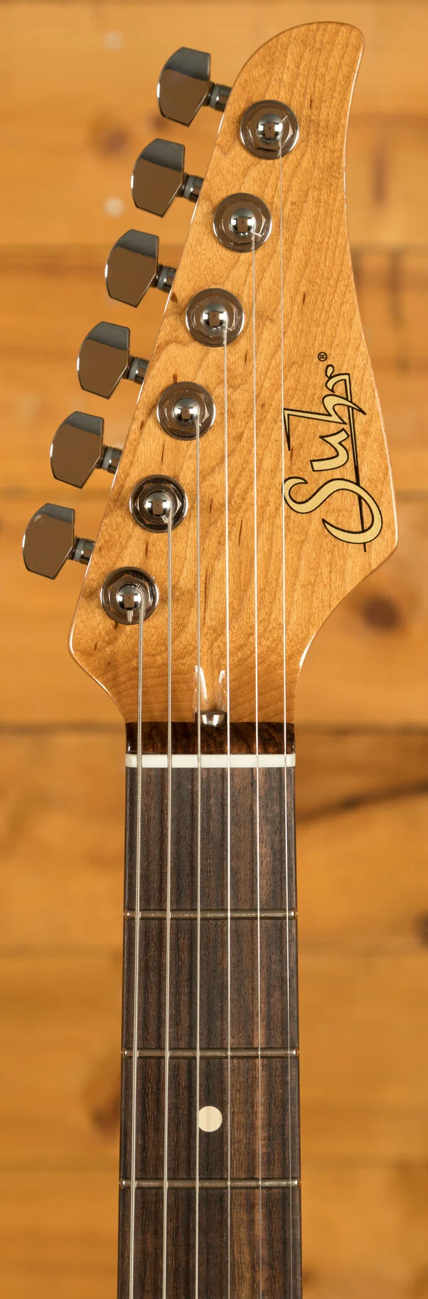 Benefitting from 3 V63+ single coil pickups it replicates those famous Strat tones, rich, punchy and ready to growl. The V63+ pickups are overwound for increased sustain and a higher output. The Scott Henderson Classic is versatile and adaptable and boosted by the Suhr SSCII, a completely transparent noise reduction system. Installed inside the body, it reduces 60 cycle hum and has no effect on tone, it just helps keep those crystal clear tones ringing!