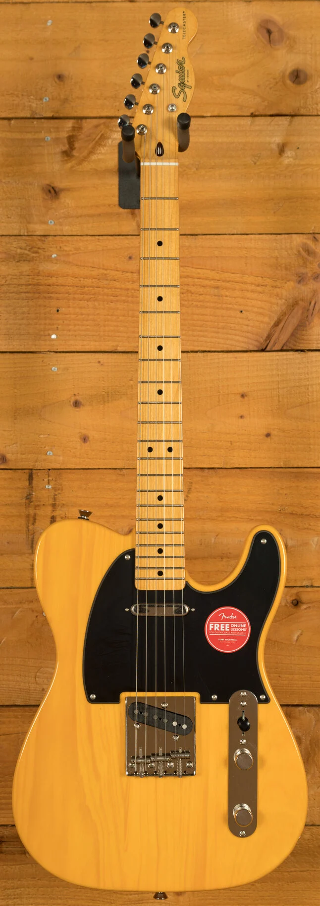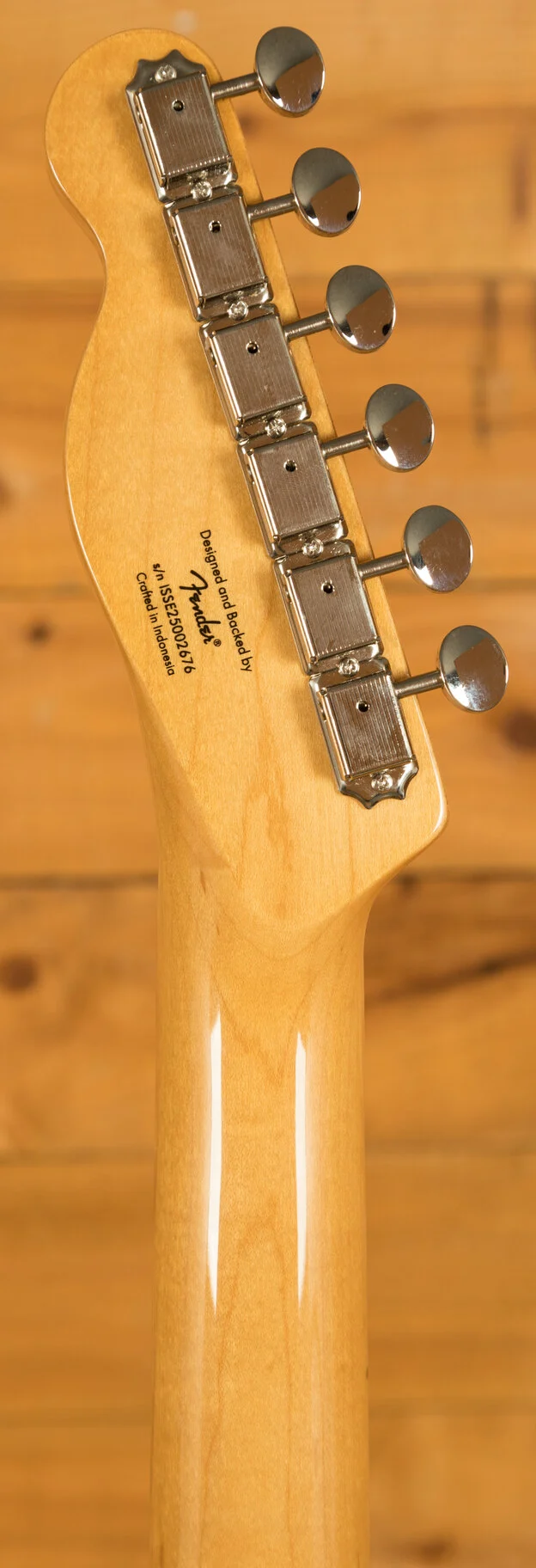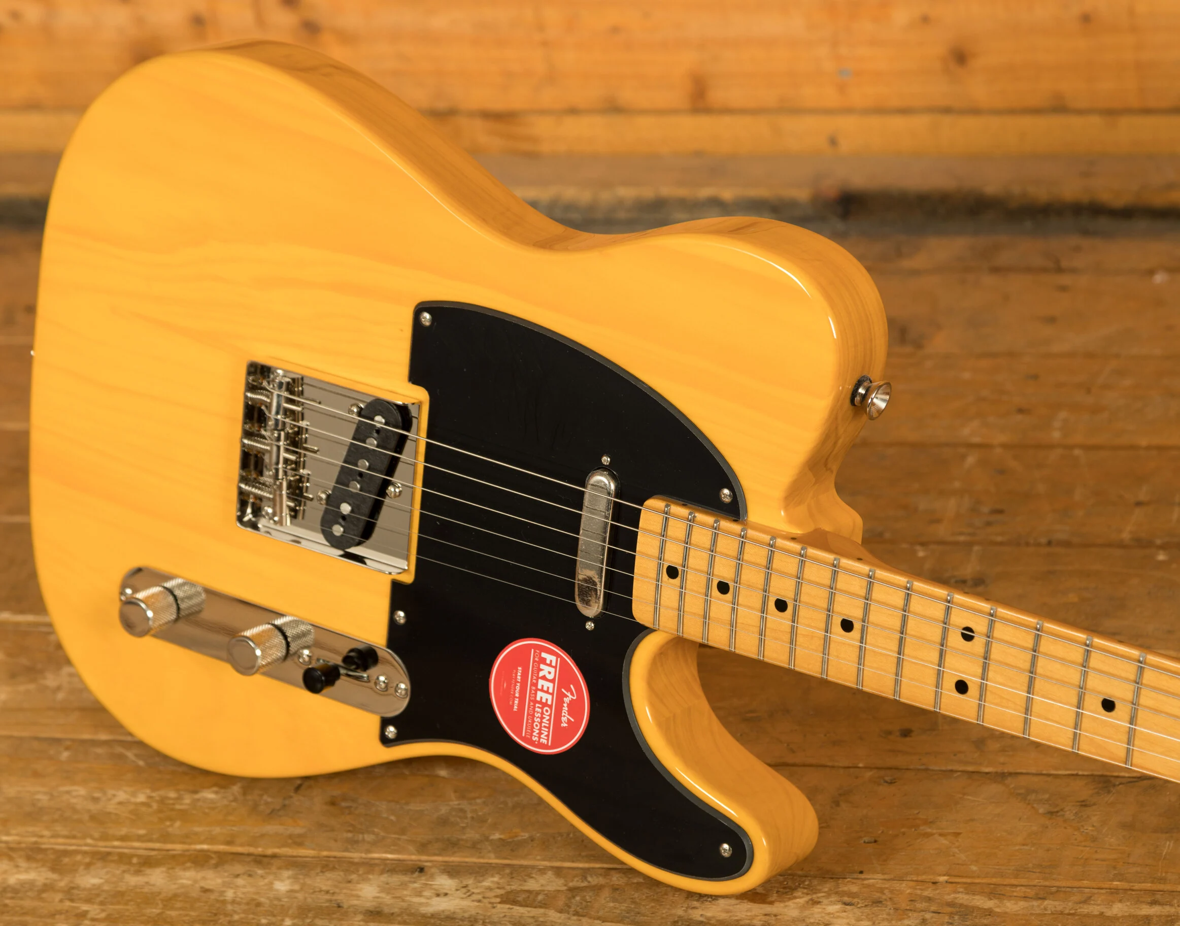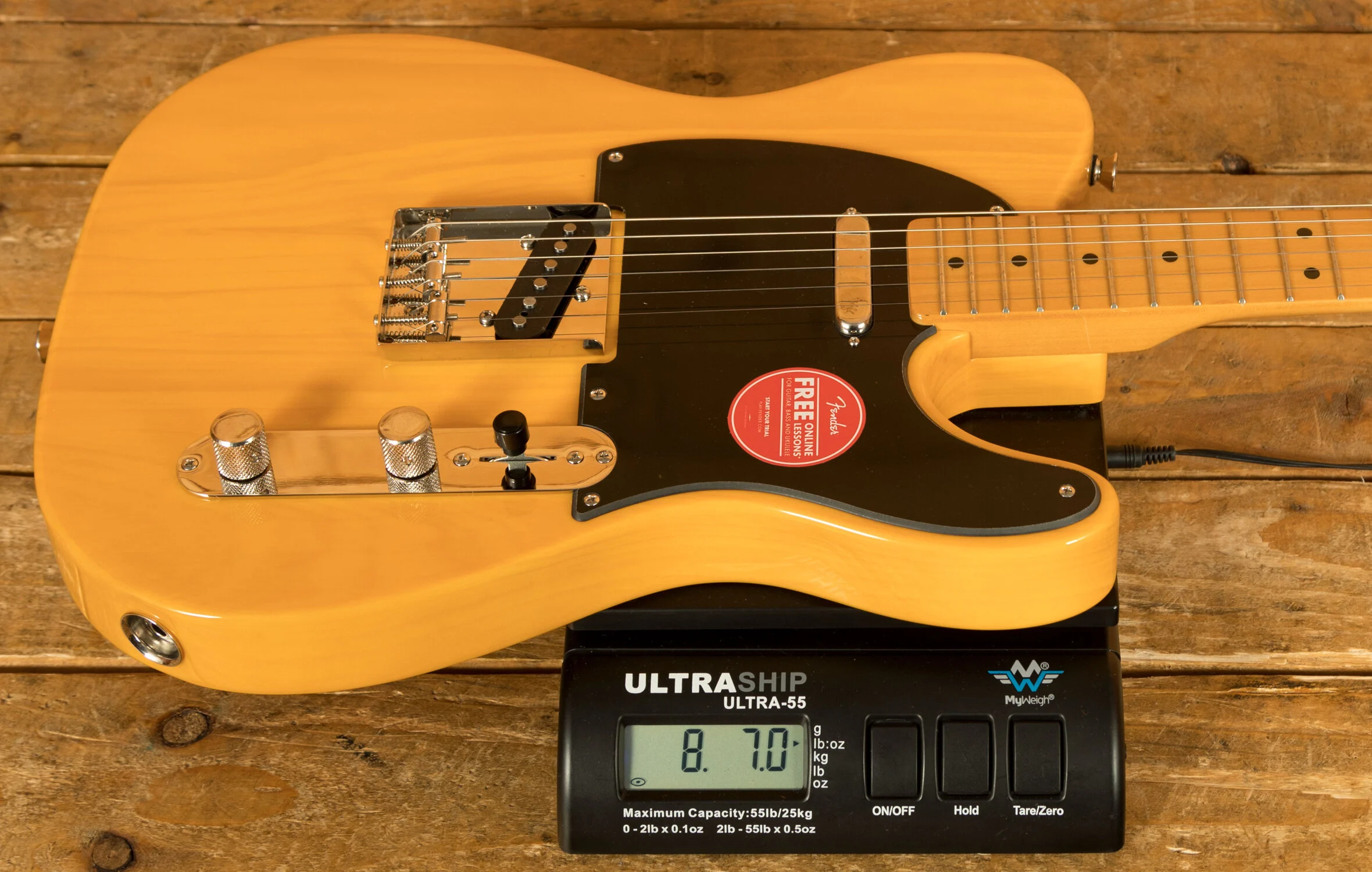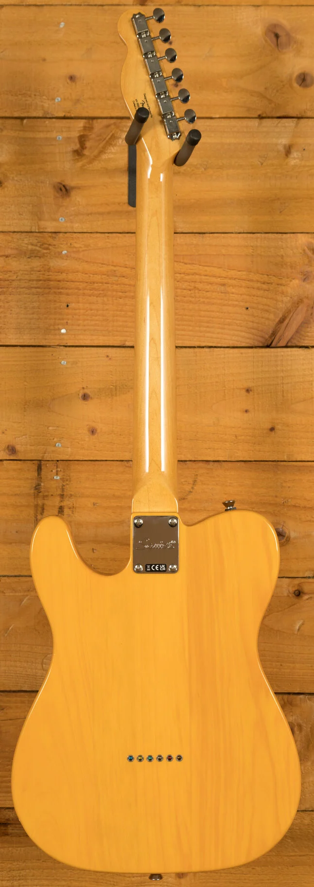 The Pine body is finished in a crisp Butterscotch Blonde, lightweight and finely crafted; it delivers classic Tele tones. The Maple neck features a modern C profile, 25.5" scale length, 9.5" radius and 21 narrow tall frets. It's real comfortable, whether you are playing huge chords or smooth lead lines, the Tele can deliver it.