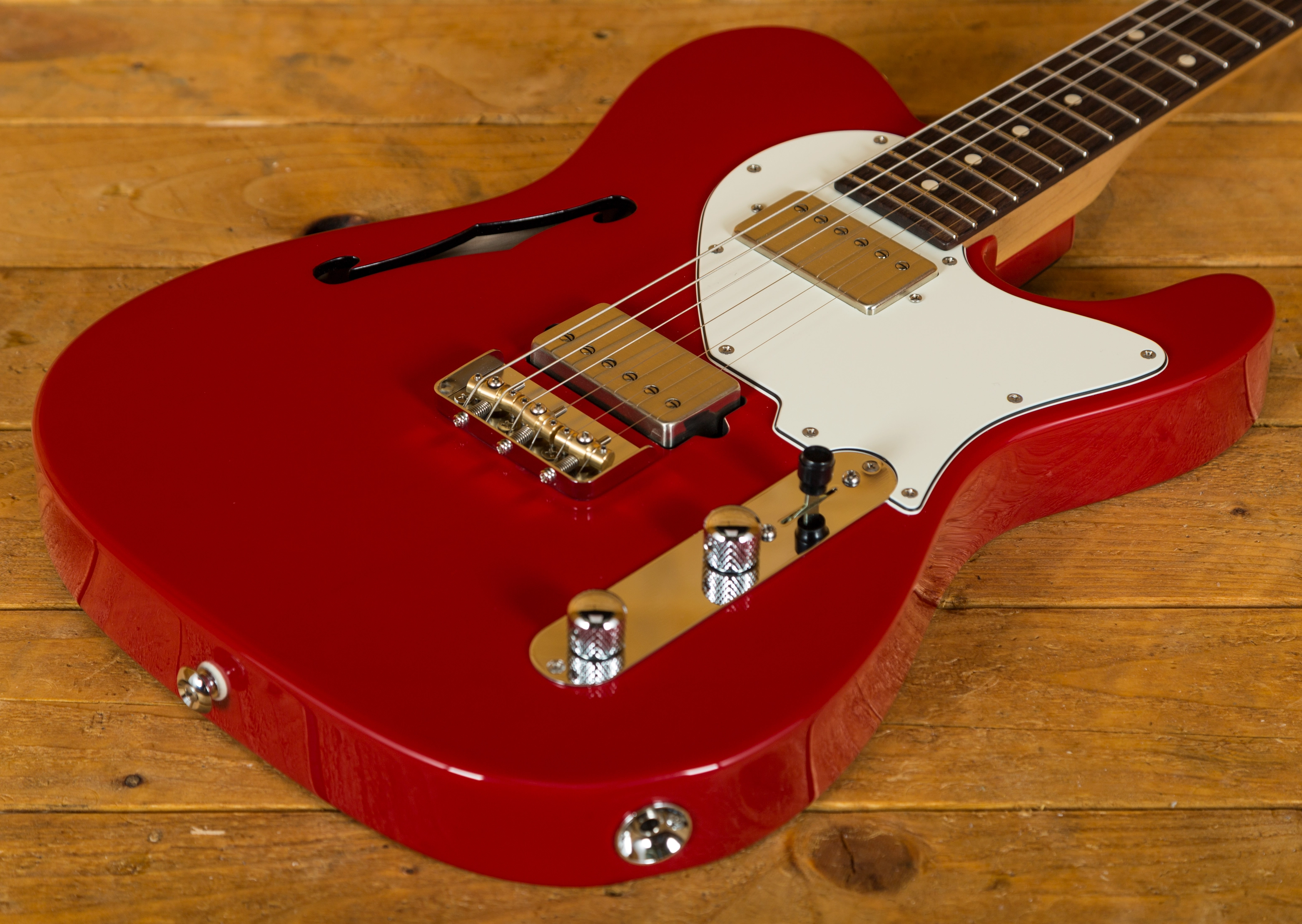 The guitar has a rich, chimey clean voice, which just responds beautifully when you crank up the gain. You really hear the wood of the guitar, rather than just all gain and no tone.