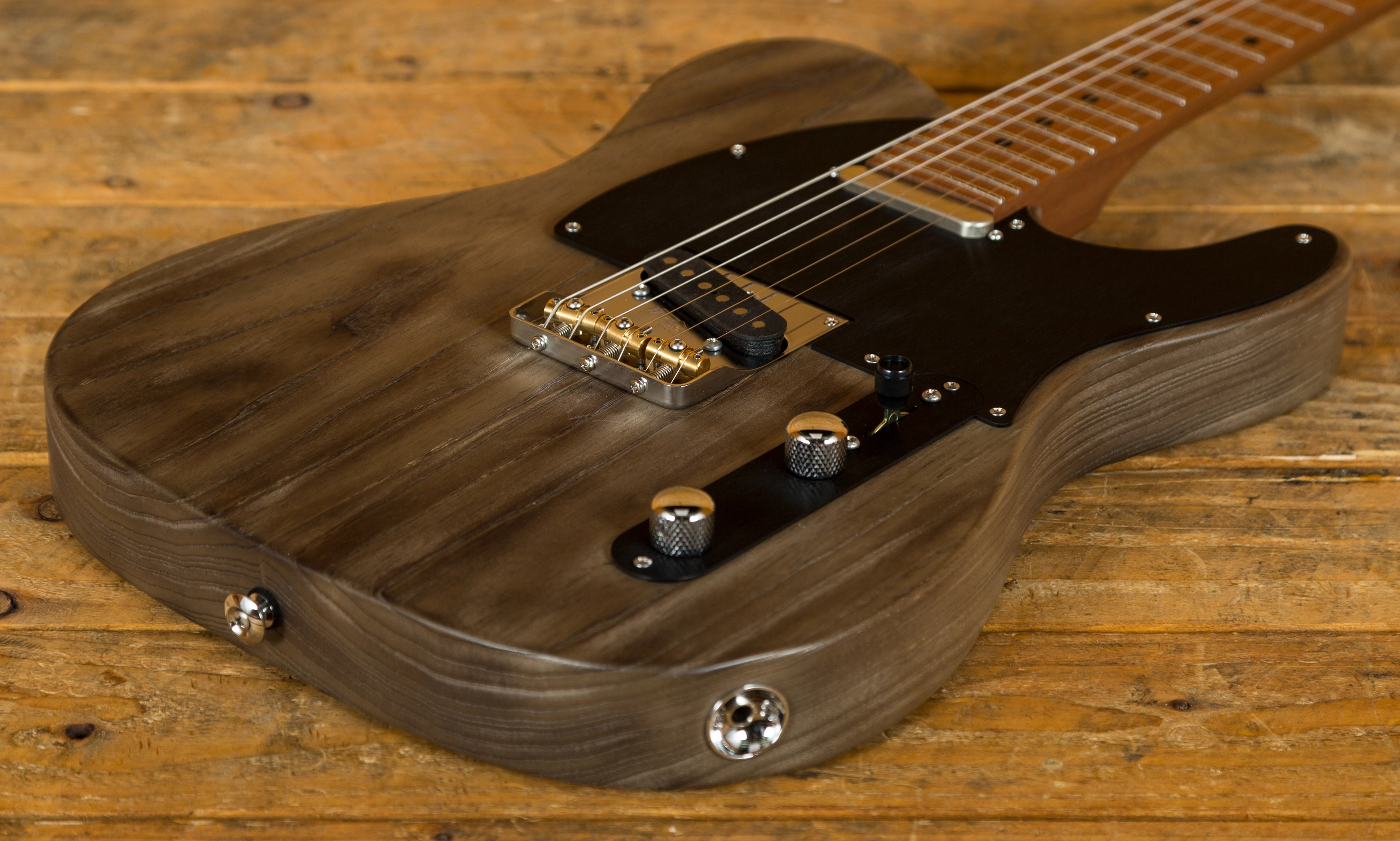The Andy Wood Signature Series Modern T is a really unique modern style T guitar. With a torched Swamp Ash body, finished in Whiskey Barrel, it's beautifully balanced and poised. Before the finish is applied, the body is torched by hand, burning away part of the grain to really highlight the impressive natural patterns through the finish.