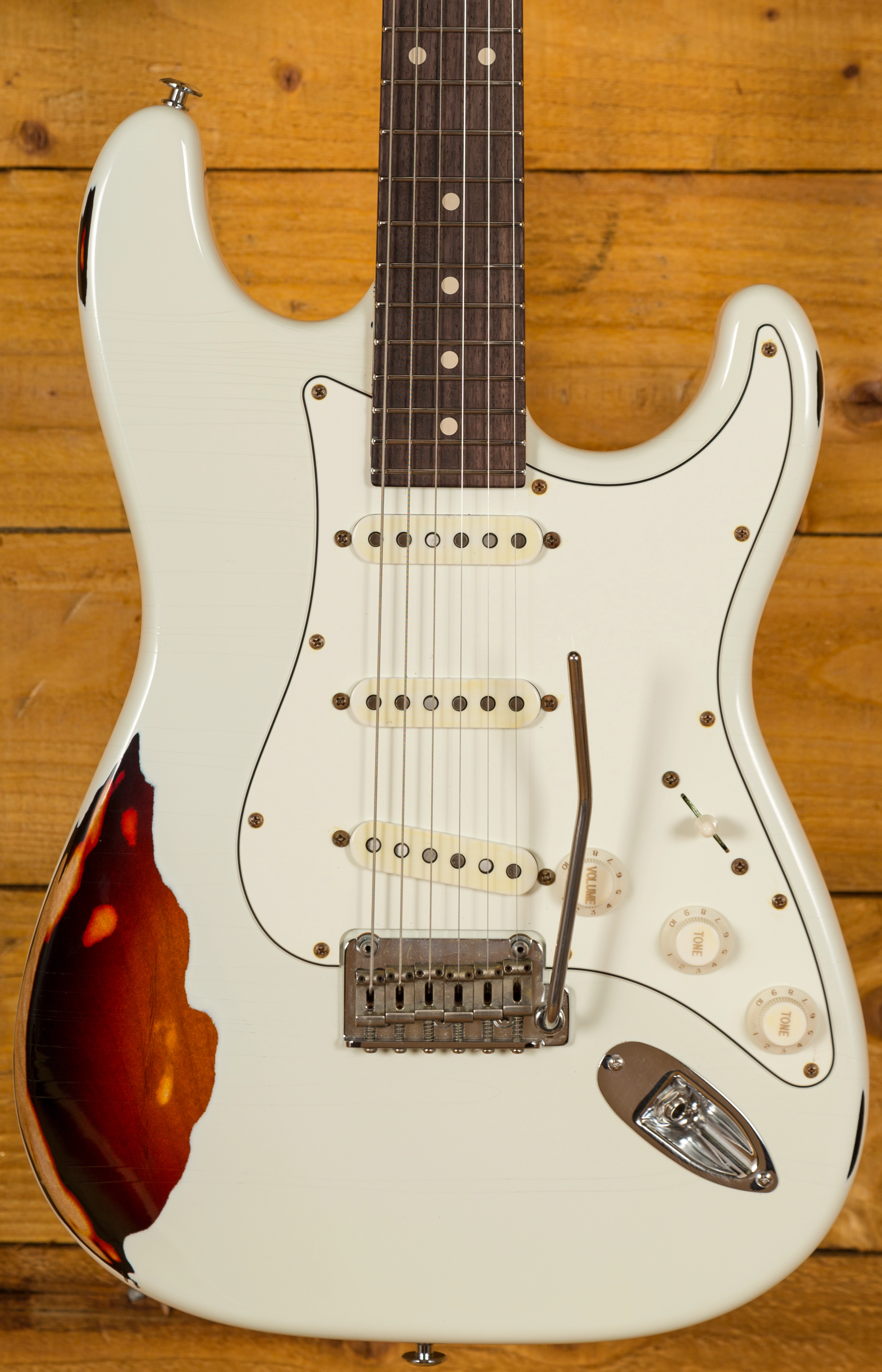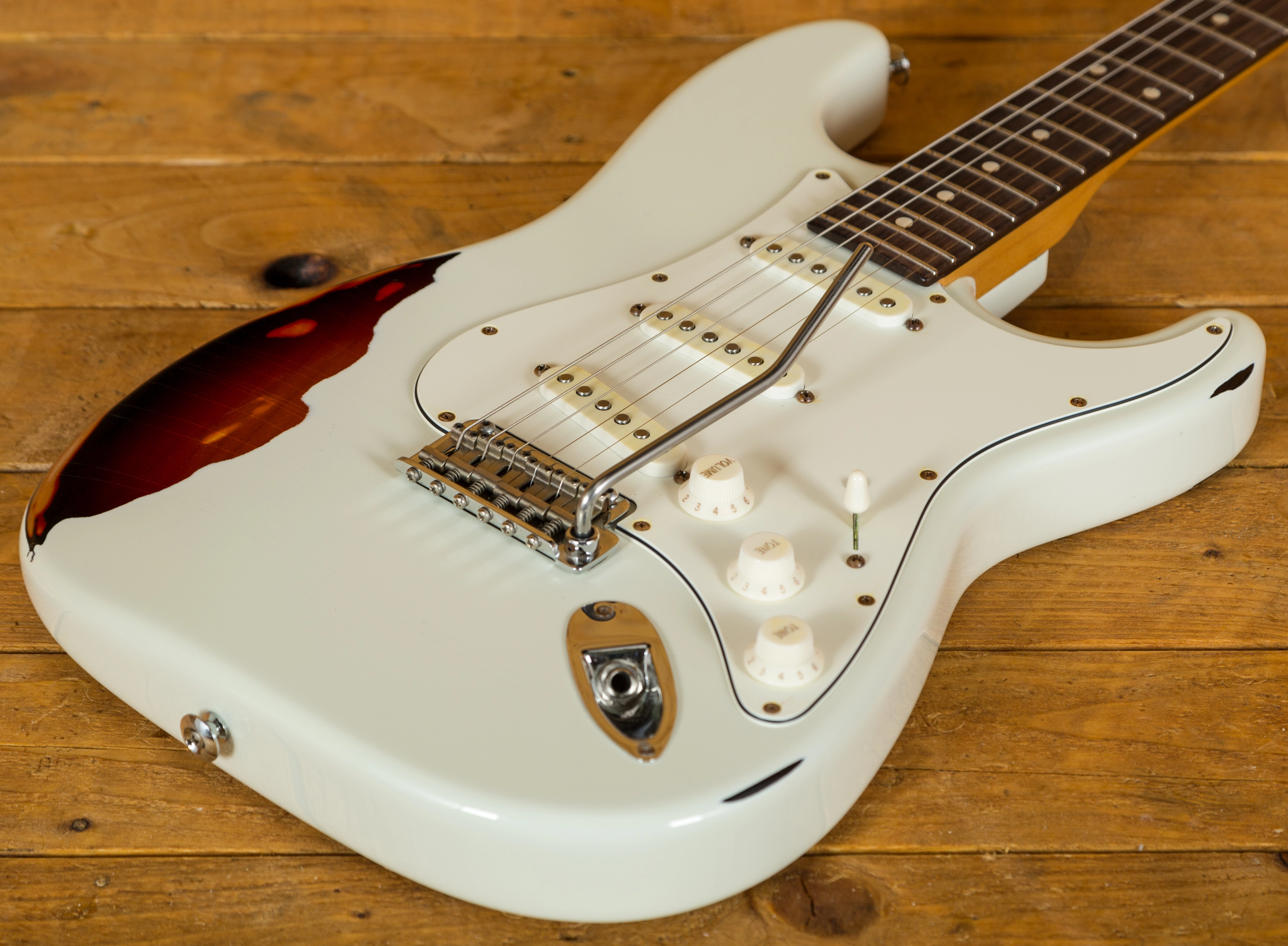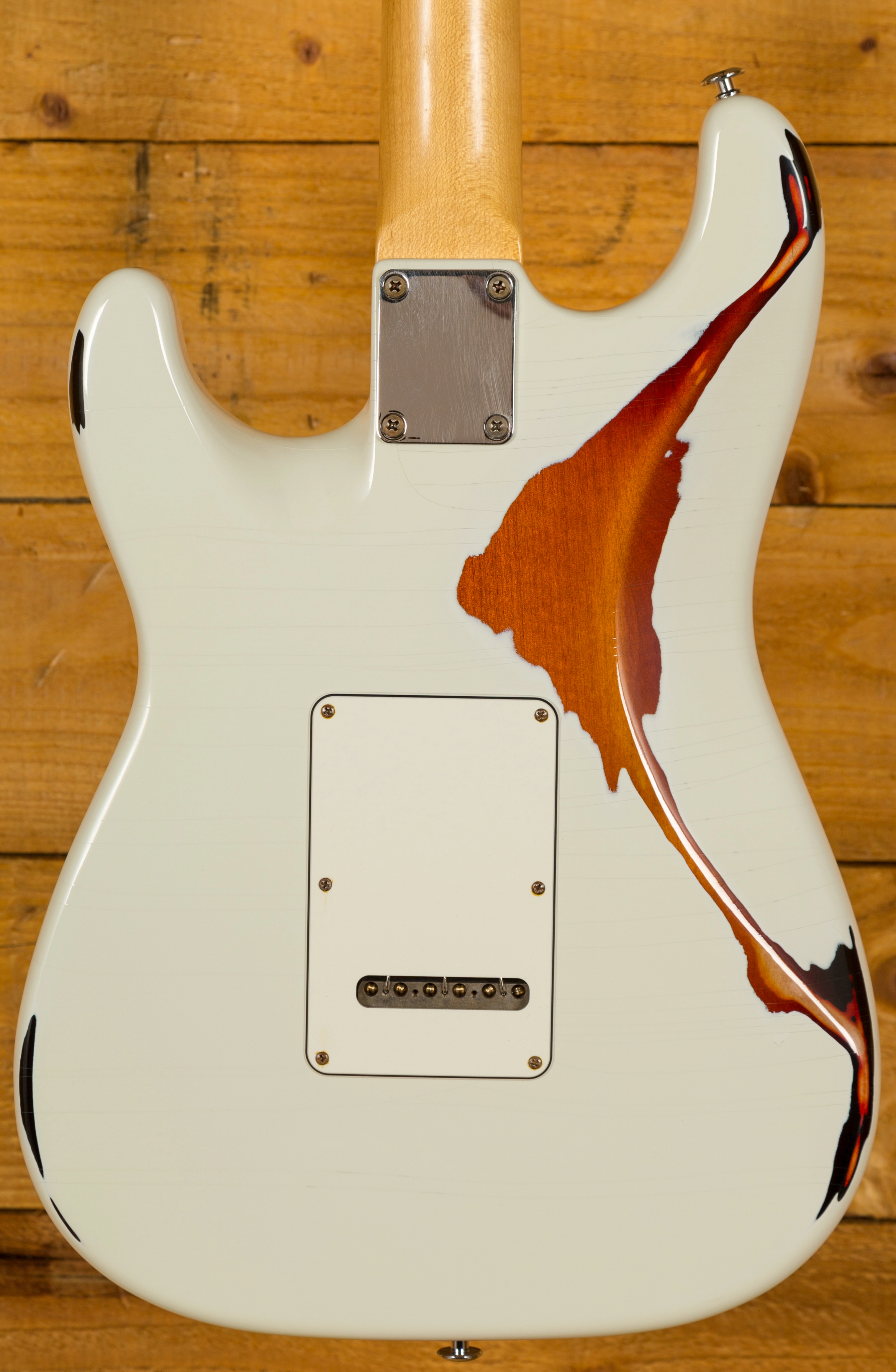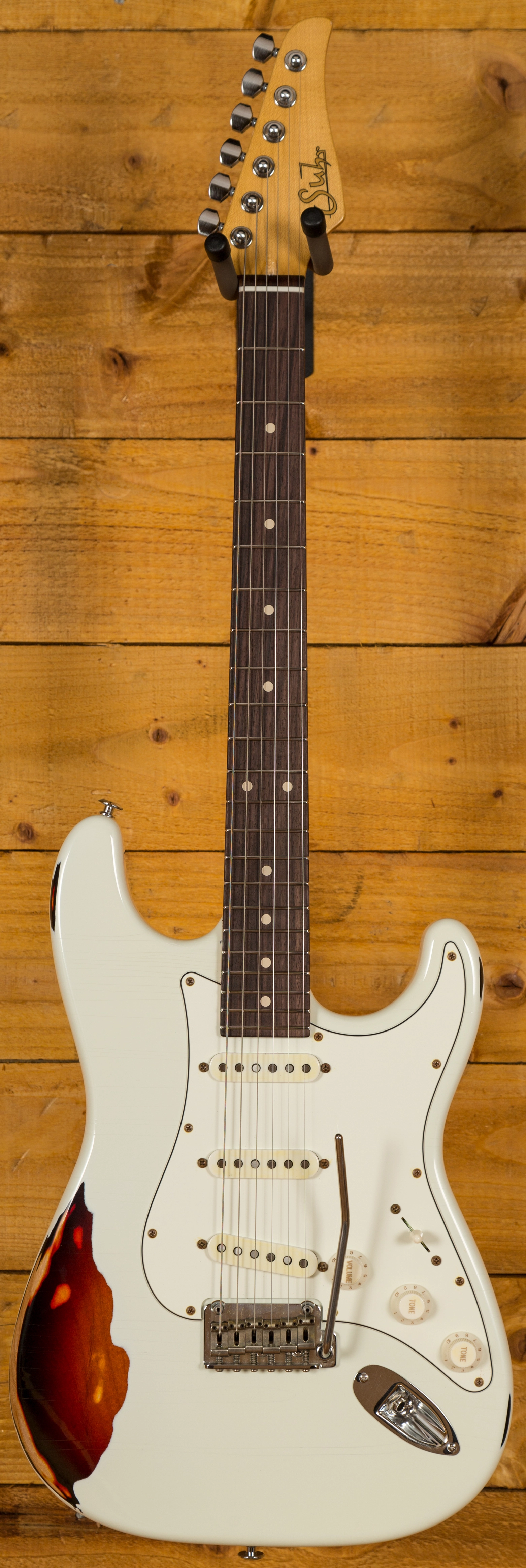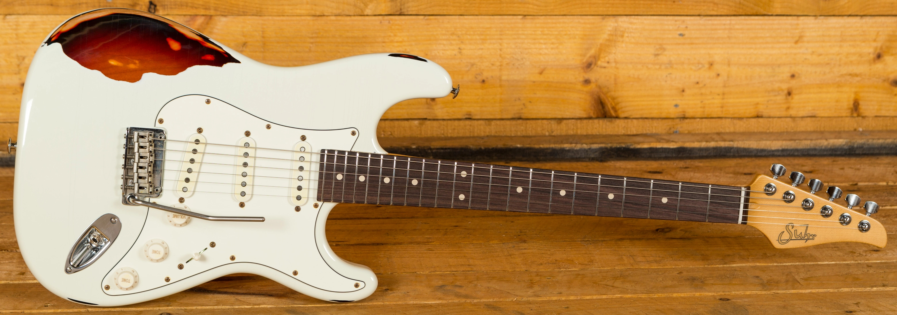These guitars feature all the vintage elements we love but back it up with super stable and reliable modern-day benefits. Each Suhr is crafted to replicate these unique finishes, by coating the 3 Tone Sunburst with a thin layer of nitrocellulose lacquer and then carefully ageing, you can see the distinctive Sunburst finishes through the tasty relic'd Olympic White.