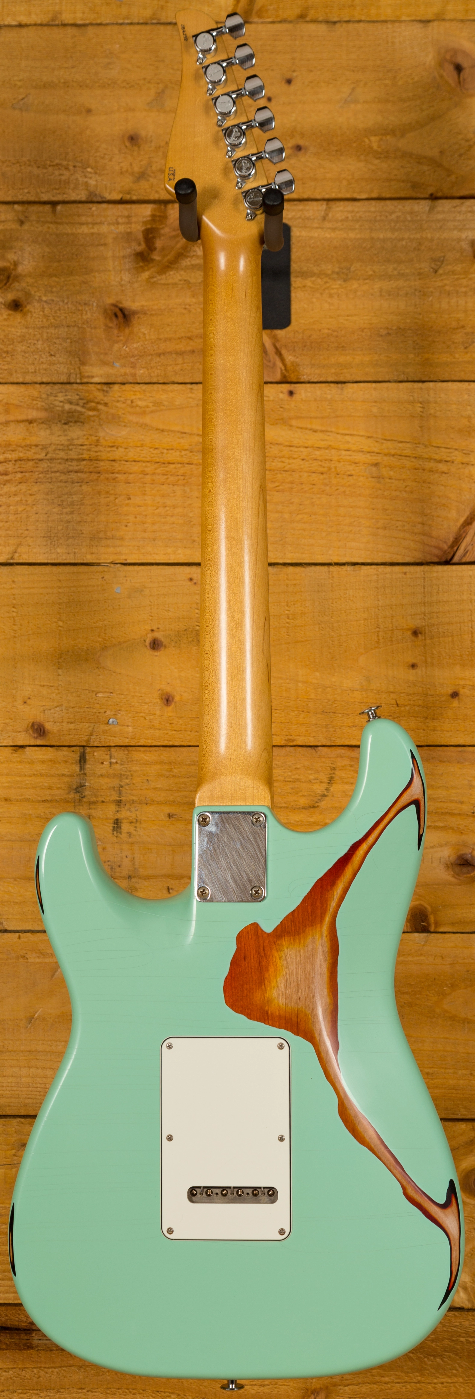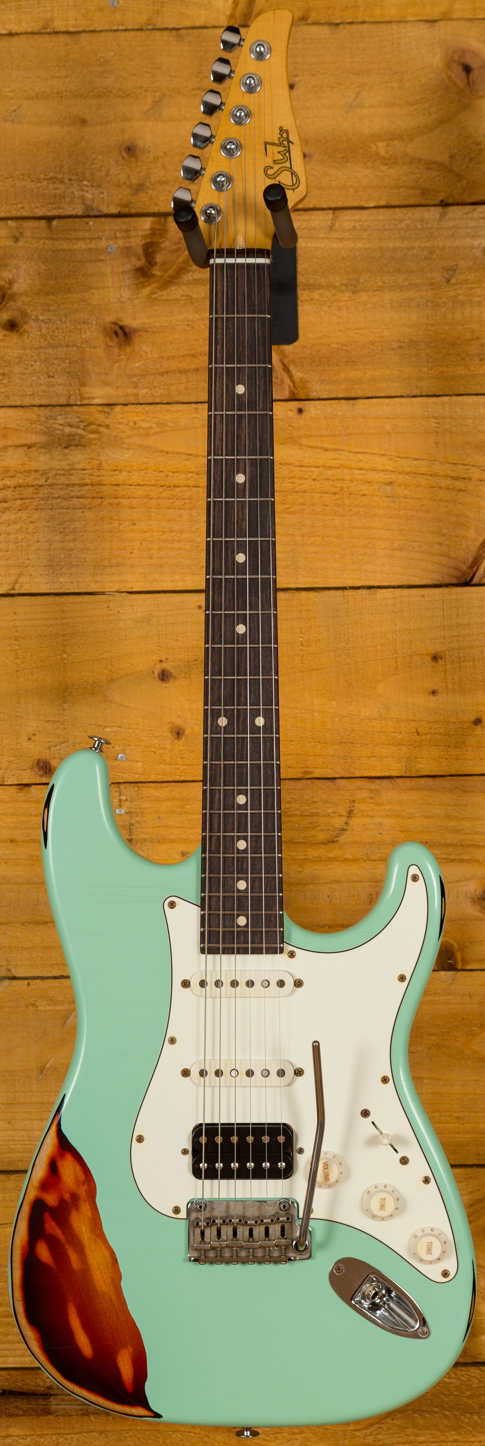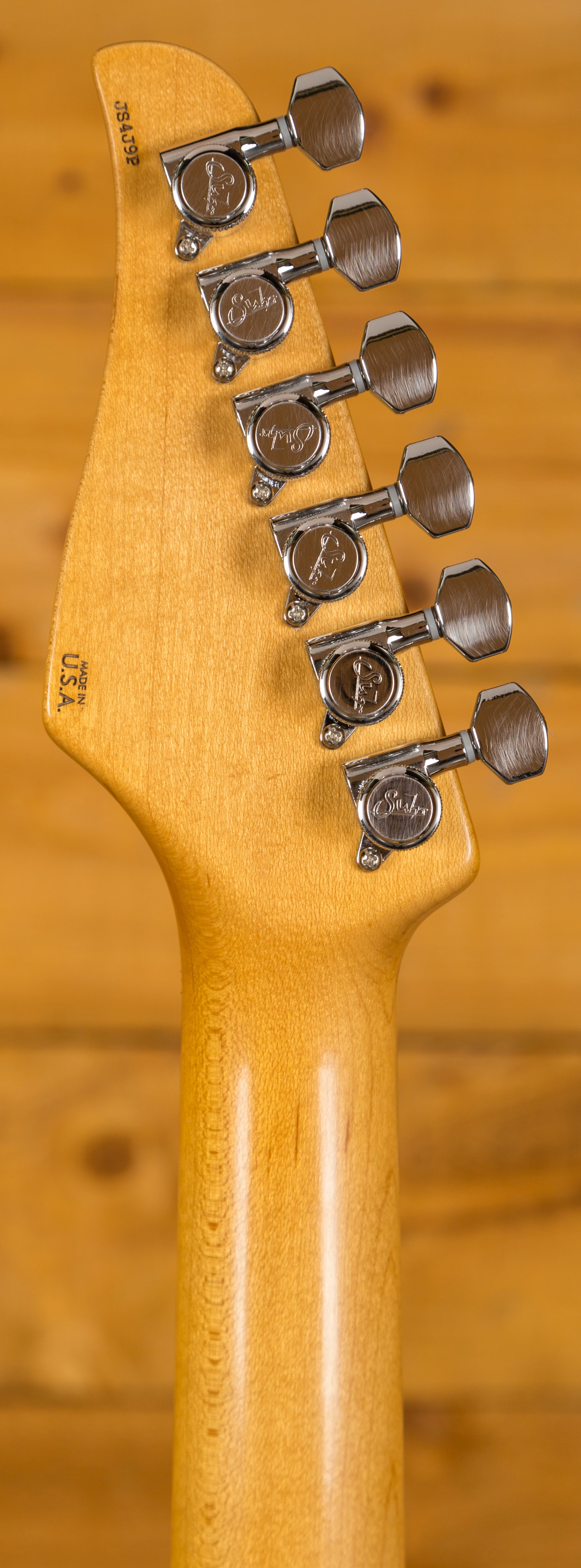 These guitars feature all the vintage elements we love but back it up with super stable and reliable modern-day benefits. Each Suhr is crafted to replicate these unique finishes, by coating the 3 Tone Sunburst with a thin layer of nitrocellulose lacquer and then carefully ageing, you can see the distinctive Sunburst finishes through the tasty relic'd Surf Green.