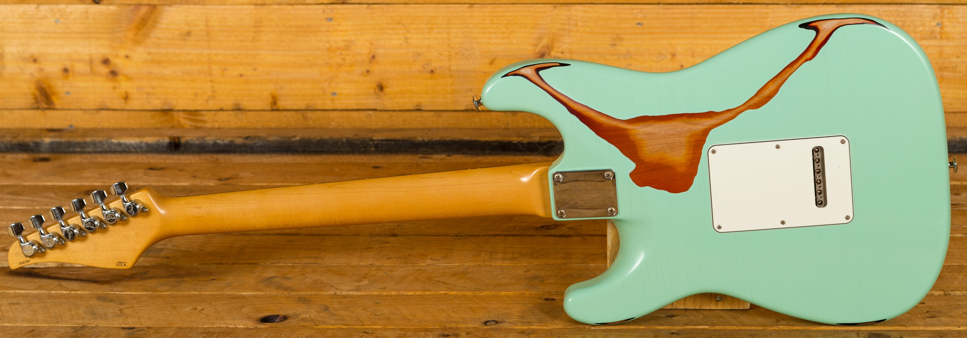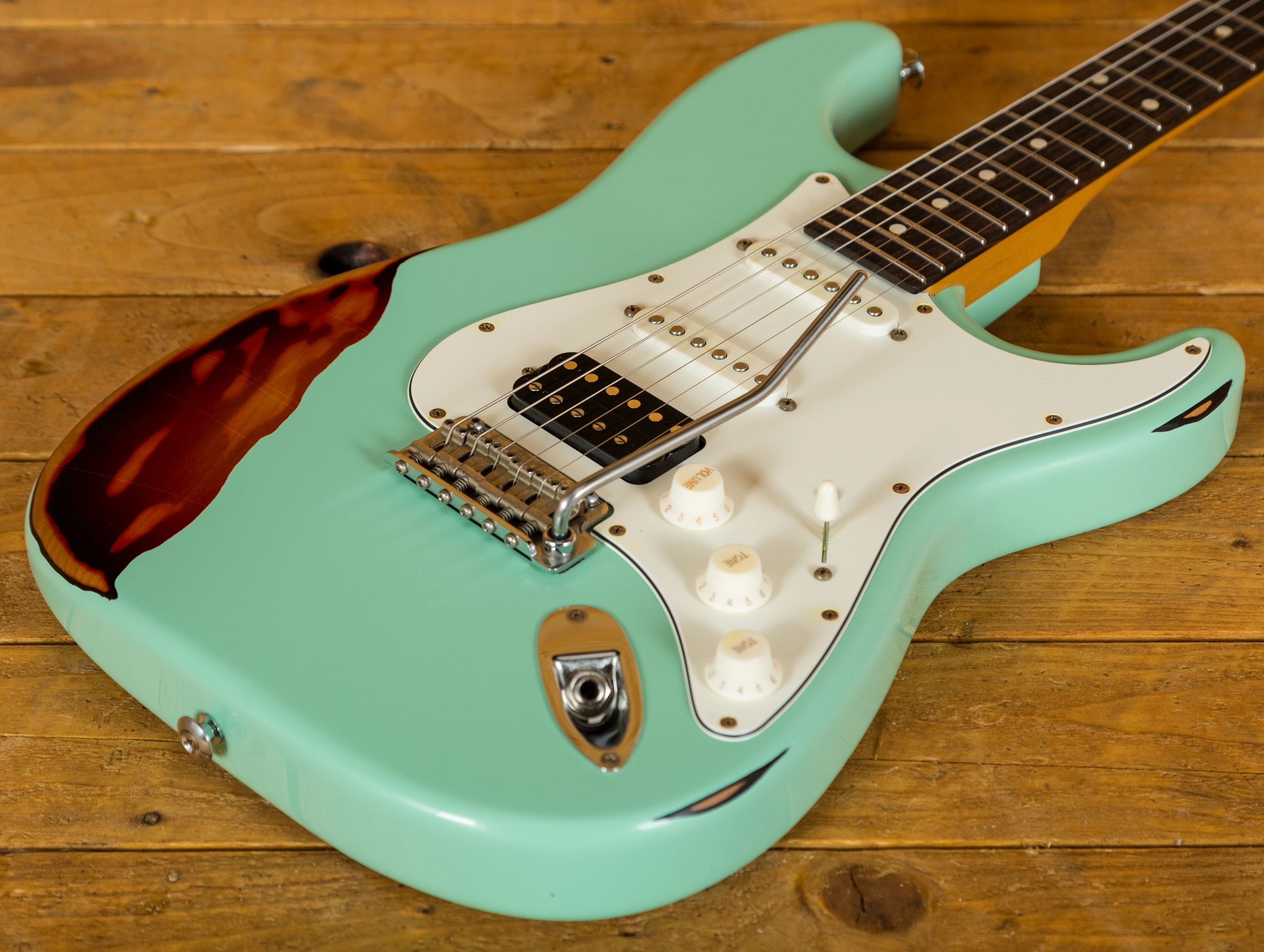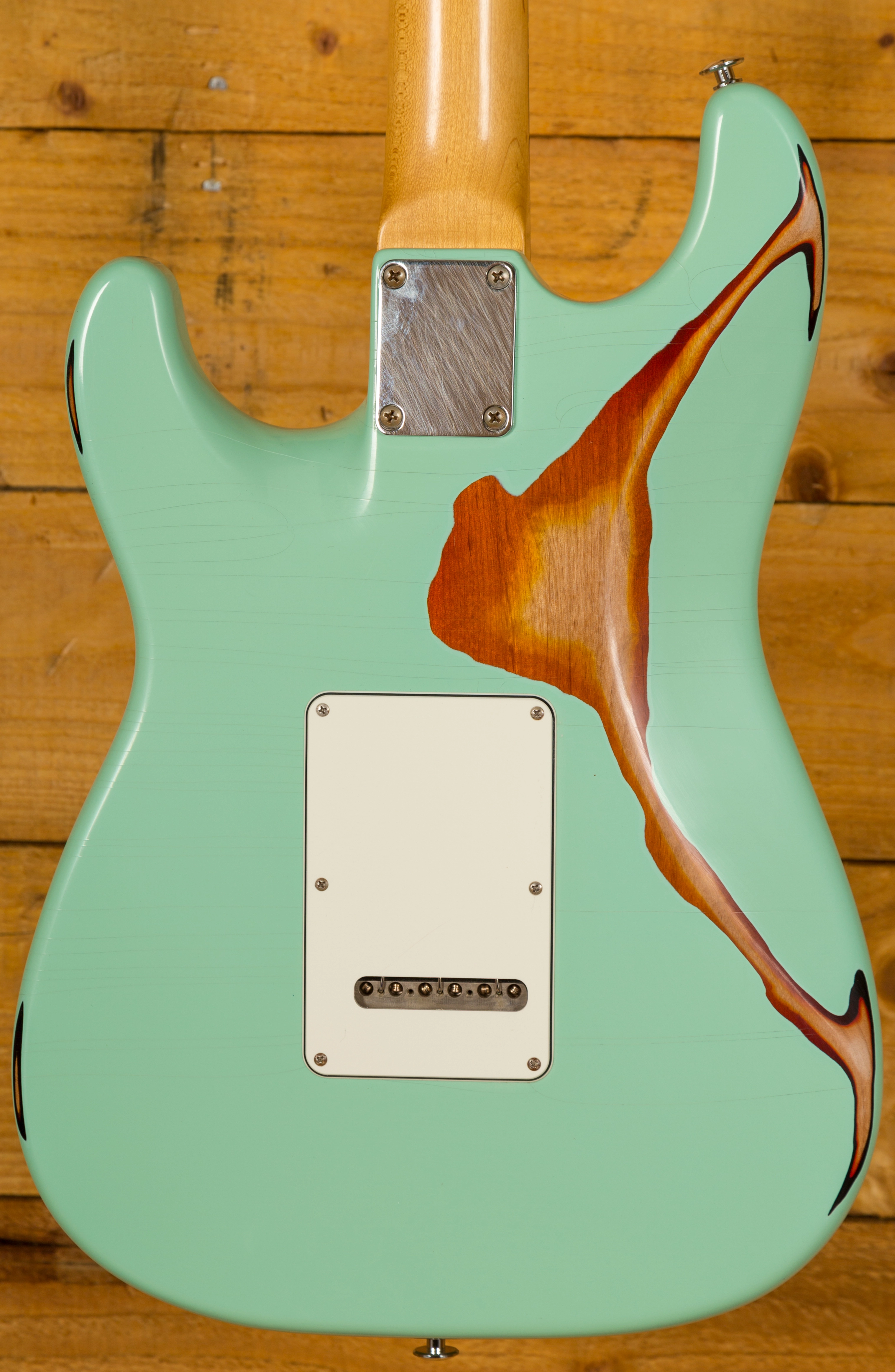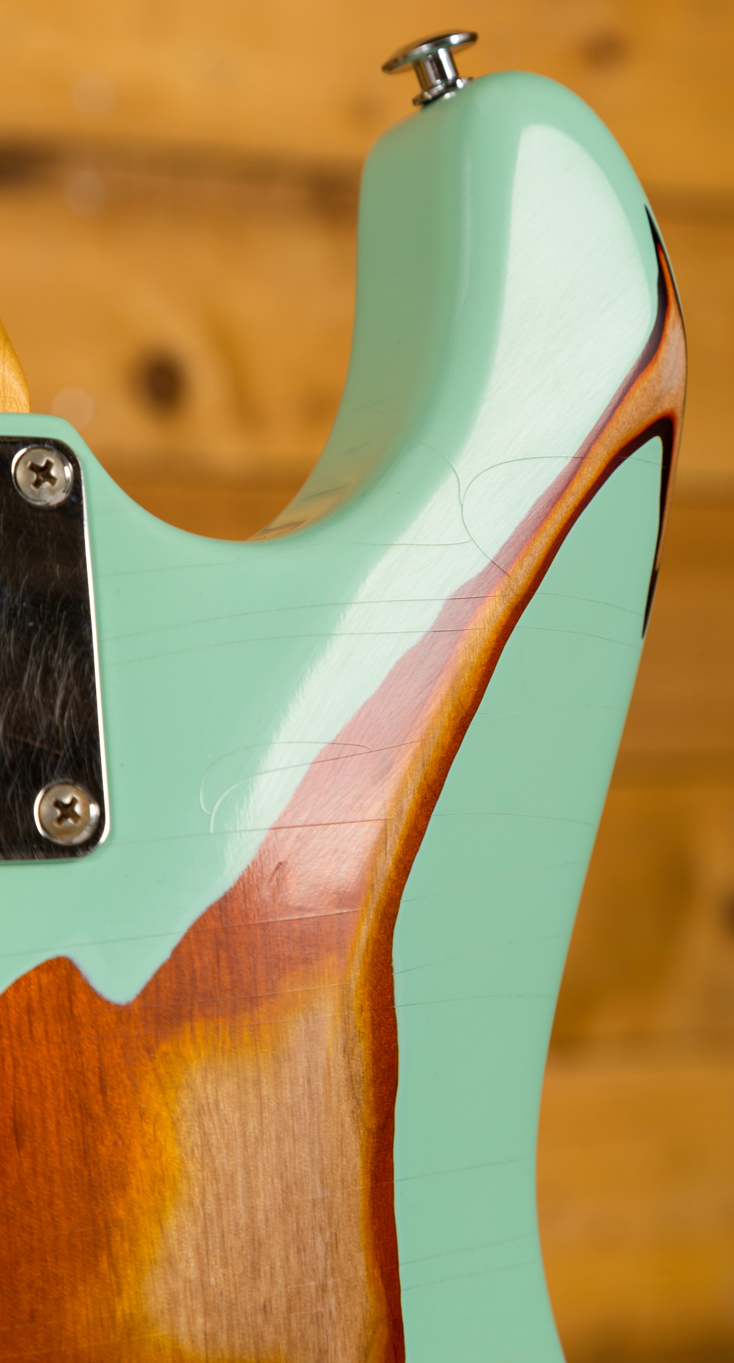 These guitars feature all the vintage elements we love but back it up with super stable and reliable modern-day benefits. Each Suhr is crafted to replicate these unique finishes, by coating the 3 Tone Sunburst with a thin layer of nitrocellulose lacquer and then carefully ageing, you can see the distinctive Sunburst finishes through the tasty relic'd Surf Green.