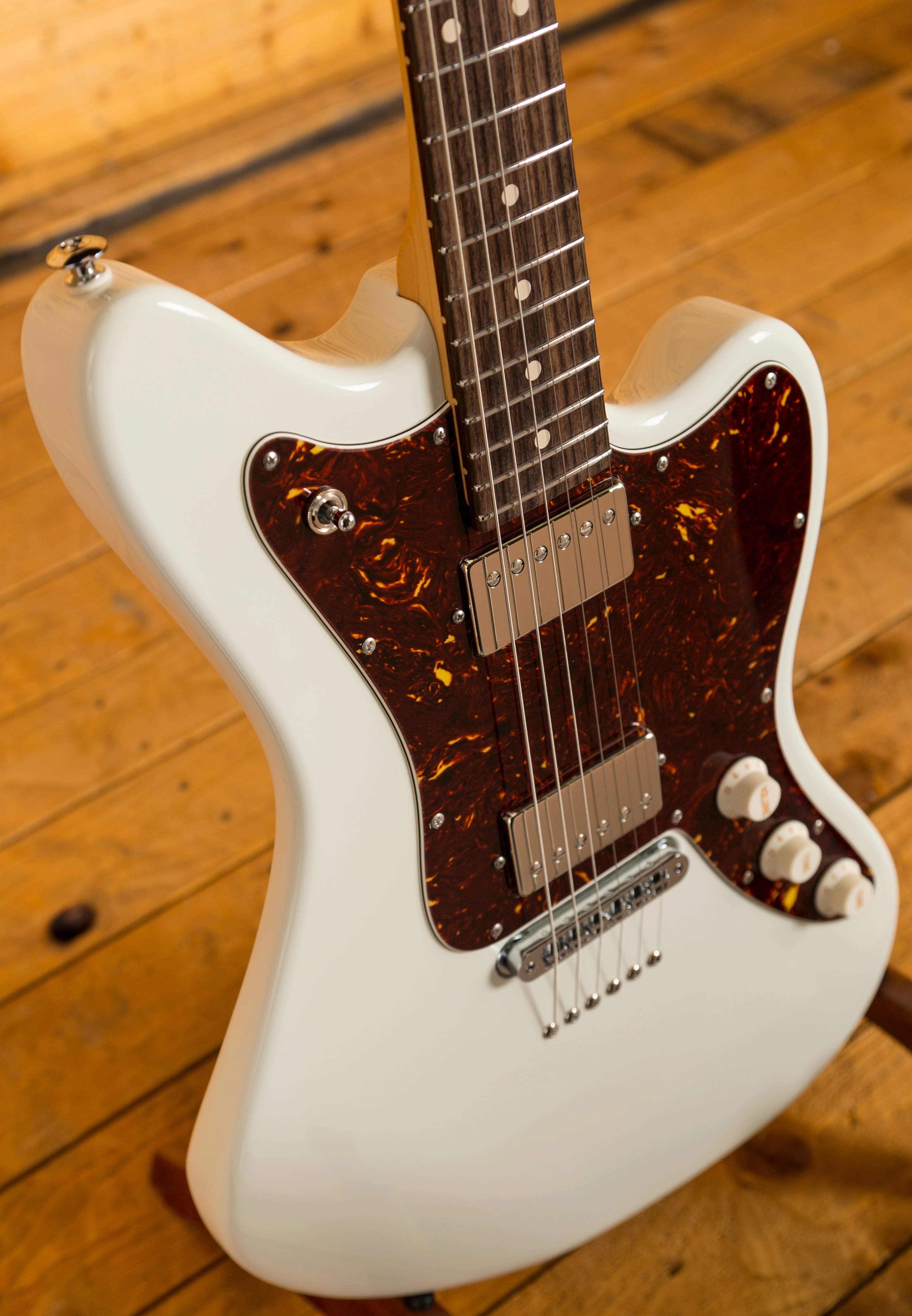 An Alder body in a crisp Olympic White, offers a clear, super resonant sound while the quarter-sawn Maple neck is finished in satin urethane which feels smooth and natural while still offering protection from moisture. The '60s C Vintage Standard neck profile compliments the design and features a beautiful Indian Rosewood fingerboard.