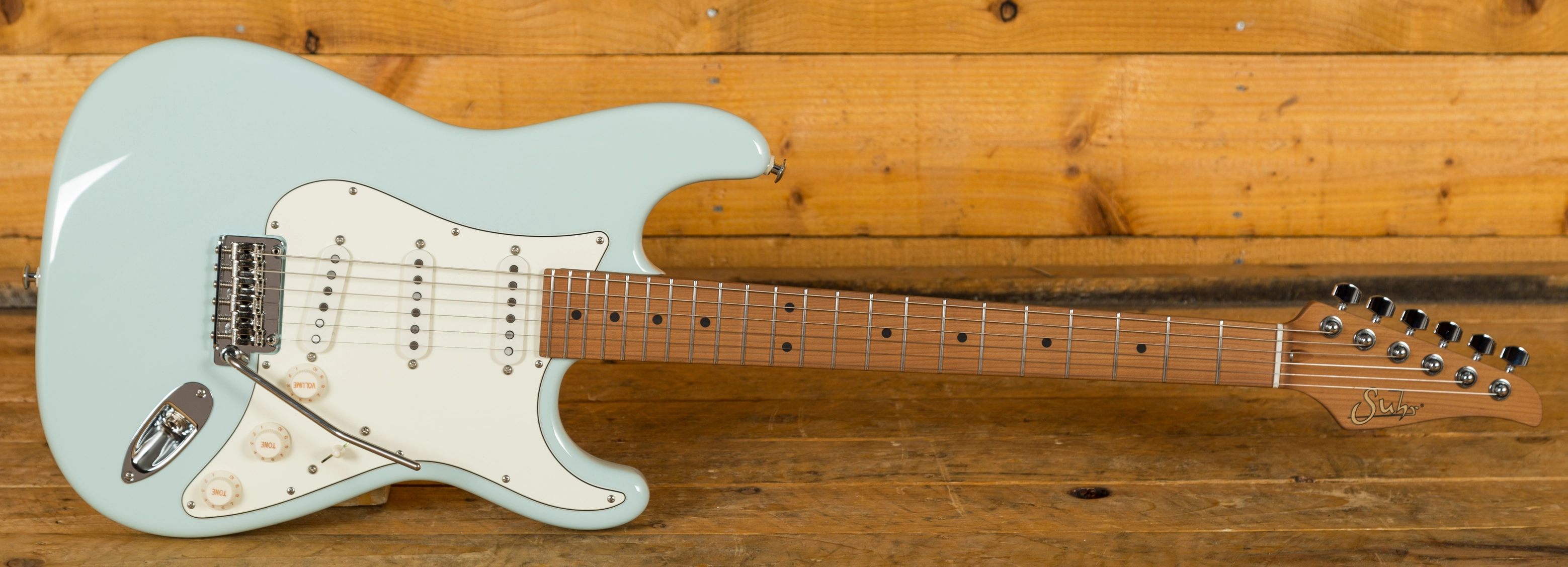 The Classic Pro range from Suhr has long been hailed as one of the best Strat alternatives around, with modern build techniques and a hint of vintage mojo they never compromise on playability and tone. With an Alder body they offer a strong, full bodied tone with great lows and chunky mids, it's a real tonewood favourite. Finished in Sonic Blue, Suhr's finishing process provides the ultimate mix of protection and clinical appearance without stifling the natural tone of the wood.