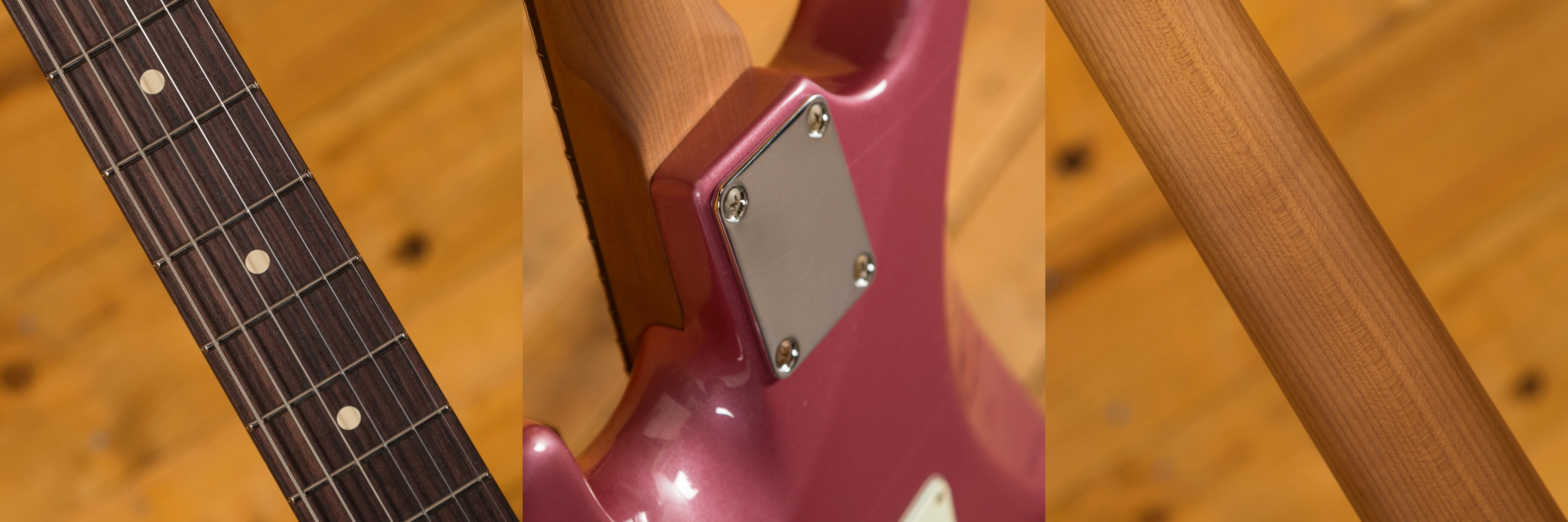 The Roasted Maple neck has a satin finish for a smooth, slick feel. With a C vintage medium profile, rolled frets, a compound 9''-12'' radius and an Indian Rosewood fingerboard this a substantial but real comfortable guitar.