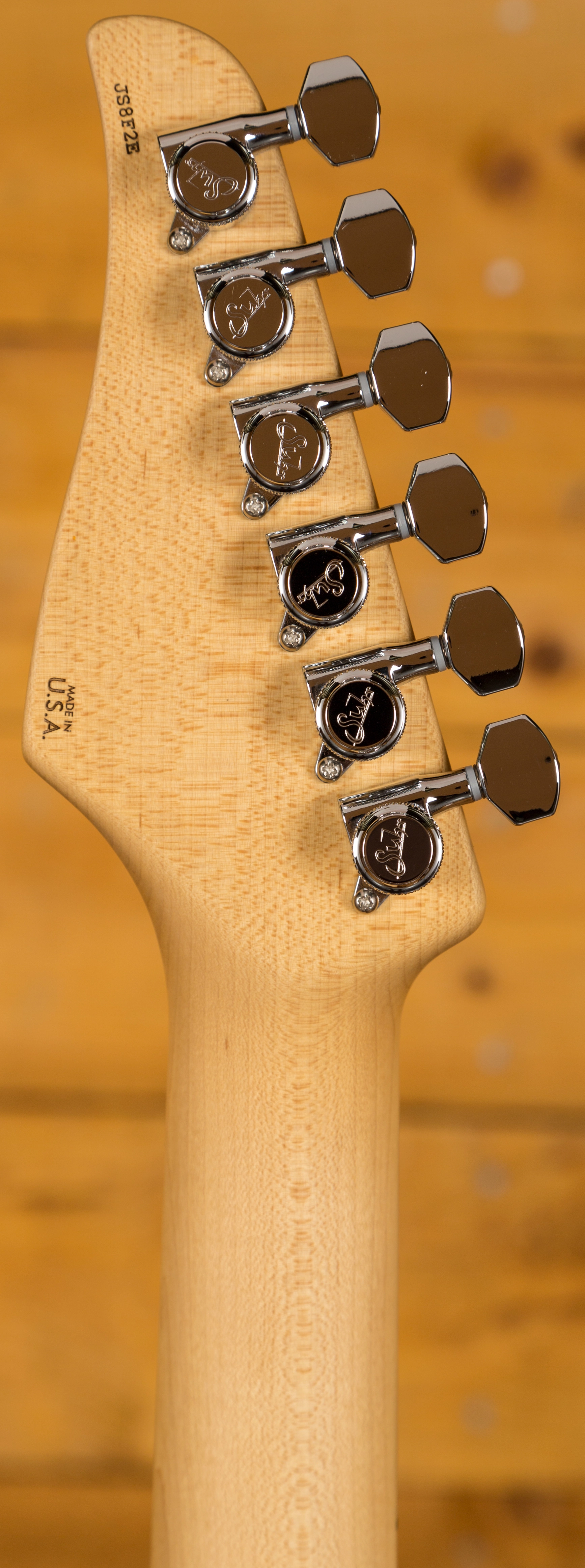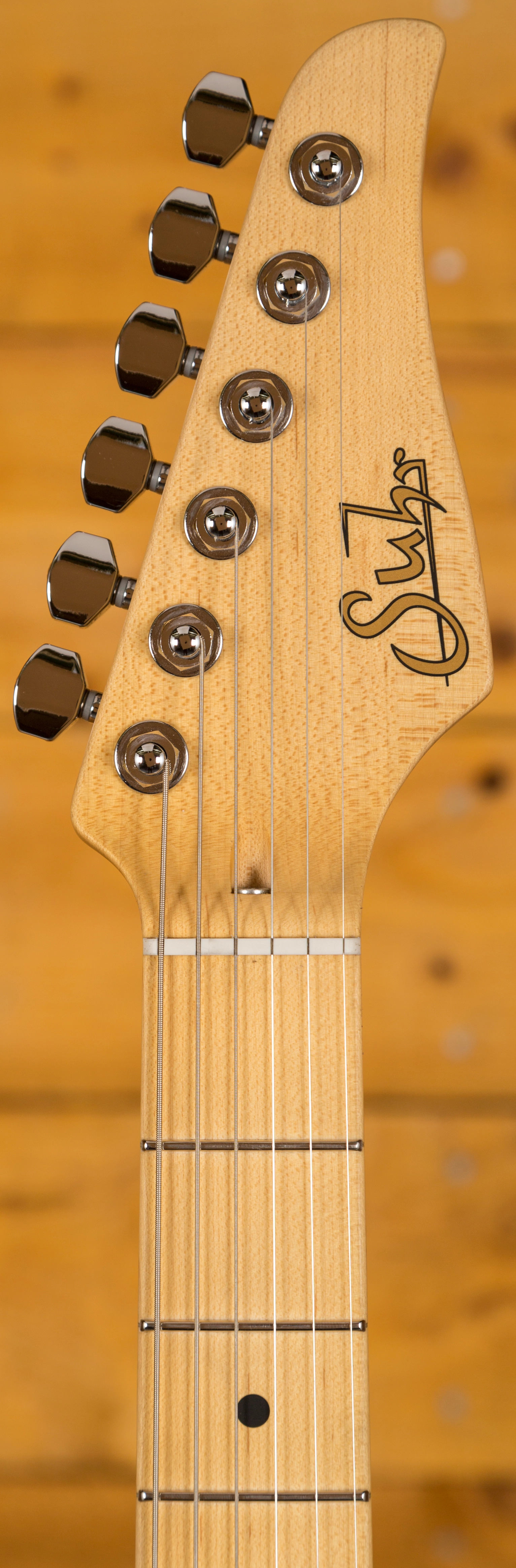 Benefitting from a pair of Classic T pickups it replicates those famous Tele tones, rich, punchy and ready to growl, it's a versatile and adaptable set up which is boosted by the Suhr SSCII, a completely transparent noise reduction system. Installed inside the body, it reduces 60 cycle hum and has no effect on tone, it just helps keep those crystal clear tones ringing!