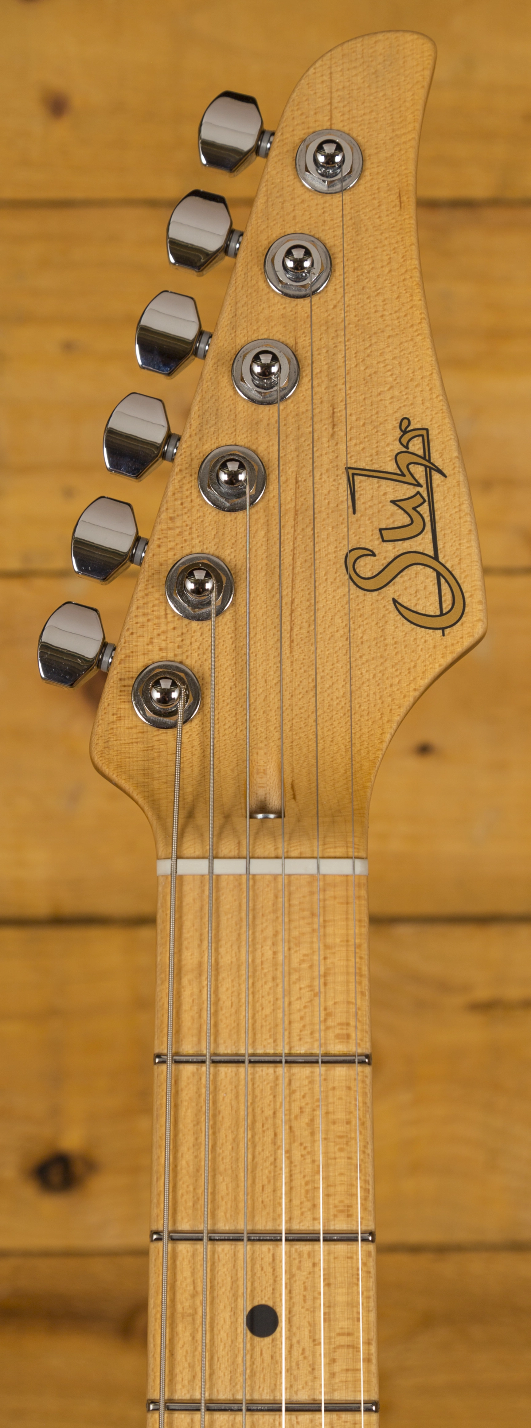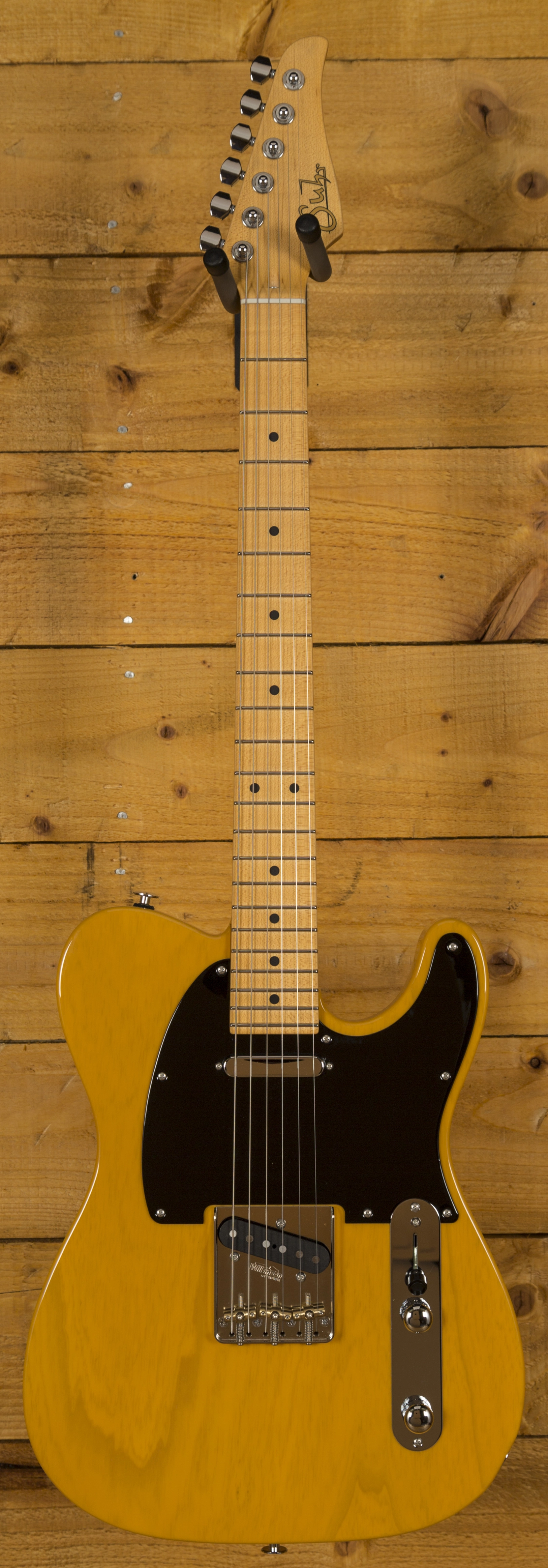 Benefitting from Classic T pickups it replicates those famous Tele tones, rich, punchy and ready to growl. It's a versatile and adaptable set up boosted by the Suhr SSCII, a completely transparent noise reduction system. Installed inside the body, it reduces 60 cycle hum and has no effect on tone, it just helps keep those crystal clear tones ringing!