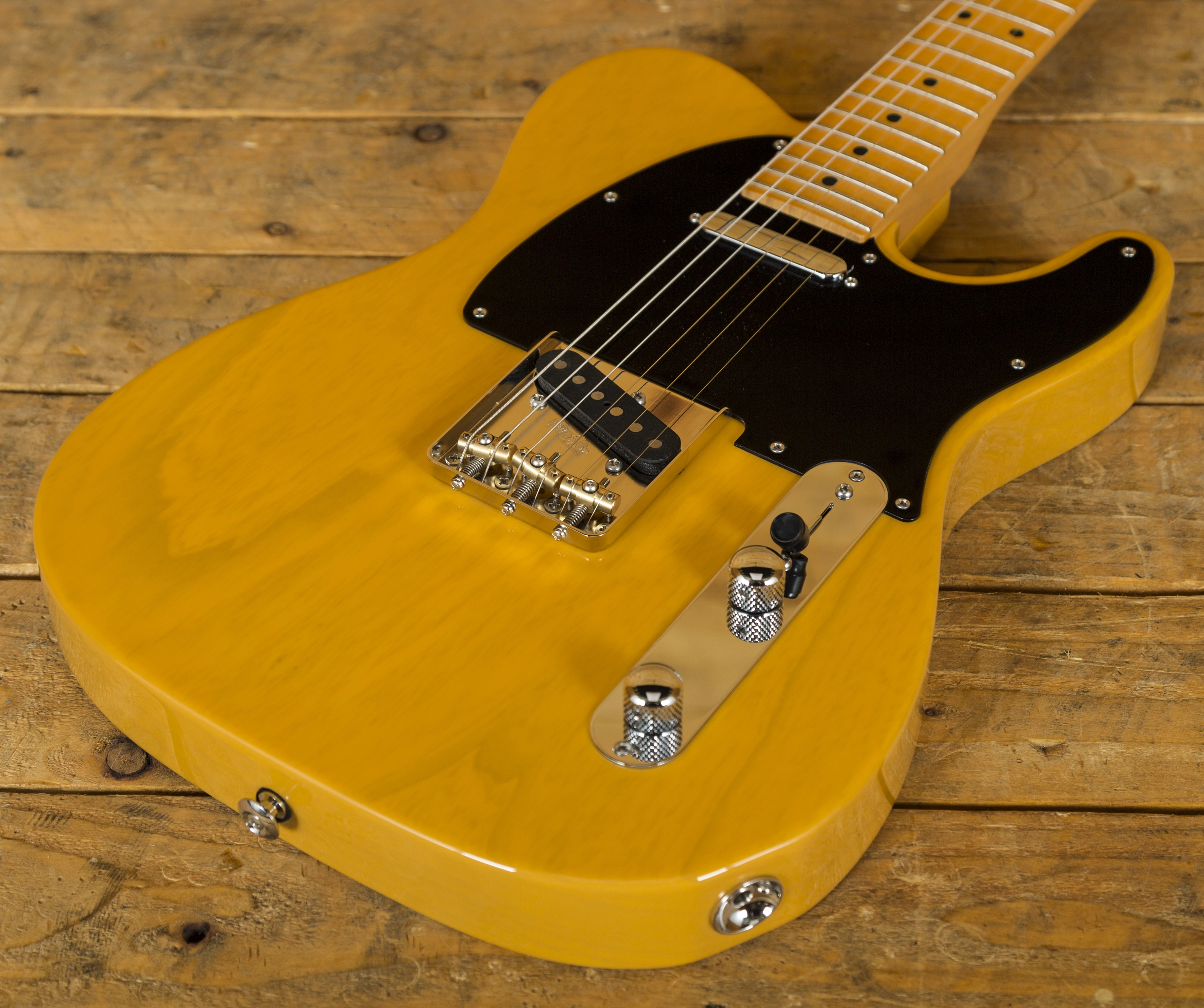 These guitars feature all the vintage elements we all love but back it up with super stable and reliable modern-day benefits. Unlike the ever-popular Classic T Antique, the Pro does not feature the aged finish. Instead boasting an immaculate, protective and tone considerate Gloss finish over a Swamp Ash body, this one in a crisp Trans Butterscotch.