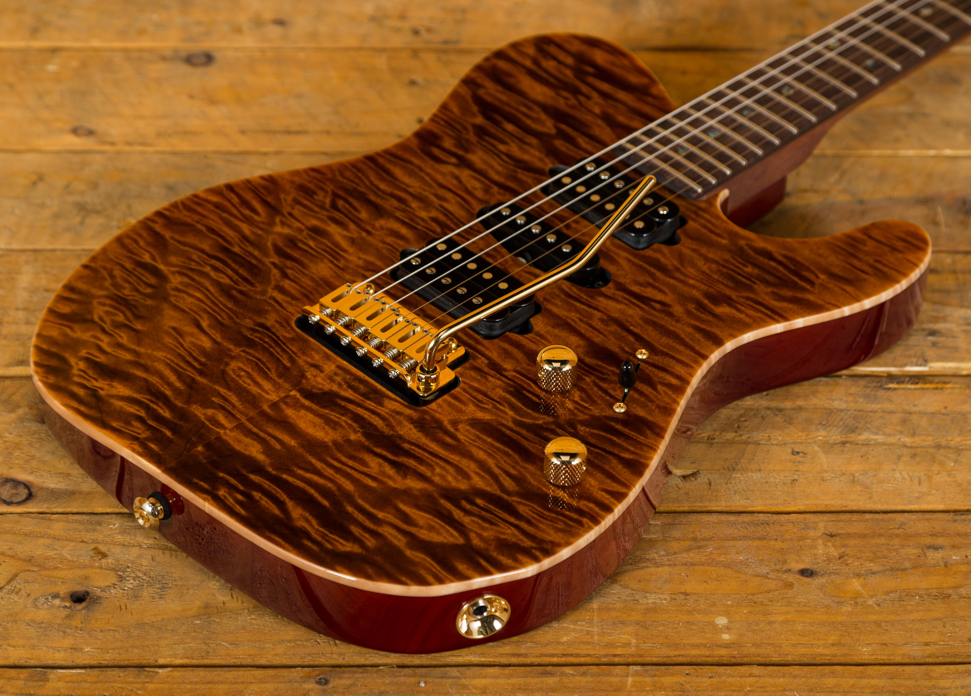 Taking the Classic T and powering through into new realms of tonal excellence, Suhr have delivered big with this one! With a Mahogany body and a hand selected quilted Maple top, it benefits from the classic tonewood partnership. With a really distinctive look and detailed tonal response, this Custom Classic T is a real winner.
