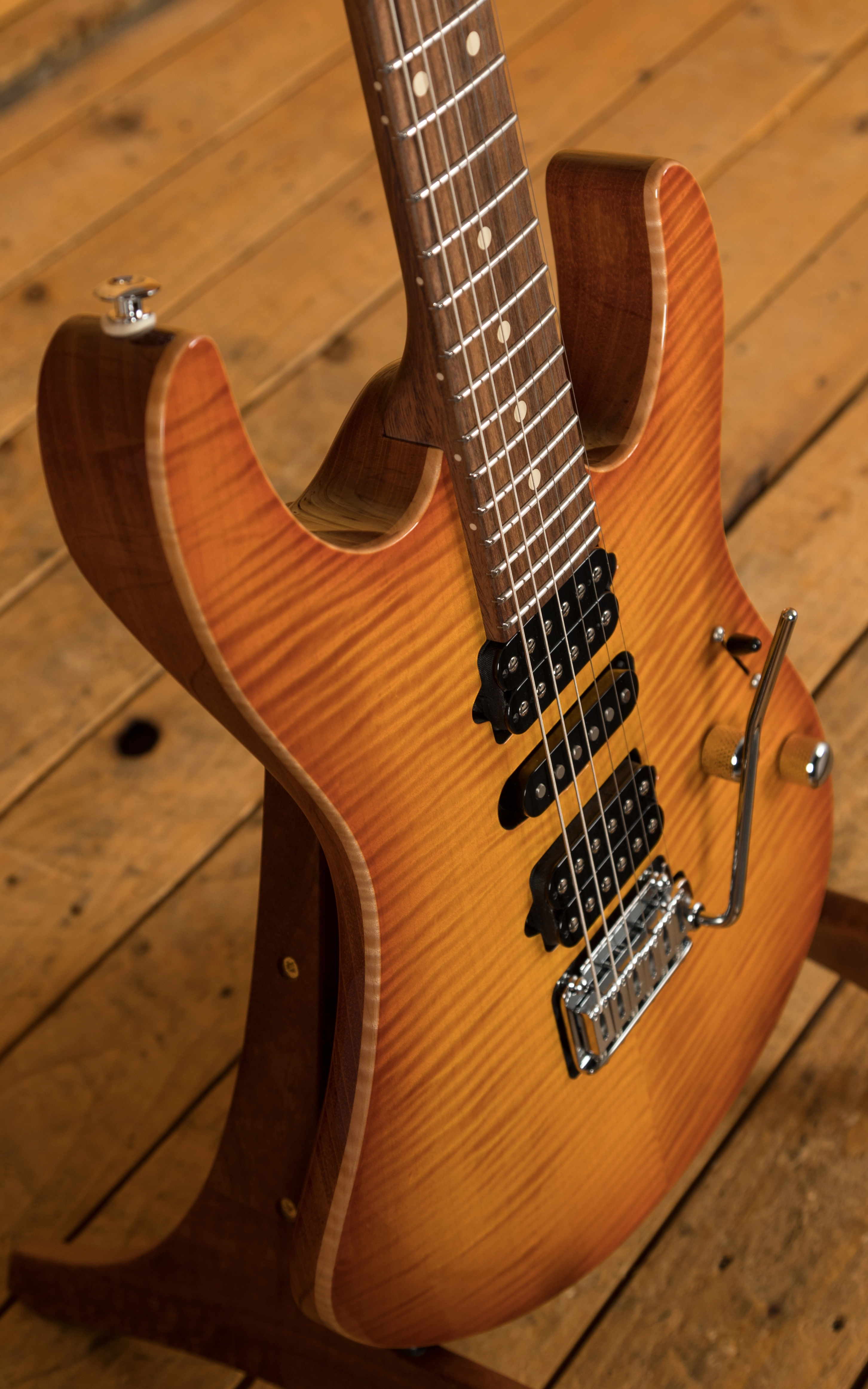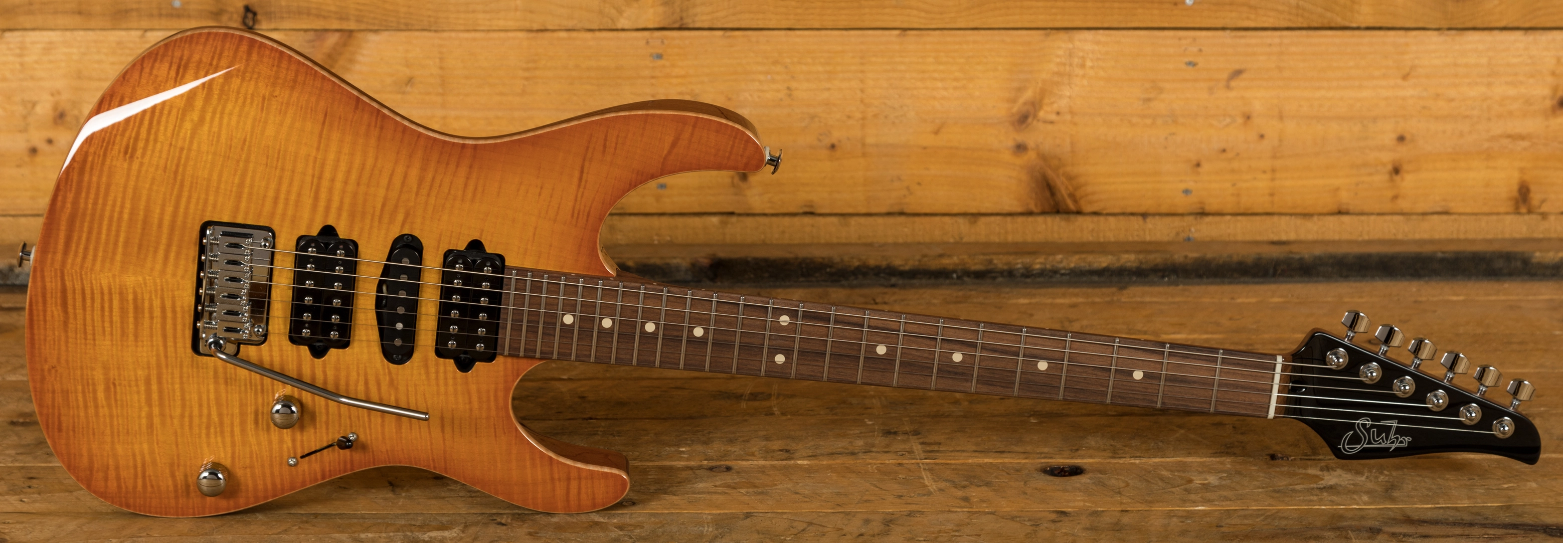 The Suhr Custom Modern in Trans Amber Burst is another great example of the continued high-quality work from Suhr.