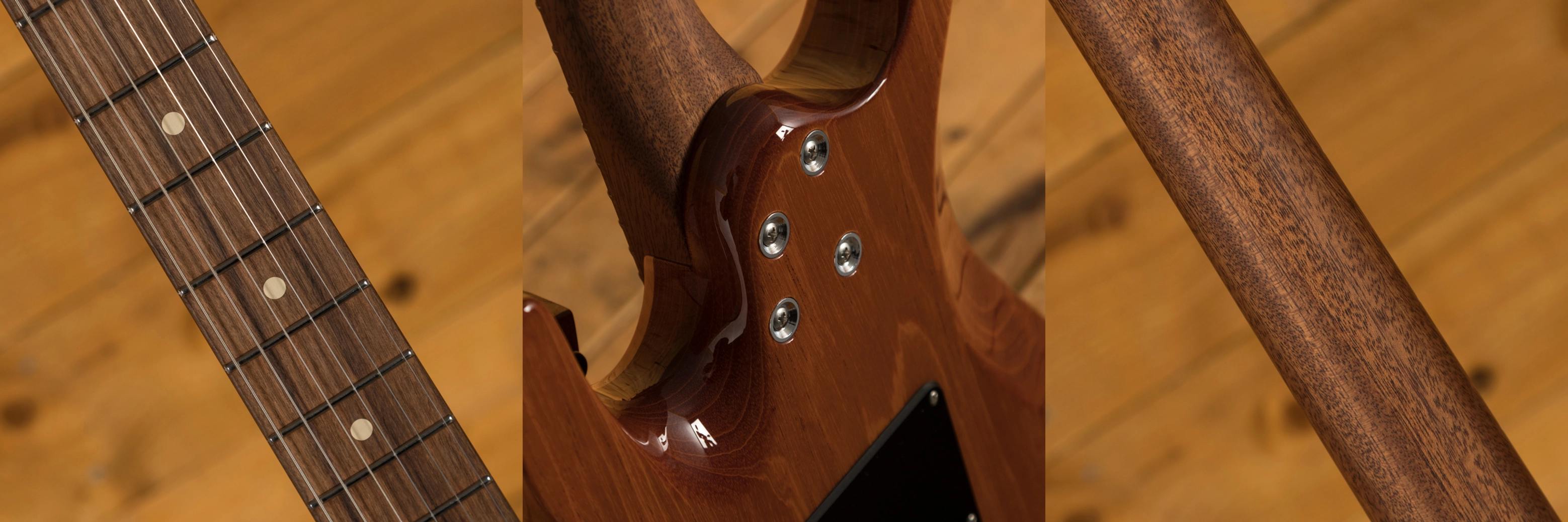 With a Khaya neck and Pau Ferro fingerboard, the Modern benefits from Suhr's Modern Elliptical neck profile. With rolled edges and a 10- 14" fingerboard radius it offers an extremely comfortable shape. The Jumbo stainless steel frets offer great string bending potential and long lasting playability while the sculpted heel allows for great access right up the neck.