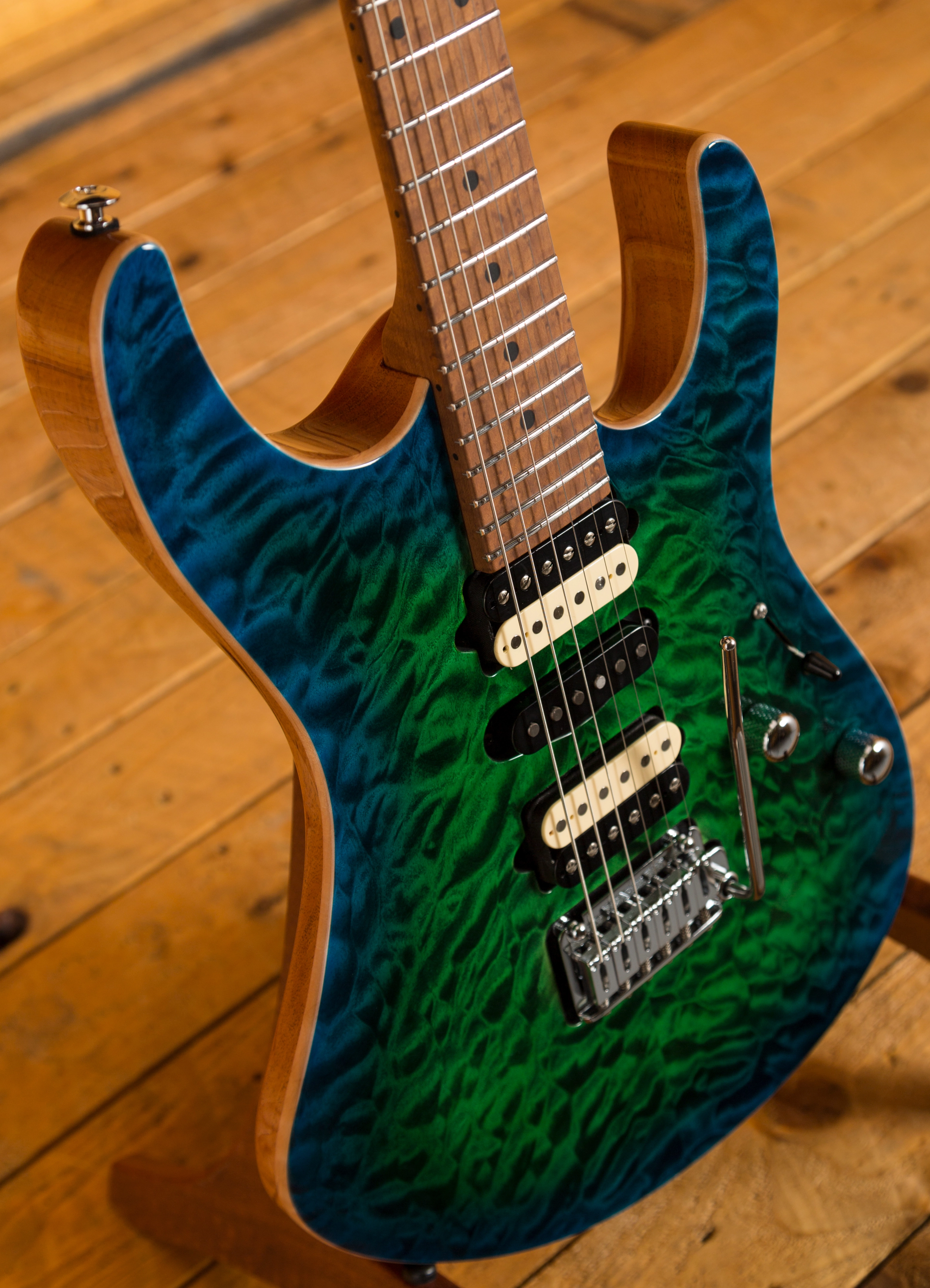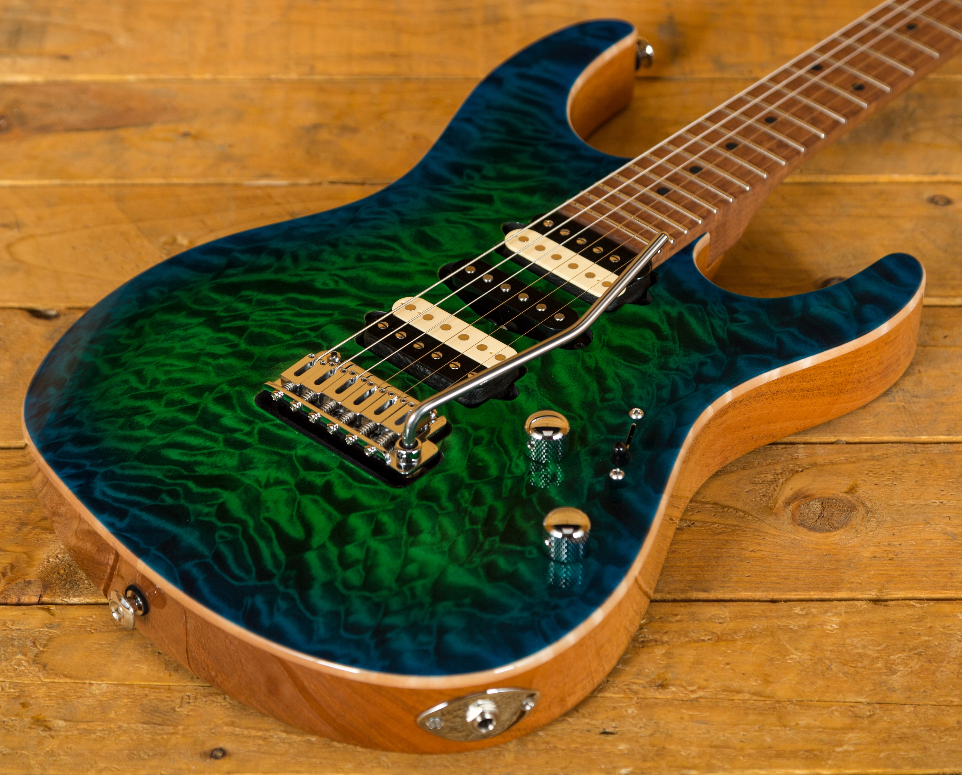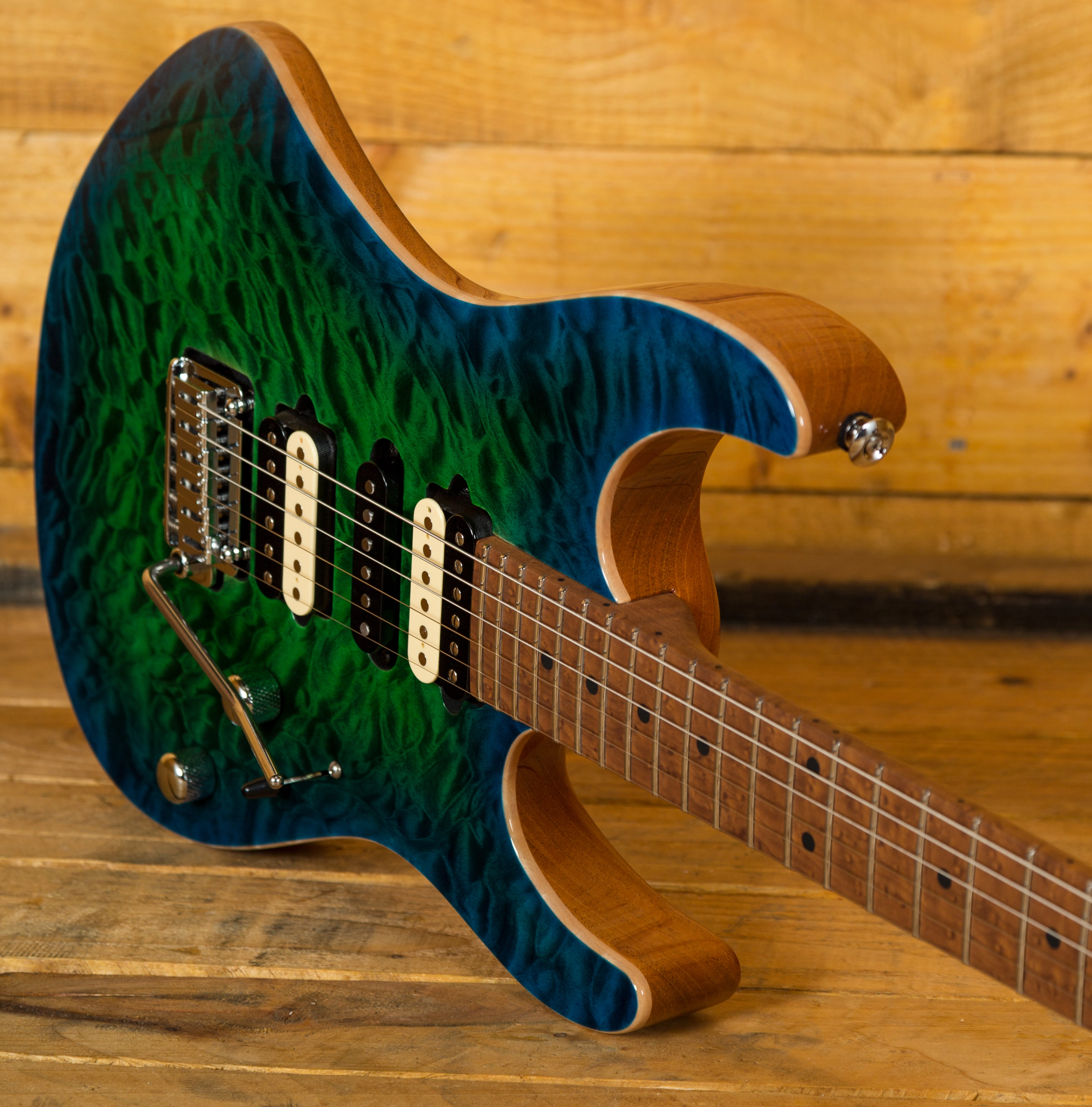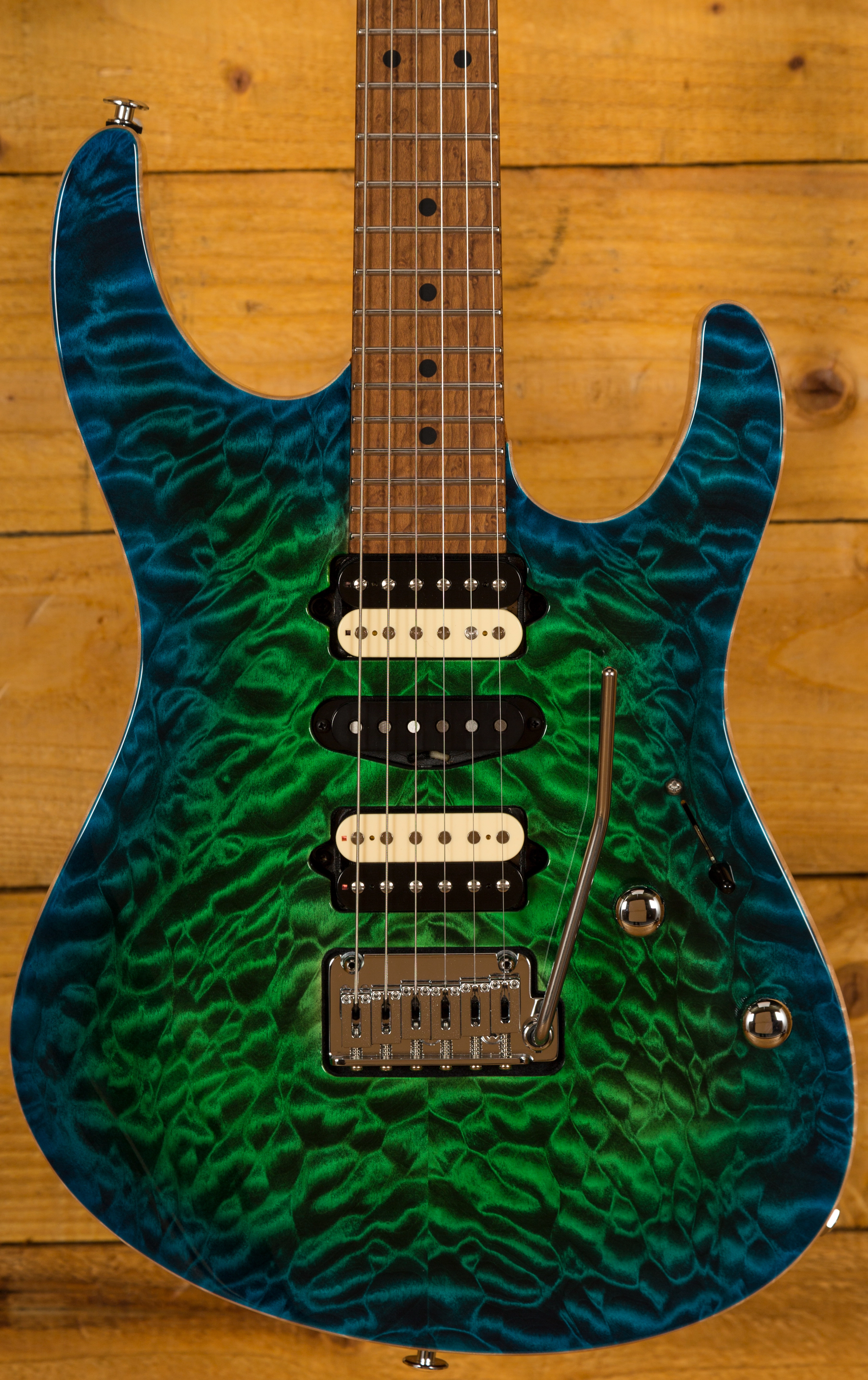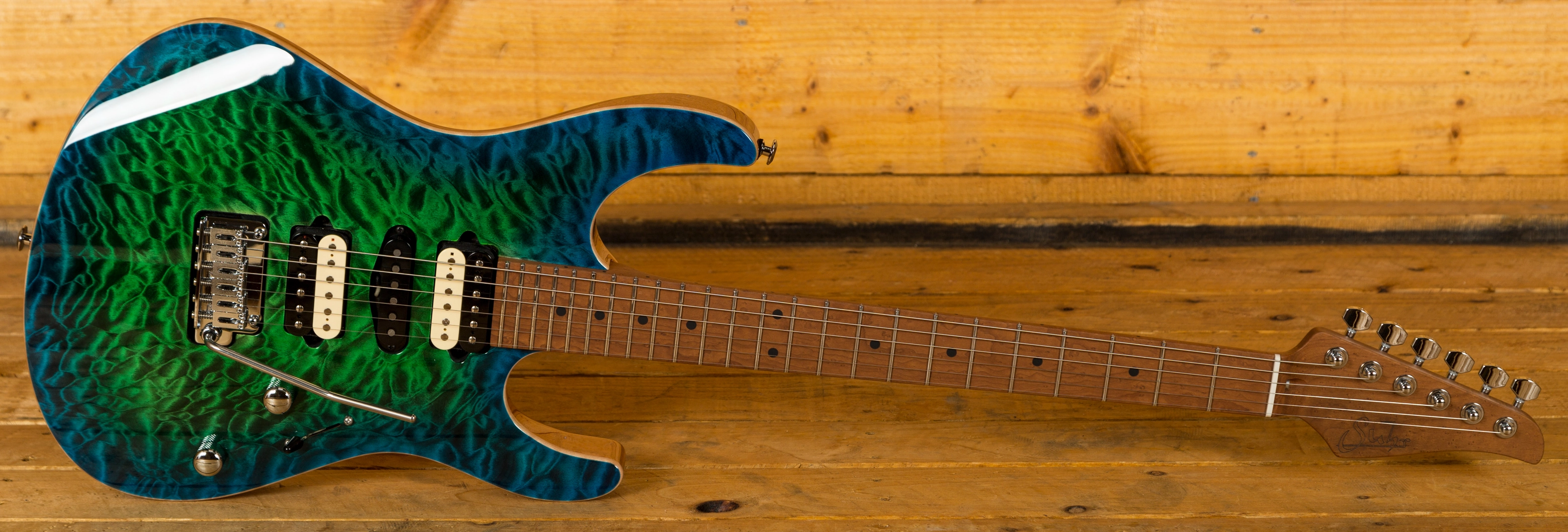 A beautifully resonant Mahogany body is capped with a stunning quilted Maple top and finished in Suhr's equally stunning Custom Green Blue gloss. With subtle contouring this guitar is supremely comfortable and perfectly balanced, great at home, on stage or in the studio.