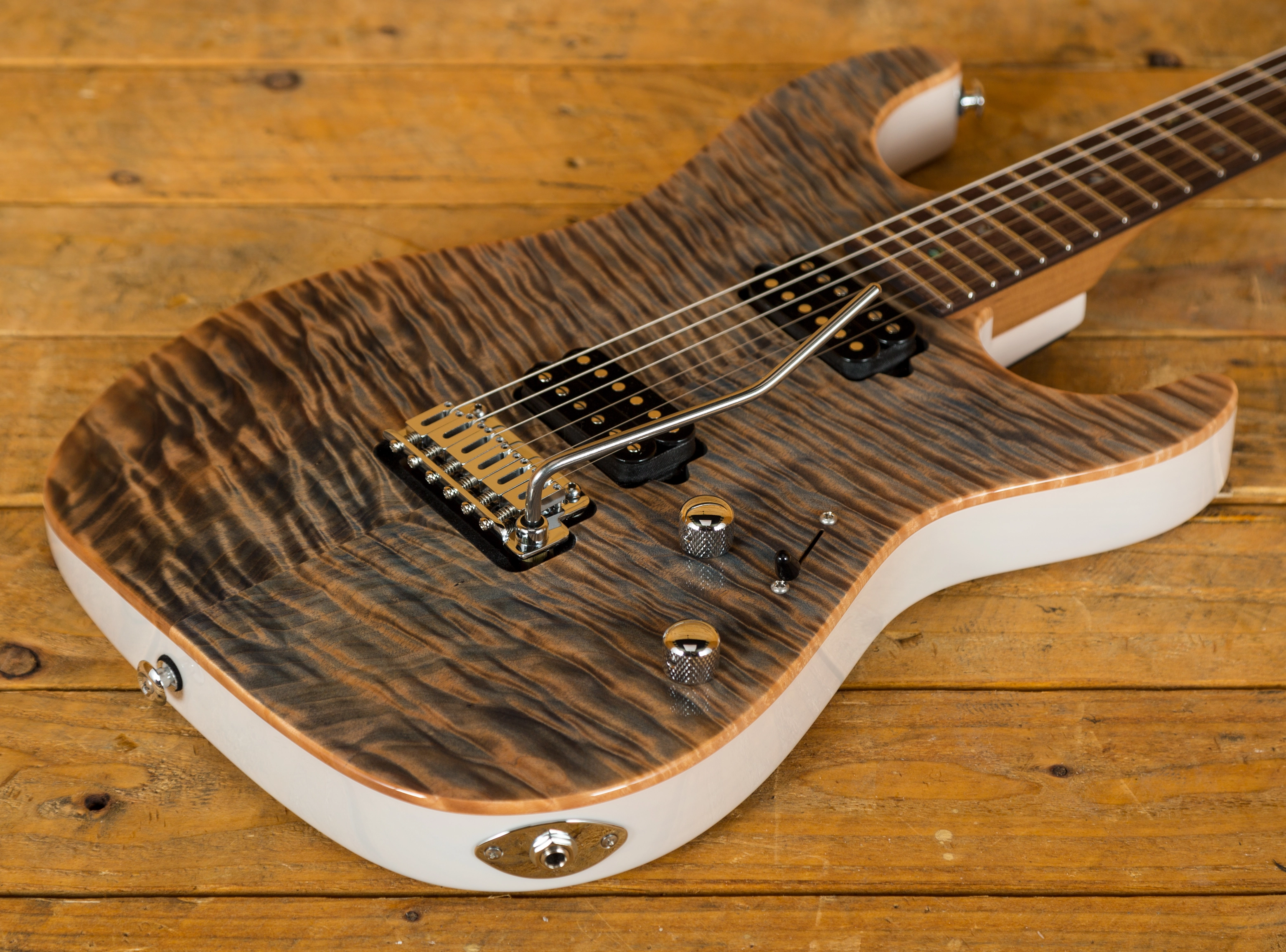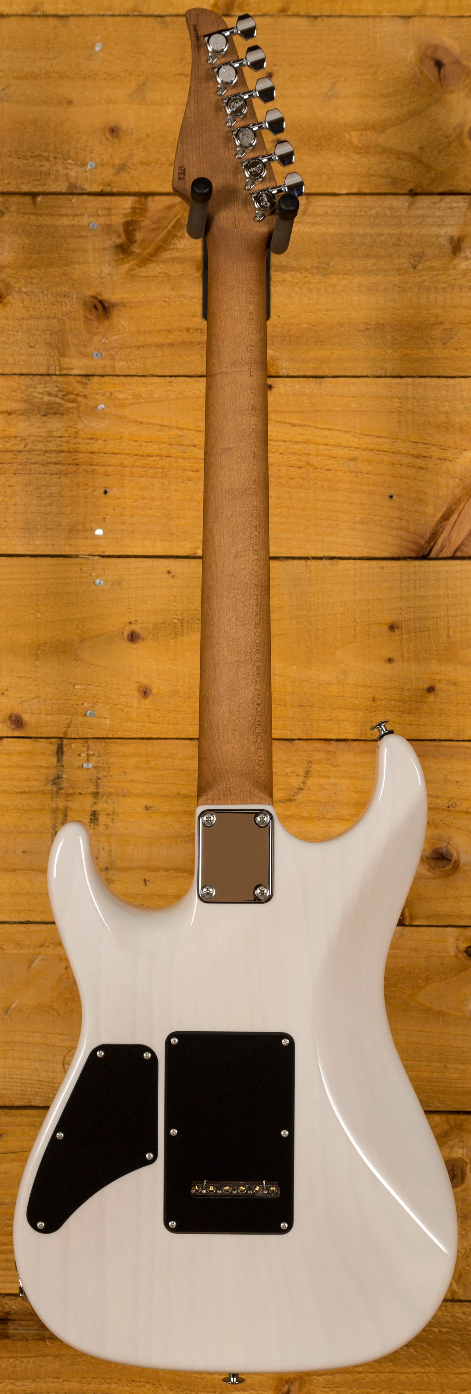 With a Swamp Ash body and a lush Flame Maple top, its tonally superior, light weight and beautifully poised for action. With a really cool Trans White back this guitar has a really distinctive look and is supremely comfortable. It handles just about any playing style without breaking a sweat.
