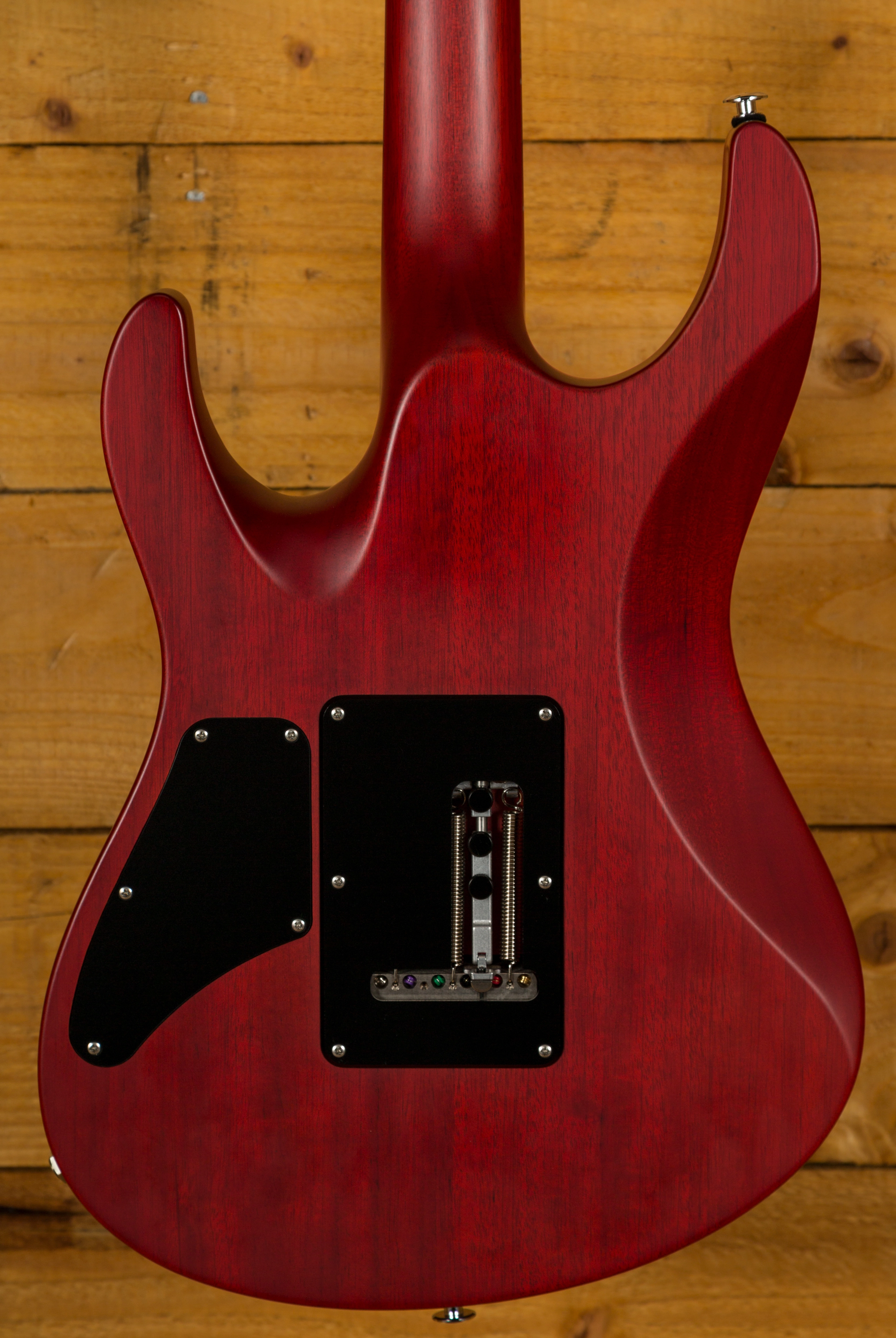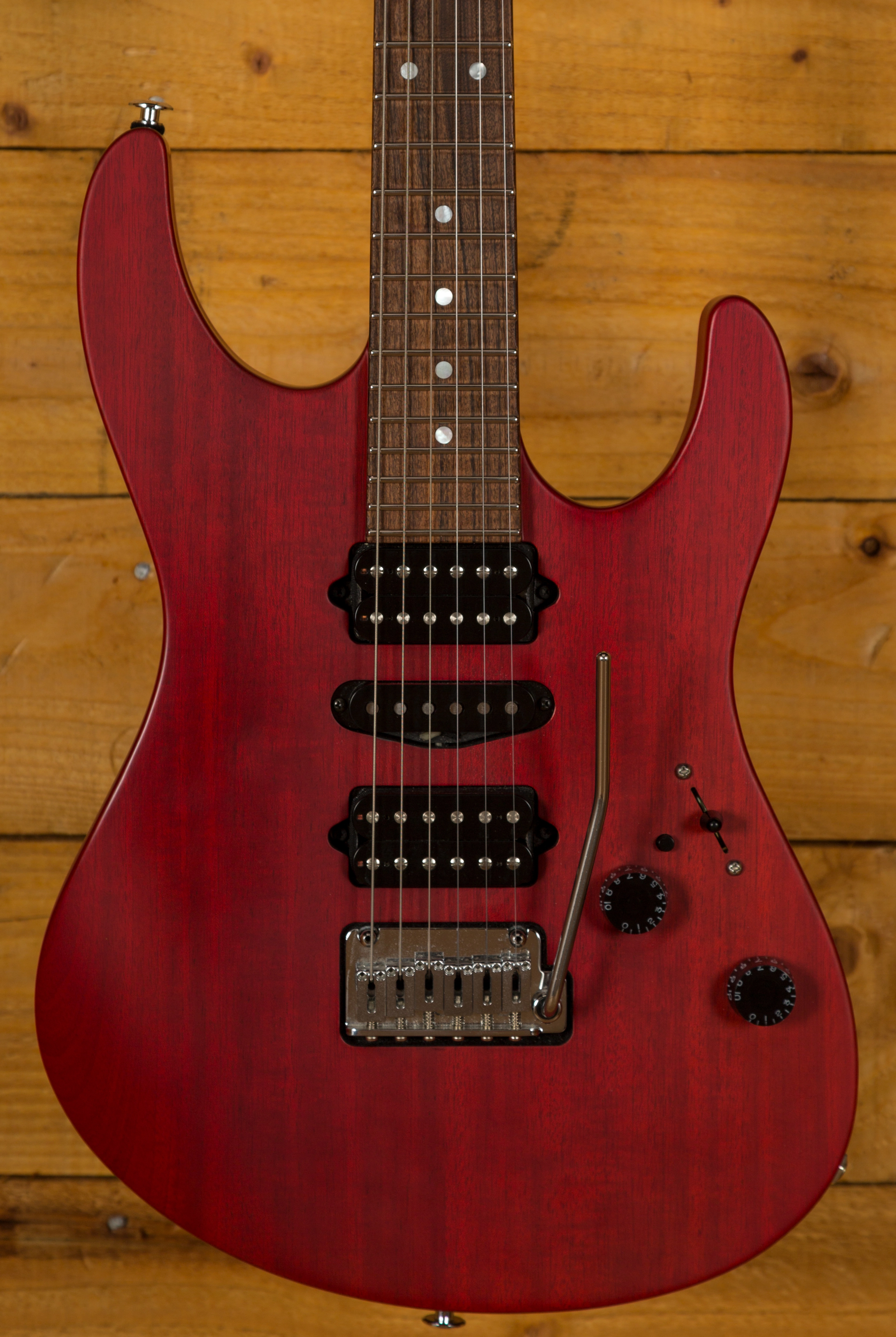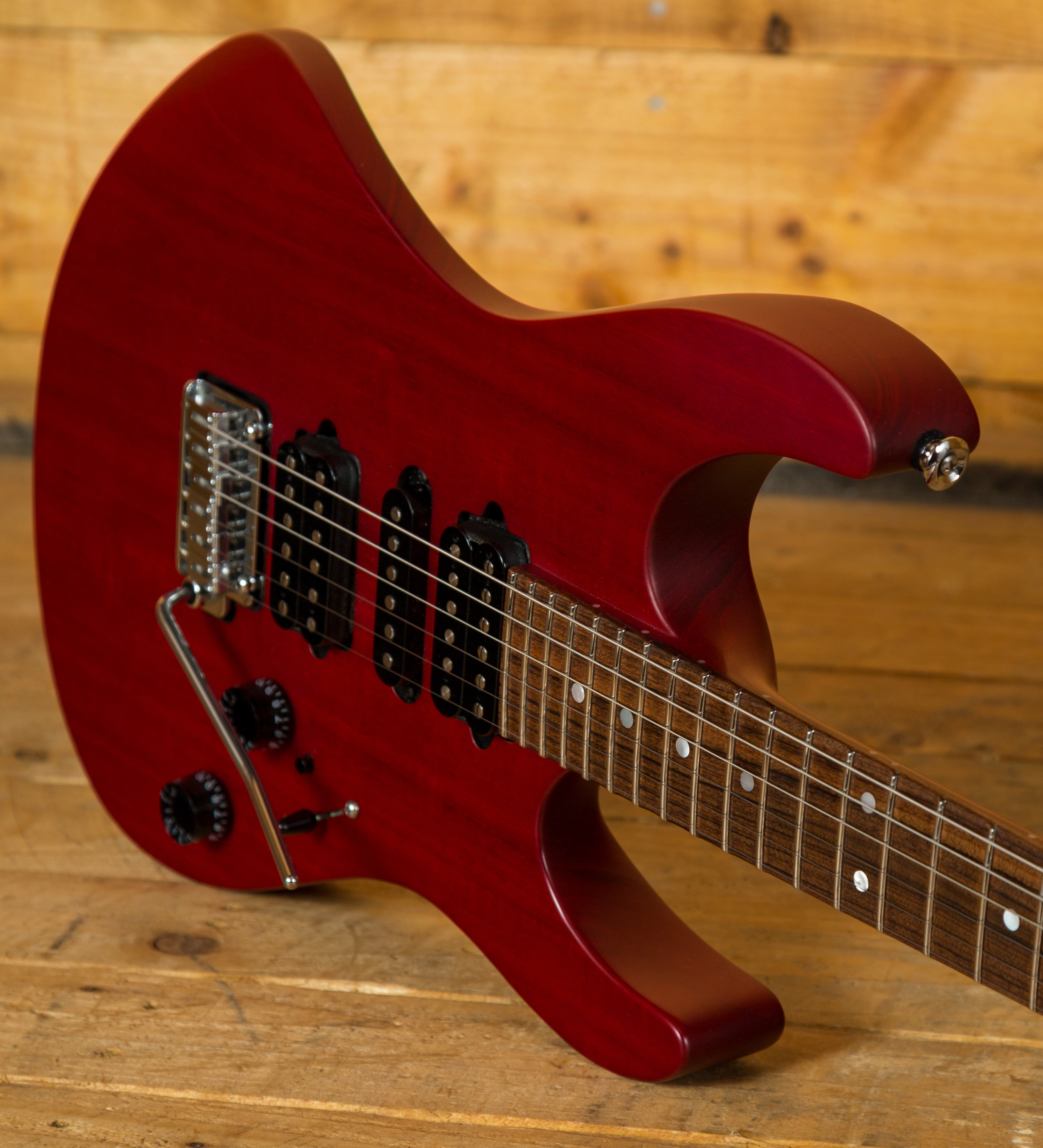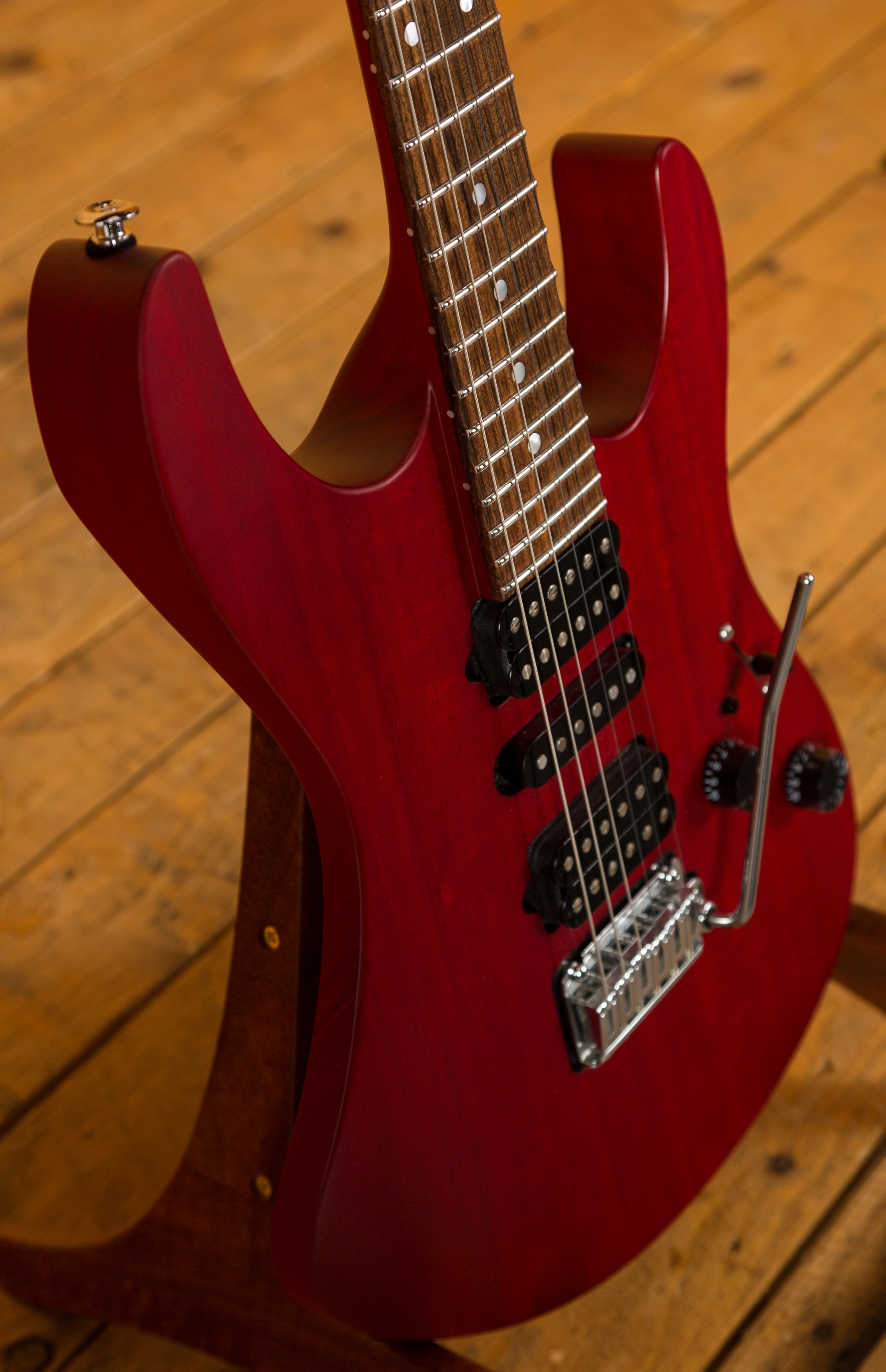 With a Mahogany body, finished in Trans Cherry, it's supremely resonant and dynamic this guitar is really well balanced. The Mahogany neck features a Pau Ferro fingerboard, 24 frets, a 16" radius and a modern elliptical profile. It's smooth, fast and a great platform for both heavy chordal work and slick, rapid lead lines.