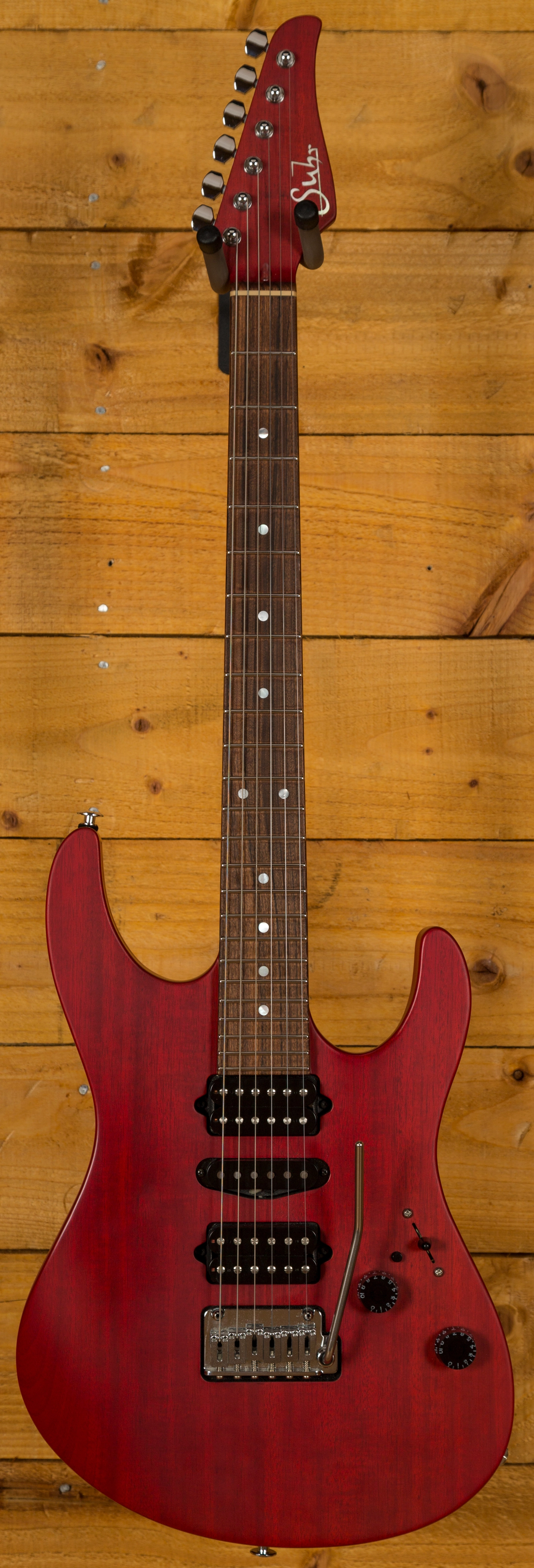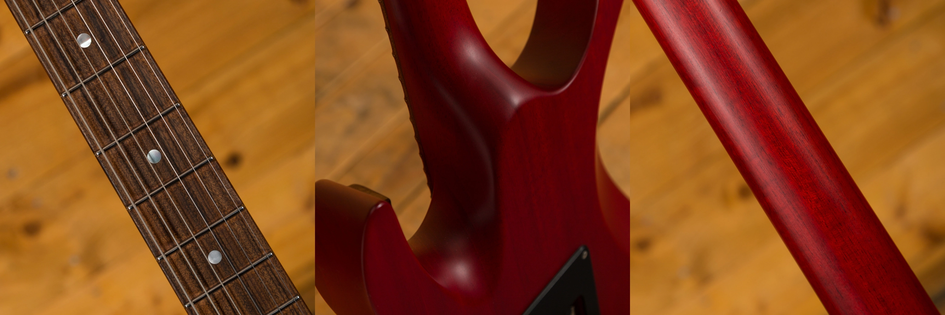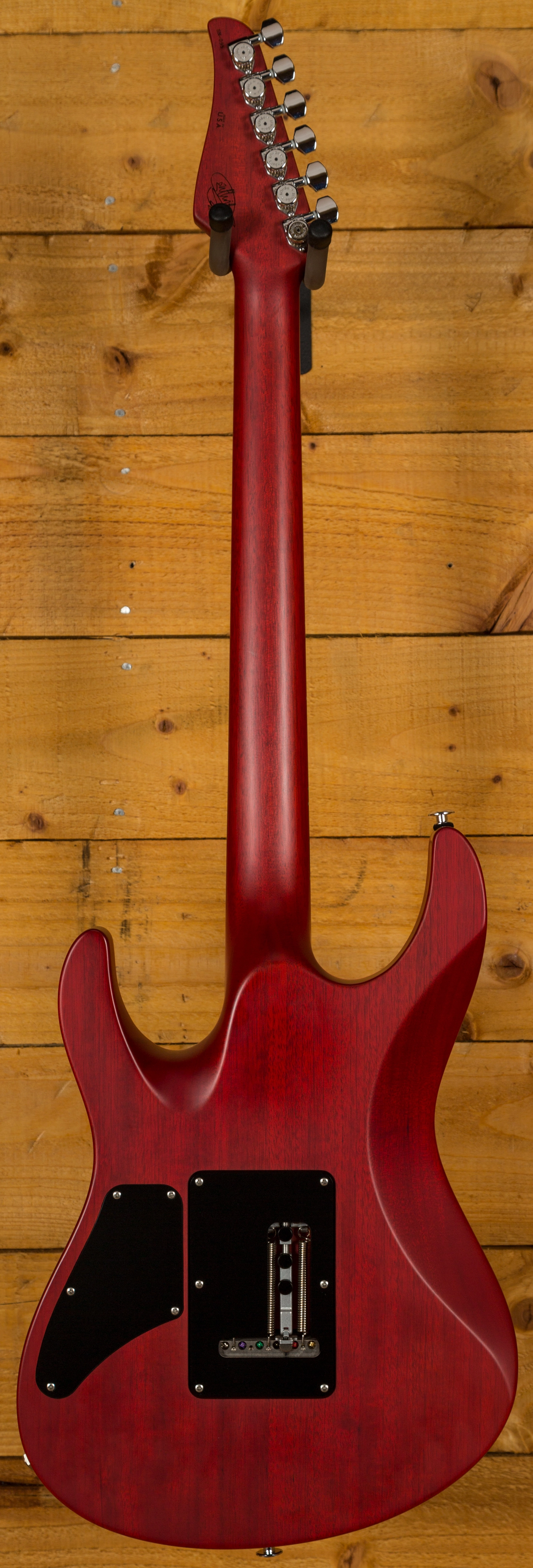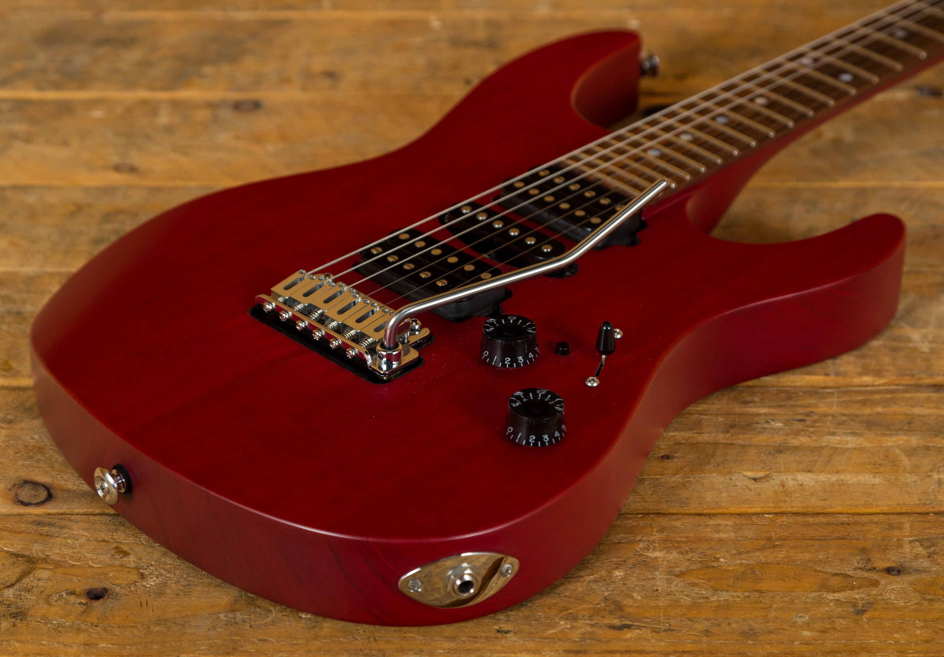 With a Mahogany body, finished in Trans Cherry, it's supremely resonant and dynamic this guitar is really well balanced. The Mahogany neck features a Pau Ferro fingerboard, 24 frets, a 16" radius and a modern elliptical profile. It's smooth, fast and a great platform for both heavy chordal work and slick, rapid lead lines.