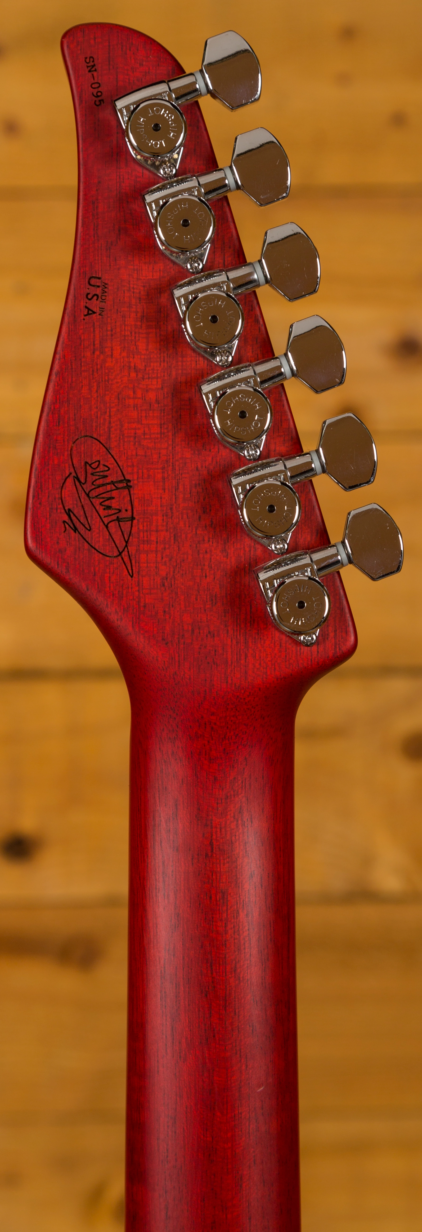 With a duo of SSV and SSH+ humbuckers flanking an ML singlecoil you get multiple tonal options. The tone knob is a push pull for coil splitting the neck pickup, while one of the coolest features is the little button next to the pickup switch. This reverts the guitar back to the bridge humbucker at full volume, giving you two individual sounds at the touch of a button. It's a superb guitar and definitely one worthy of such an enigmatic player.