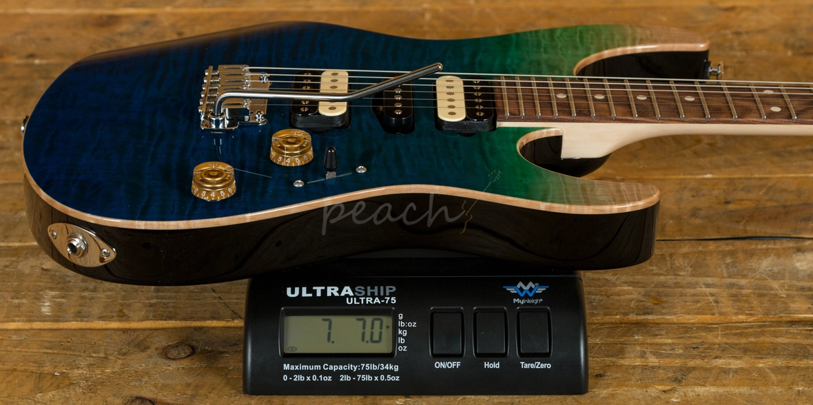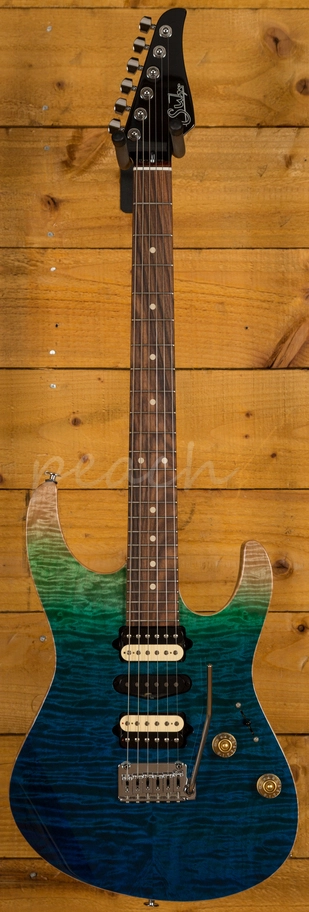 With a Basswood body and a lush Curly Maple top, its tonally superior, light weight and beautifully poised for action. Suhr have finished it in Aqua Blue Gradient and utilised arm, hand and tummy contours for a really comfortable playing experience.