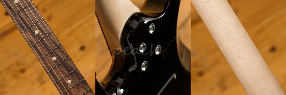 The Modern Plus is equipped with Suhr's Modern Elliptical neck profile with rolled edges, Pau Ferro fingerboard and a 10"- 14" radius it offers an extremely comfortable shape. The Maple neck is finished in satin, which provides the smooth feel of natural wood as well as protection from moisture. The 24 Jumbo stainless steel frets offer great string bending potential and long lasting playability while the sculpted heel allows for great access right up the neck.