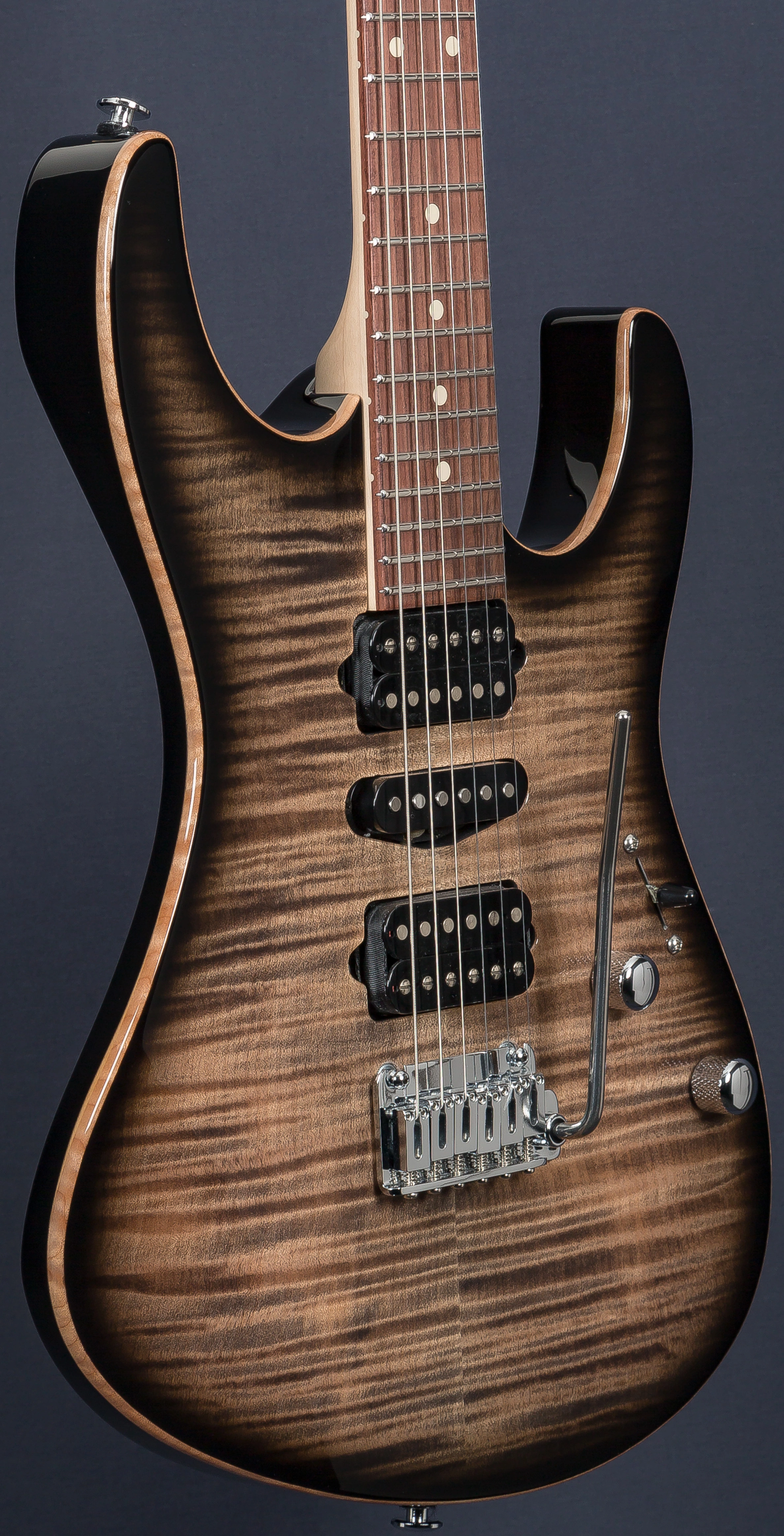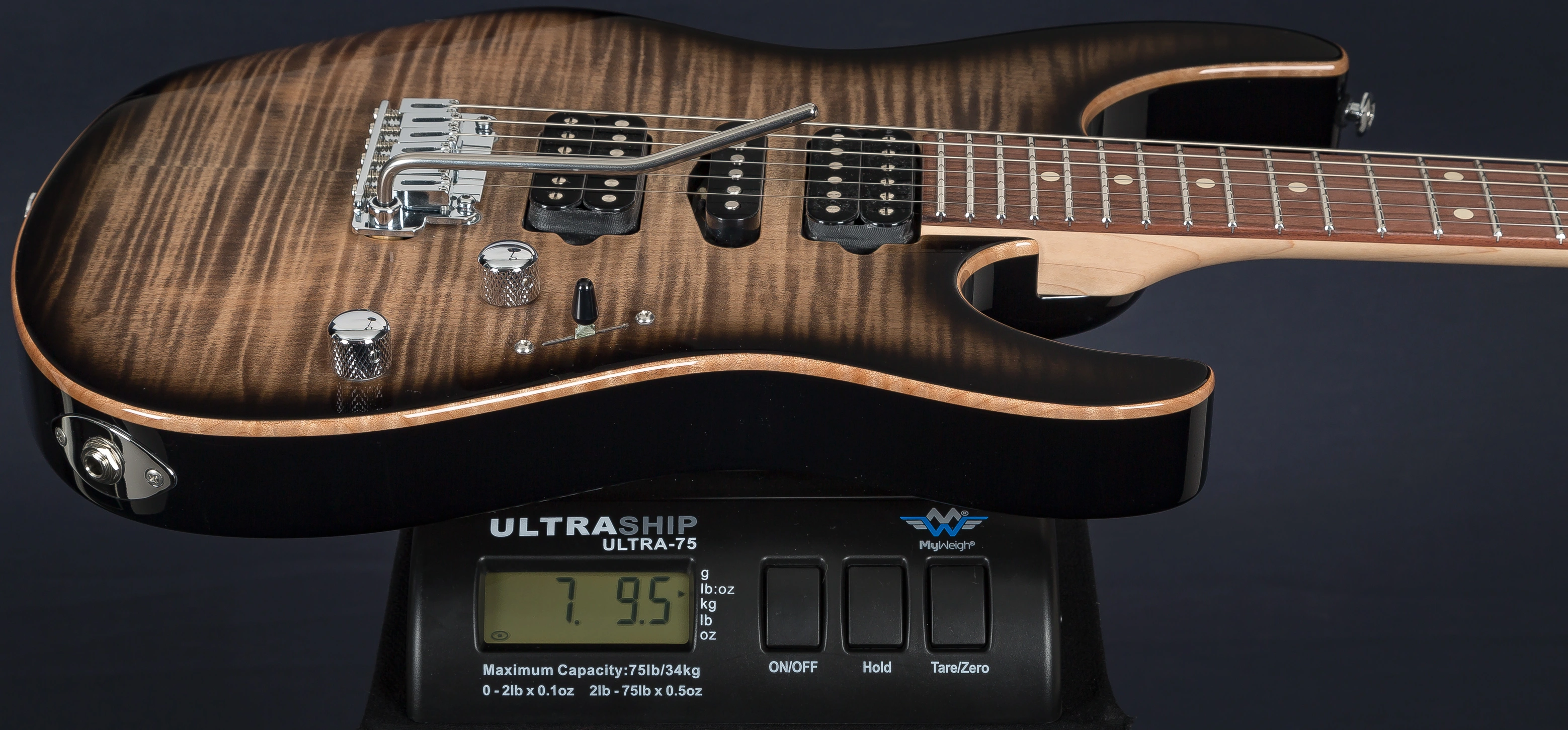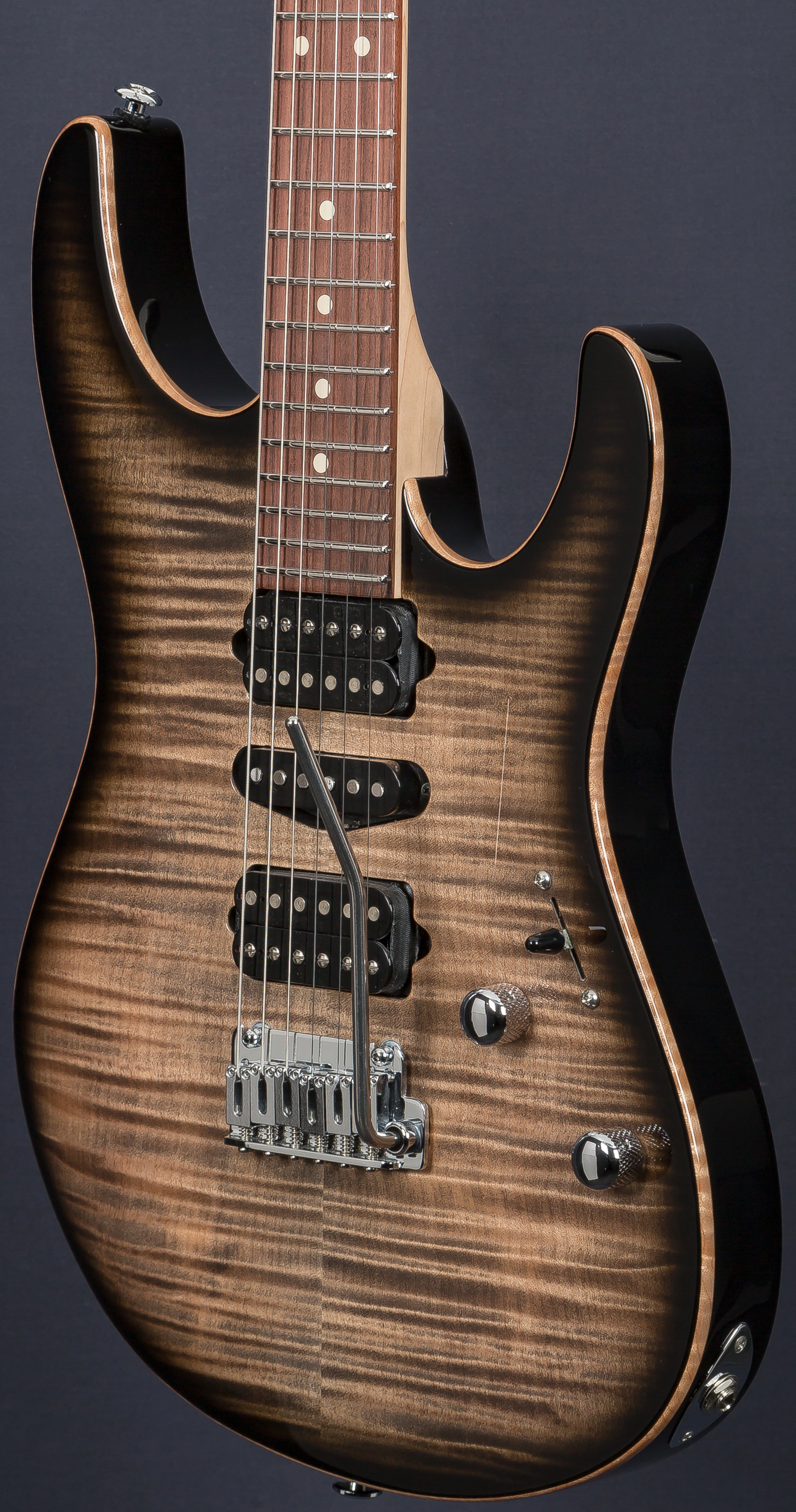 The sleek elliptical neck profile, balanced asymmetrical body, and innovative neck heel deliver unmatched playability and comfort. The stunning Flame Maple top is available in a variety of transparent finishes that have been developed to enhance its natural beauty."