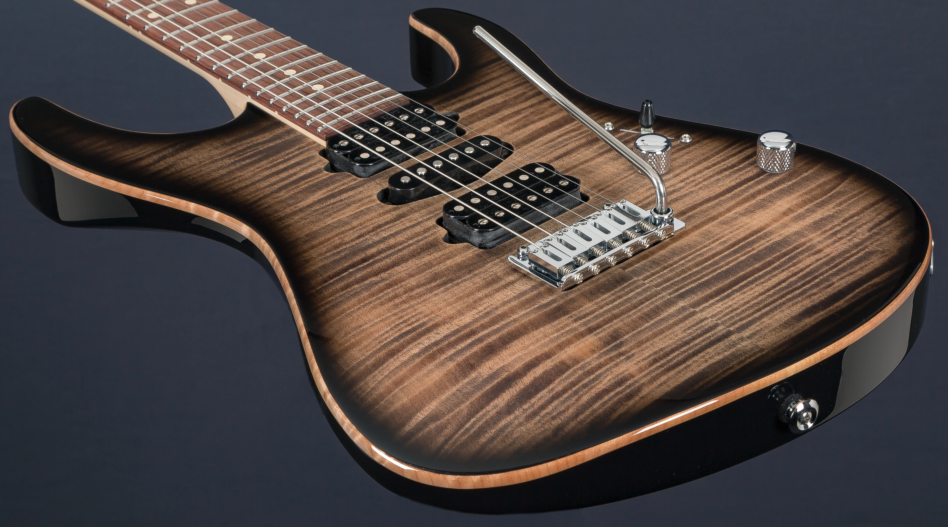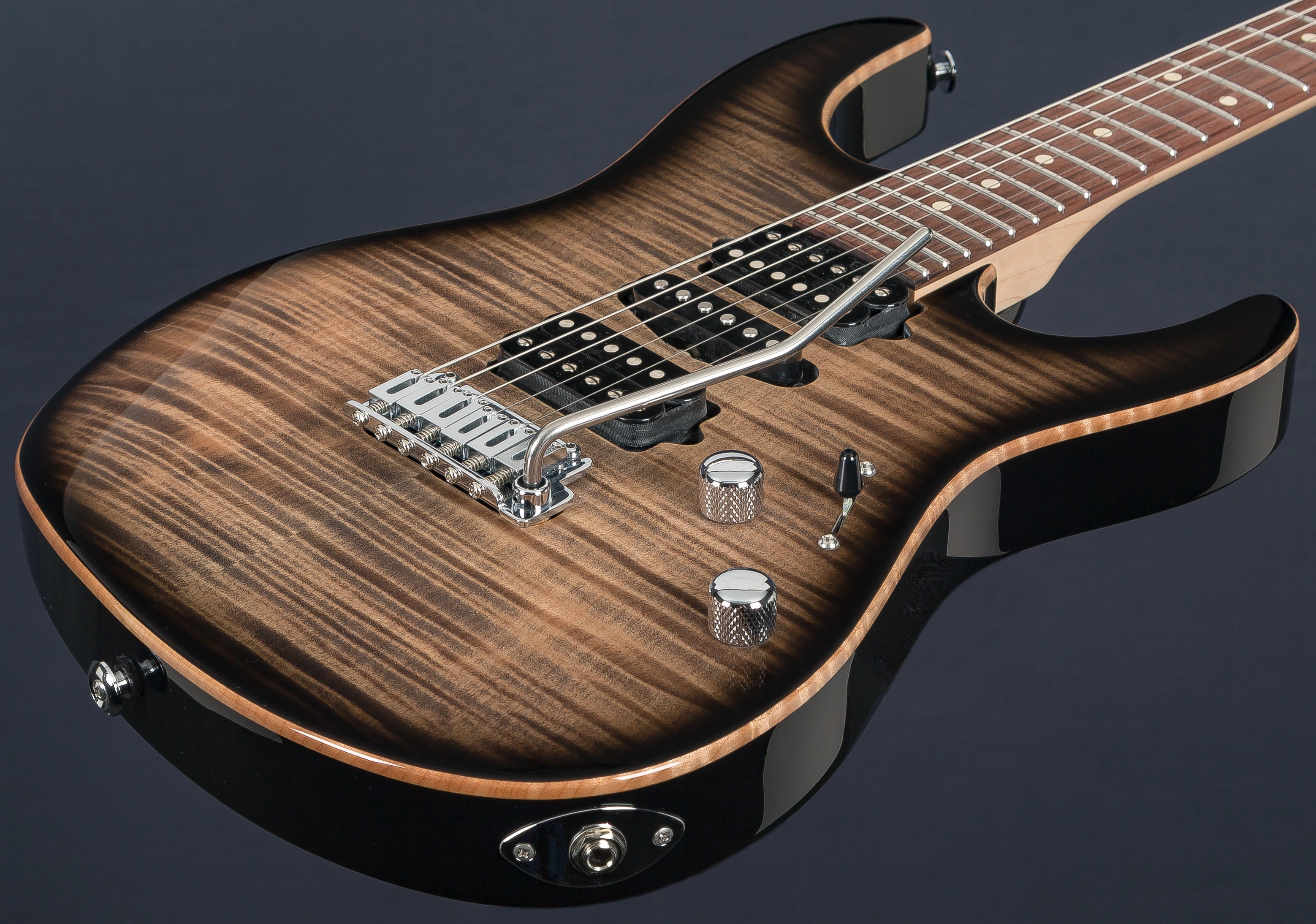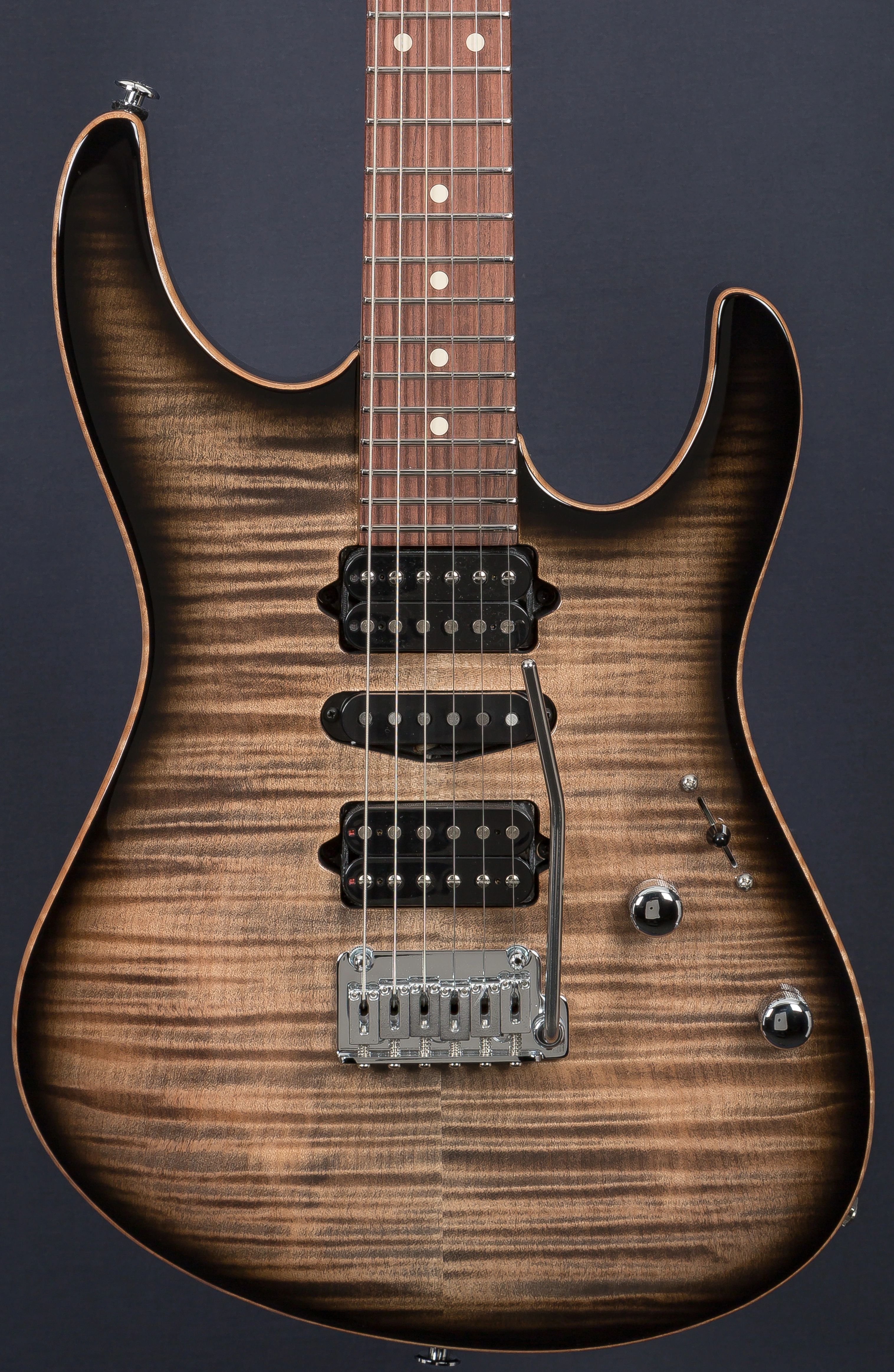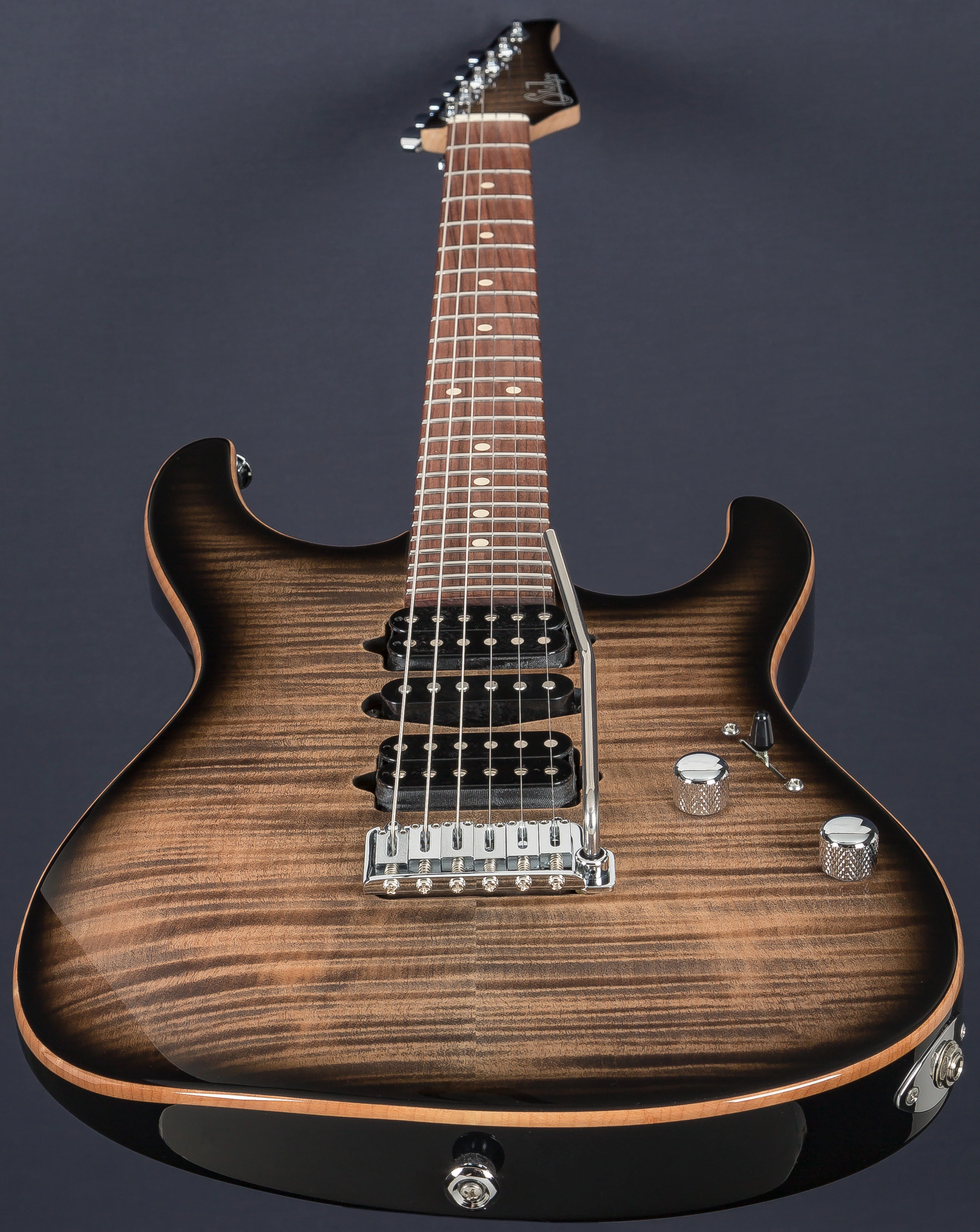 The sleek elliptical neck profile, balanced asymmetrical body, and innovative neck heel deliver unmatched playability and comfort. The stunning Flame Maple top is available in a variety of transparent finishes that have been developed to enhance its natural beauty."