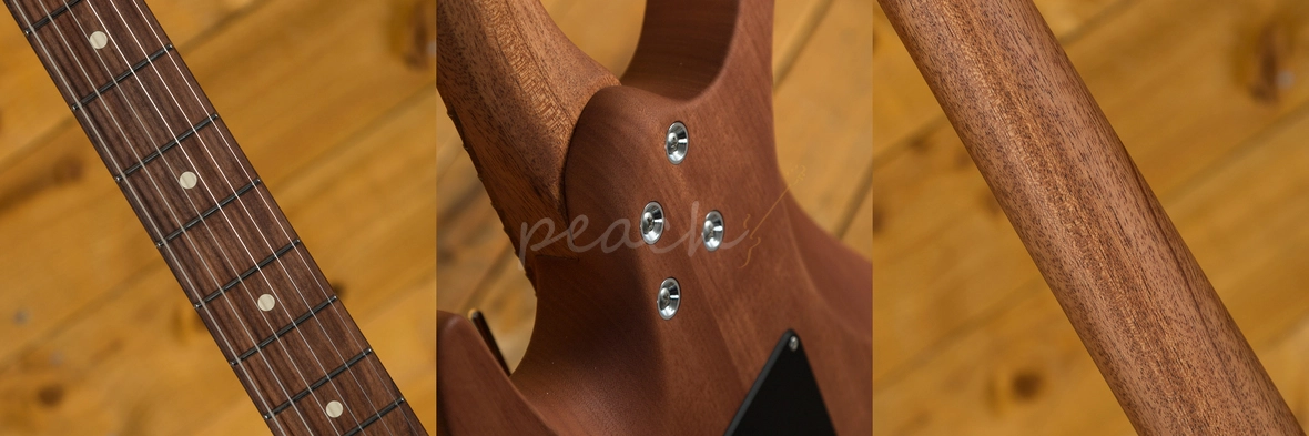 The Modern Satin is equipped with Suhr's Modern Elliptical neck profile with rolled edges and a straight 14" fingerboard radius it offers an extremely comfortable shape. The Khaya neck is finished in satin, which provides the smooth feel of natural wood as well as protection from moisture.