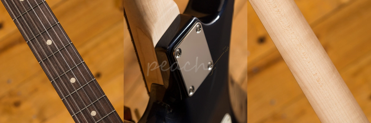 The Maple neck has a Satin finish which provides the smooth feel of natural wood as well as protection from moisture. With an Even C slim standard profile, Indian Rosewood fingerboard with rolled frets and a 10''-14'' radius this is a substantial but real comfortable guitar. The stainless steel frets offer great string bending potential and long lasting playability while the sculpted heel allows for great access right up the neck.