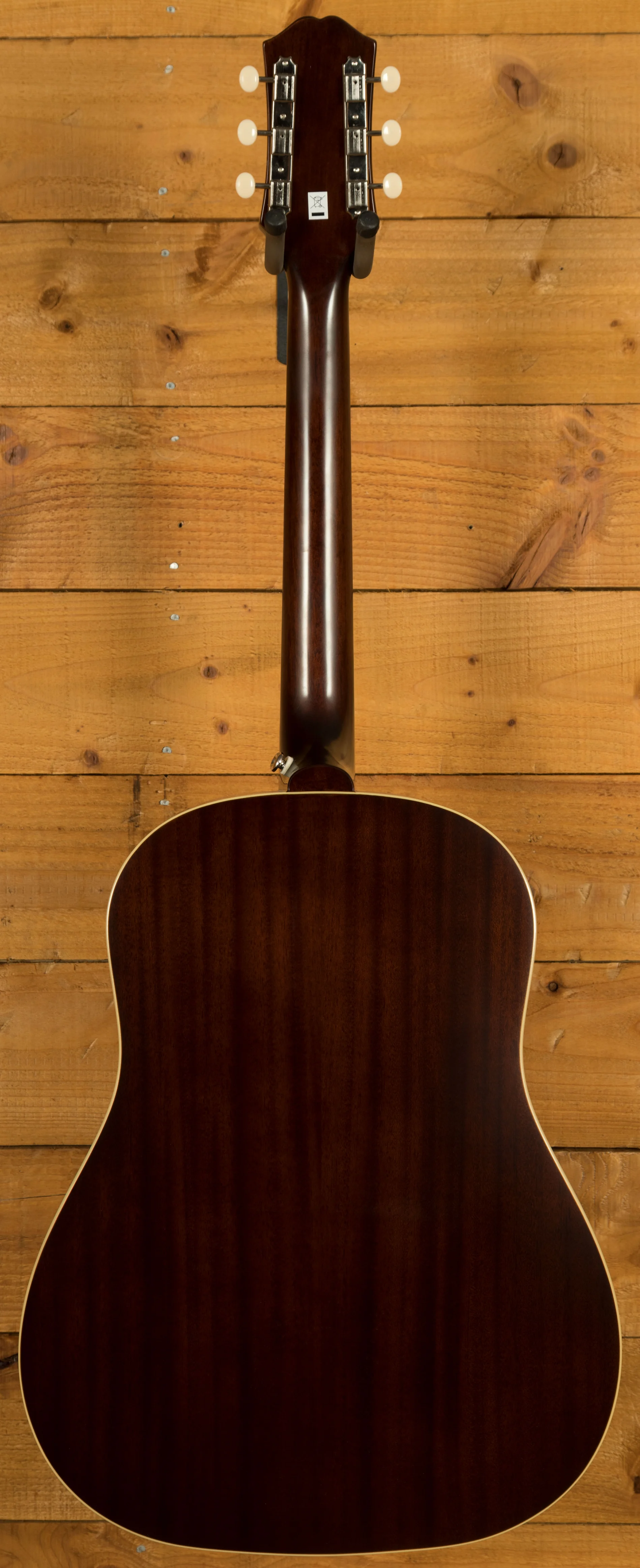 The slope shoulder Dreadnought body is beautifully crafted from super resonant Mahogany and boasts a lovely Spruce top. The Aged Vintage Sunburst finish offers a unique look and perfectly complements the faux tortoiseshell pickguard.