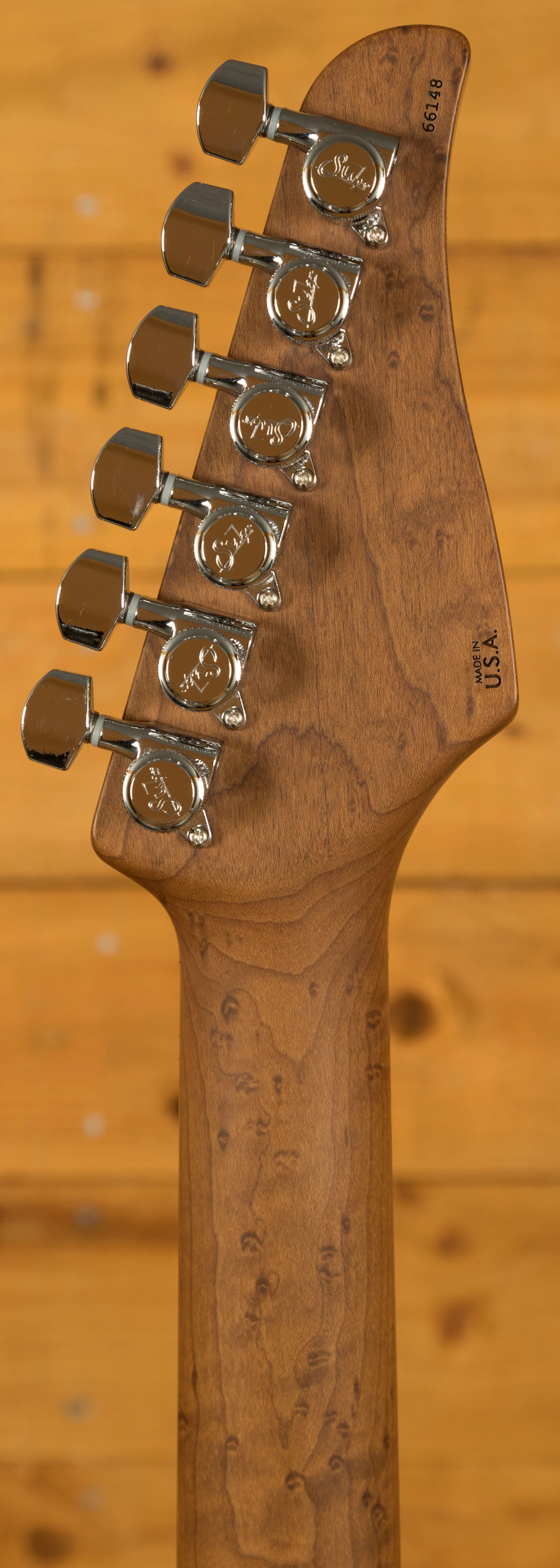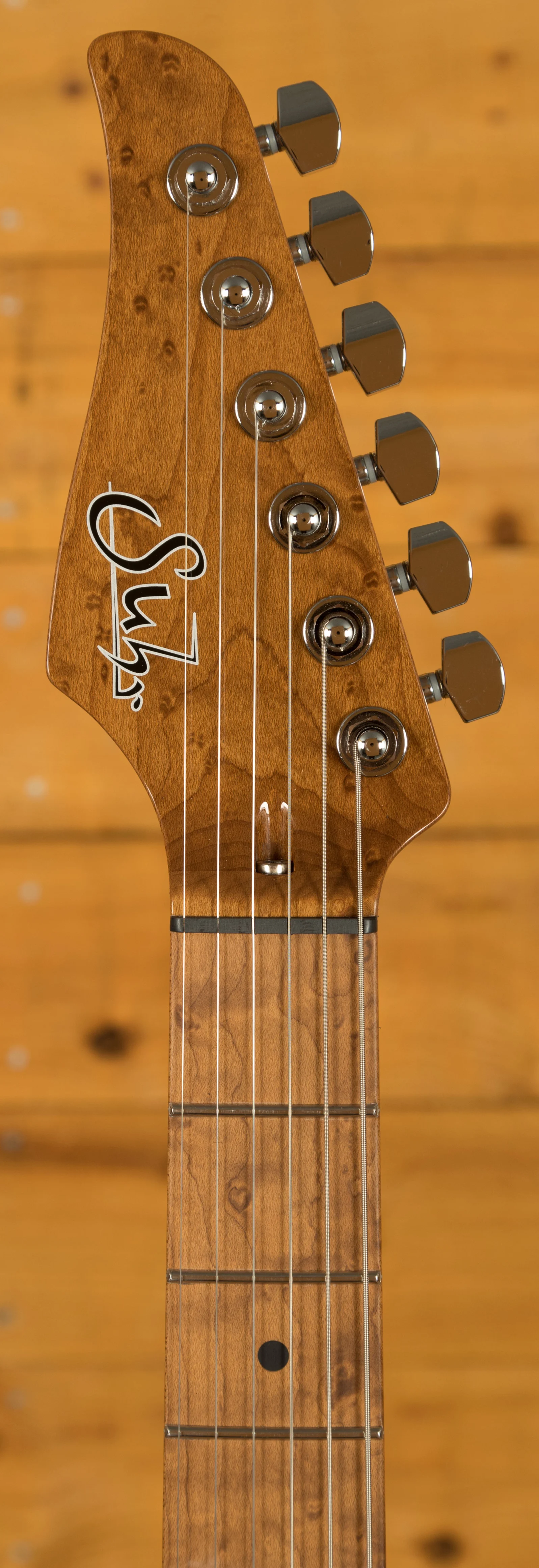 The Paulownia Suhr is equipped with Suhr's 60's C Vintage Standard neck profile with rolled edges, The 3A Roasted Birdseye fingerboard and a 9"- 12" radius offers an extremely comfortable shape. The Maple neck is finished in satin, which provides the smooth feel of natural wood as well as protection from moisture. The 22 stainless steel frets offer great string bending potential and long lasting playability.
