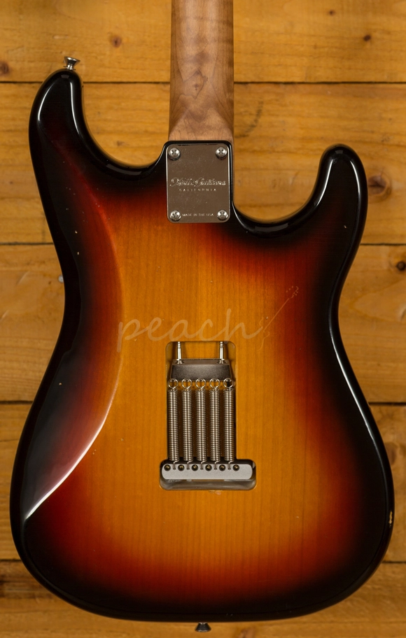 A boutique take on the classic Strat shape, the Alder body is finished in a lush Light Relic 3-Tone Sunburst, authentically aged; it looks fresh from the road. With a nitrocellulose lacquer coating, the body has space to breathe, allowing the beautiful, organic tones from each hand selected cut to really resonate.