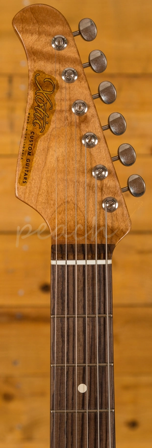 The necks on these are something really special, AAAA-Grade Flame Roasted Maple. With a Modern C Shape neck profile, 9.5" radius and Jescar FW55090 frets it feels comfortable and familiar. Gotoh vintage style locking tuners and a Gotoh vintage style bridge deliver incredible tuning stability and intonation.
