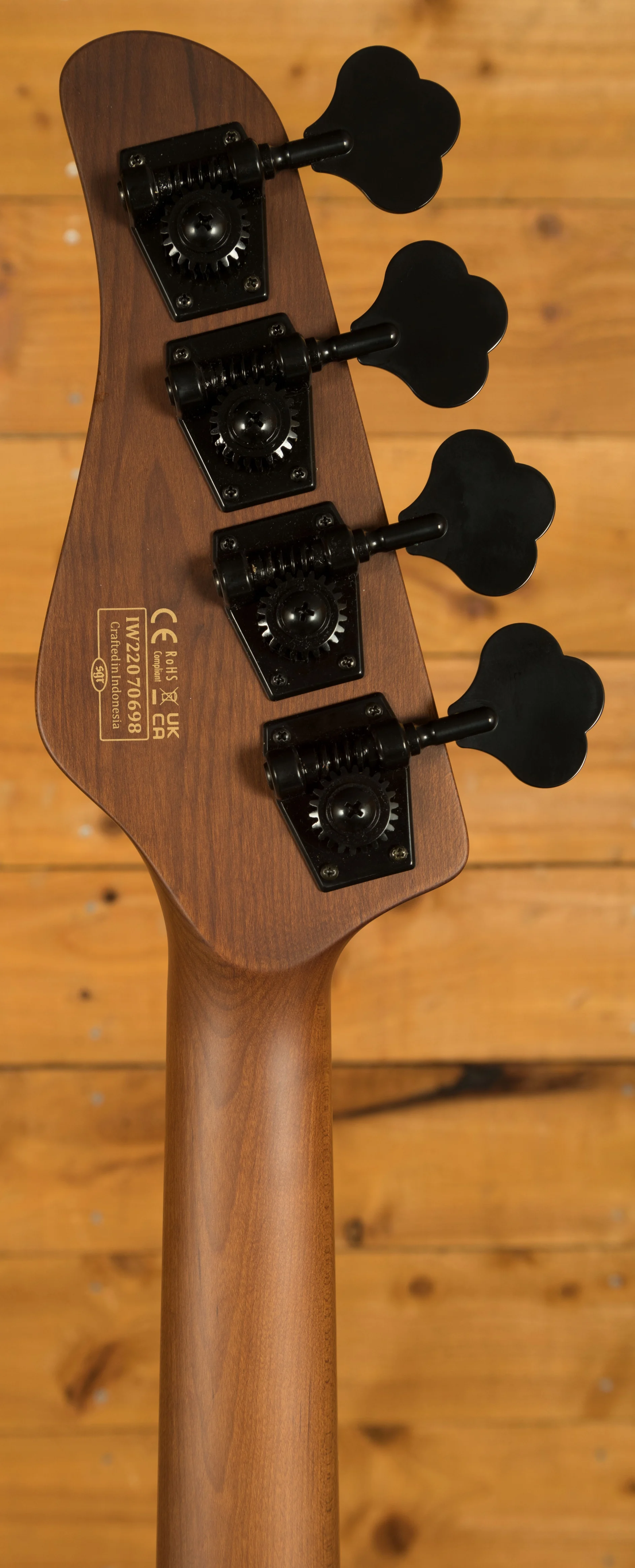 The body of the bass is made from swamp ash, which is paired with a visually stunning zebrawood top. Combined with the Faded Vintage Sunburst finish, it really looks beautiful.