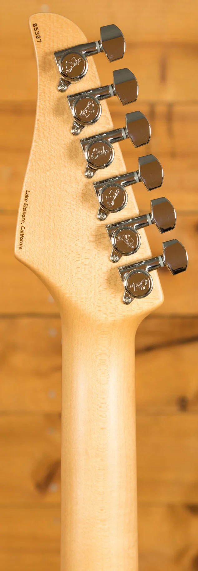 These guitars feature all the vintage elements we love but back it up with super stable and reliable modern-day benefits. The Alder Strat body is finished in a thin lacquer and then subject to Suhr's own antiquing process, subtly and authentically antiqued it features natural checking and light ageing. The ultra-thin nitro will wear naturally to allow each guitar to develop its own roadworn look.