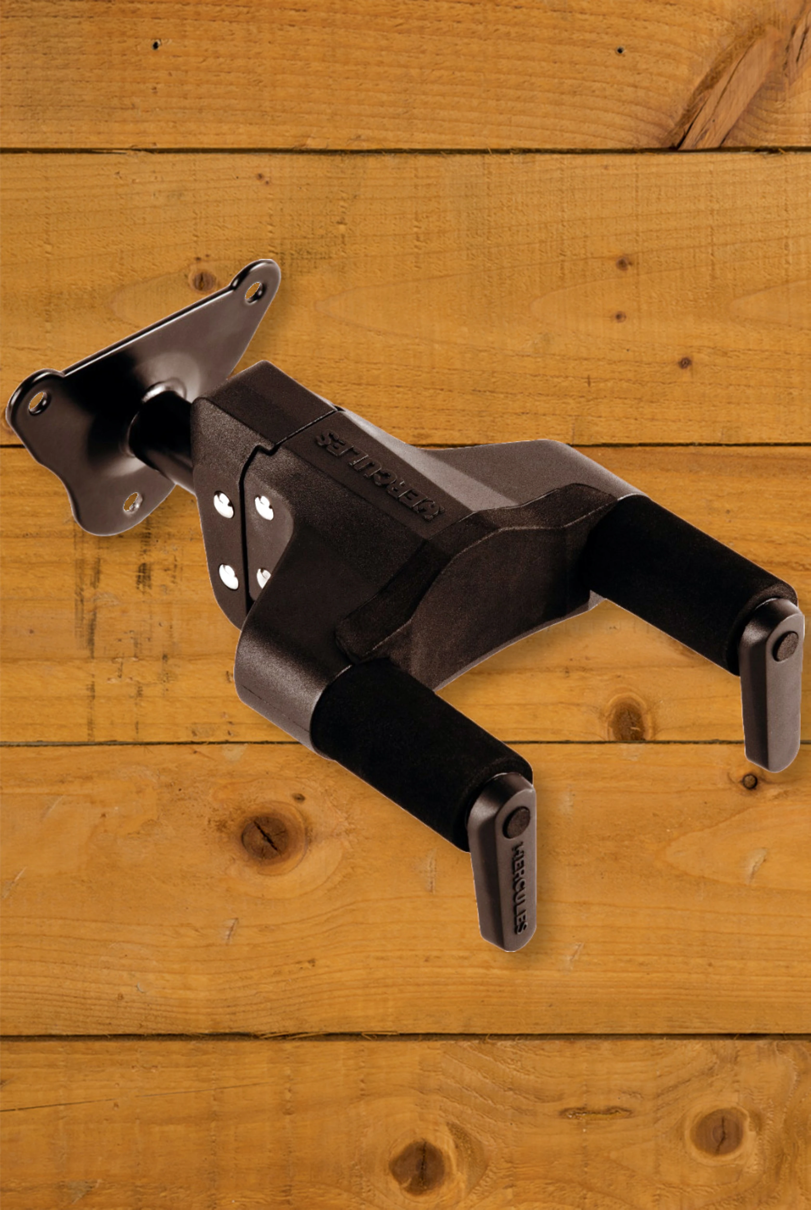 The Hercules Auto-Swivel Yoke Hanger GSP39WB PLUS rotates automatically to accommodate different shaped guitars or basses vertically and safely. It features a screw-in standard wall mounting system.