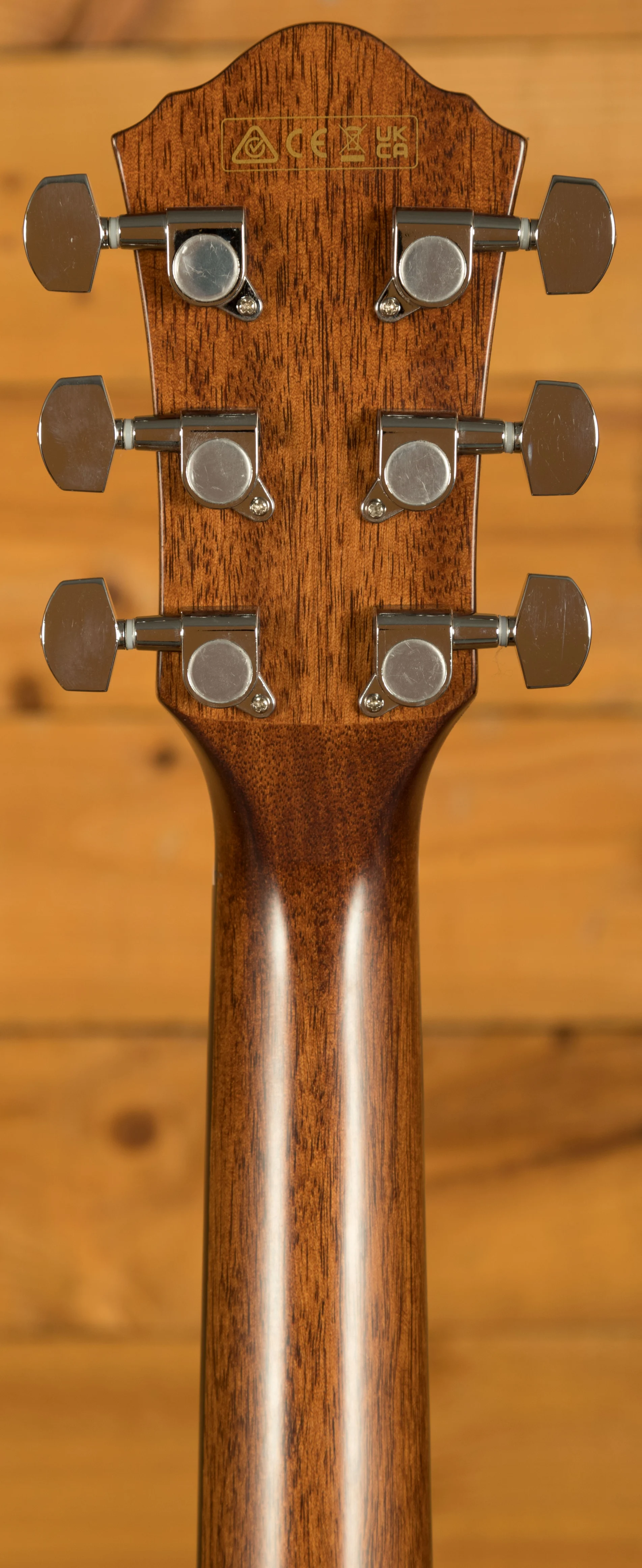 The nyatoh neck features a 25" scale and a smooth Comfort Grip profile, paired with a 20-fret ovangkol fingerboard and stylised white acrylic diamond inlays. The dovetail neck joint and satin finish enhance playability and resonance.