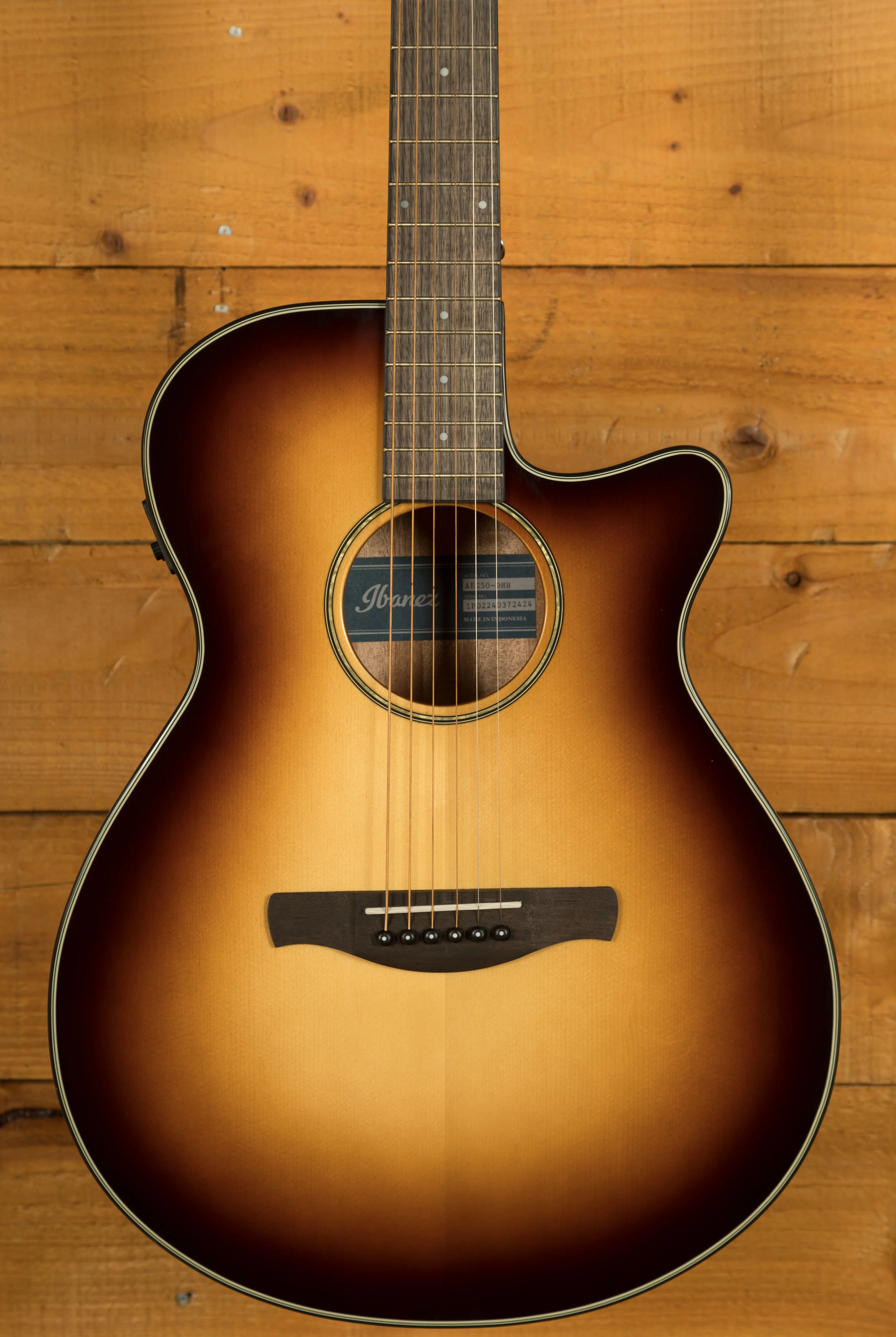 The Ibanez AEG50 in Dark Honey Burst High Gloss offers a sleek, modern take on the classic electro-acoustic. Its slim AEG body with Venetian cutaway provides excellent comfort and upper fret access, while the gloss finish highlights the warm burst tones across the spruce top and okoume back and sides.